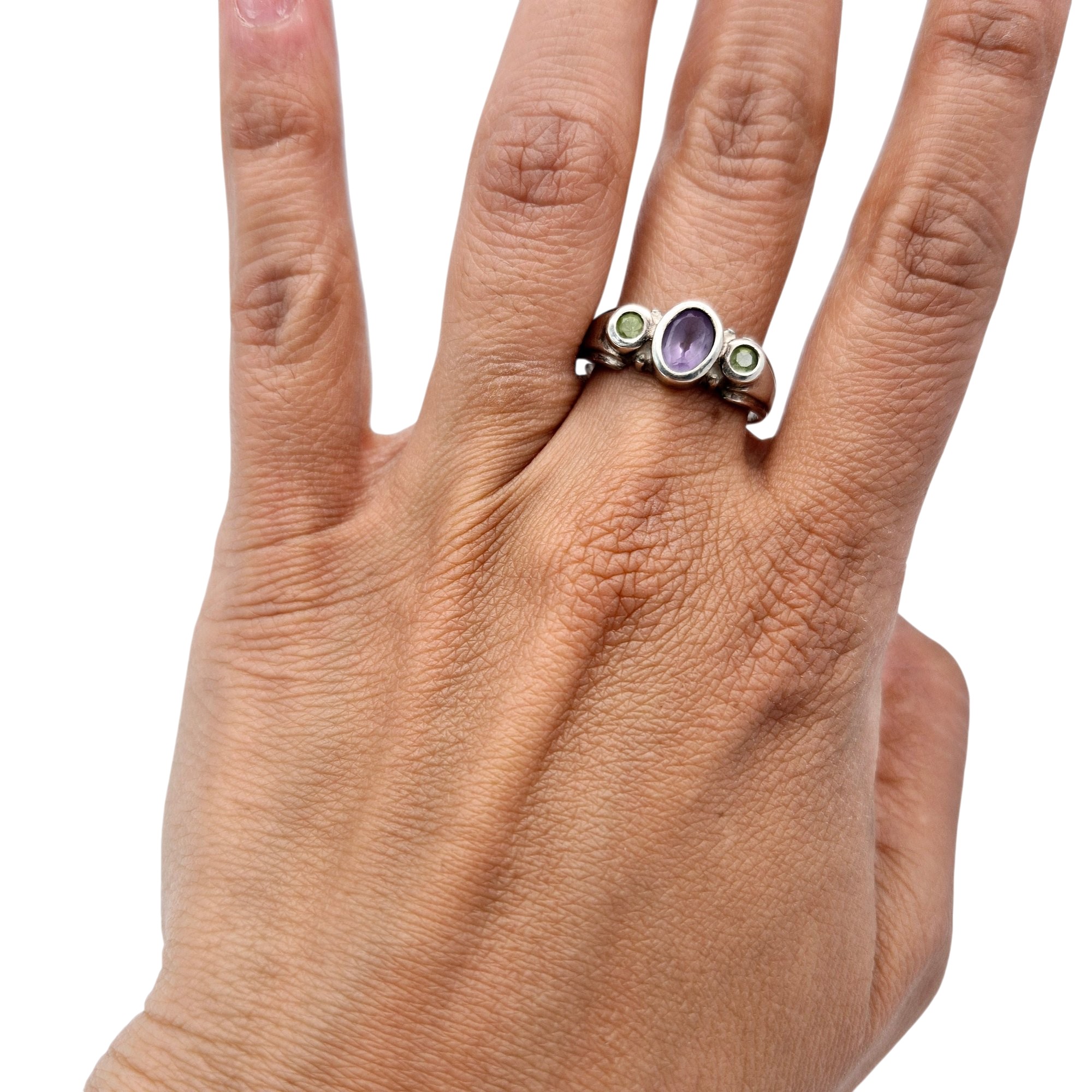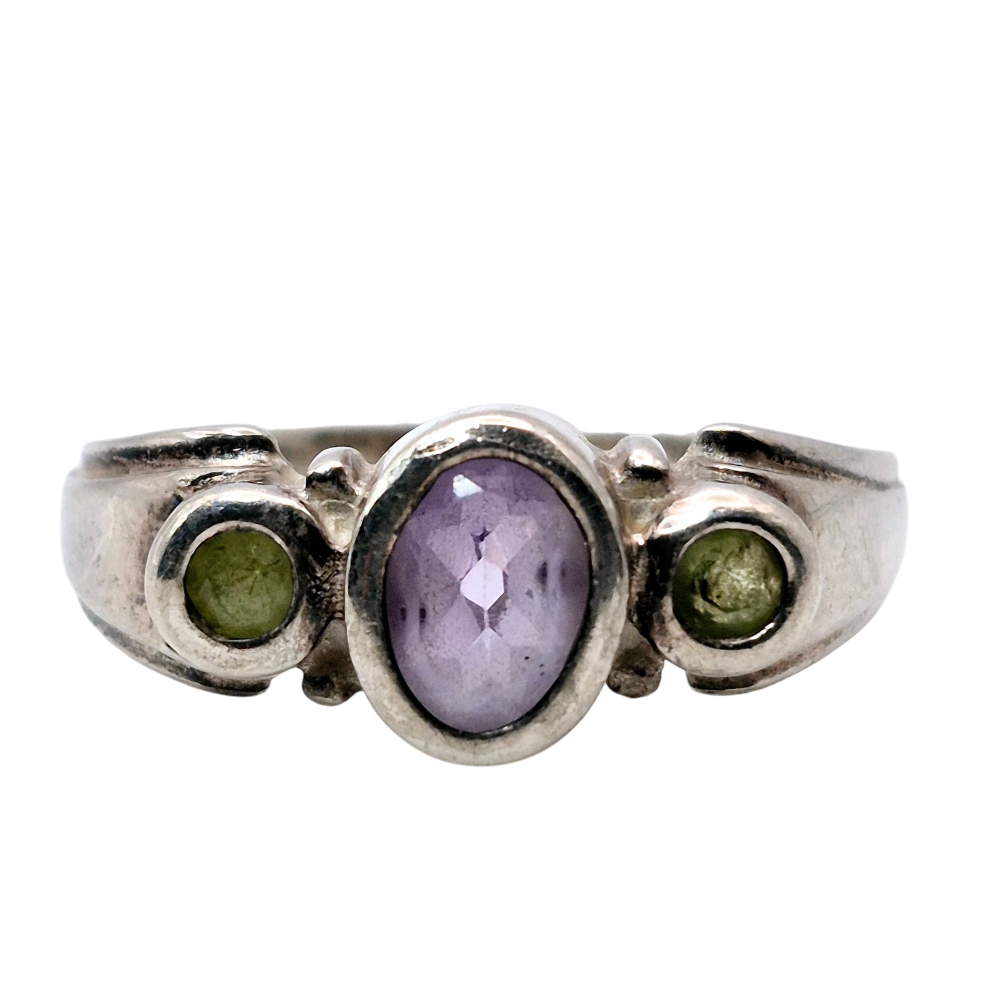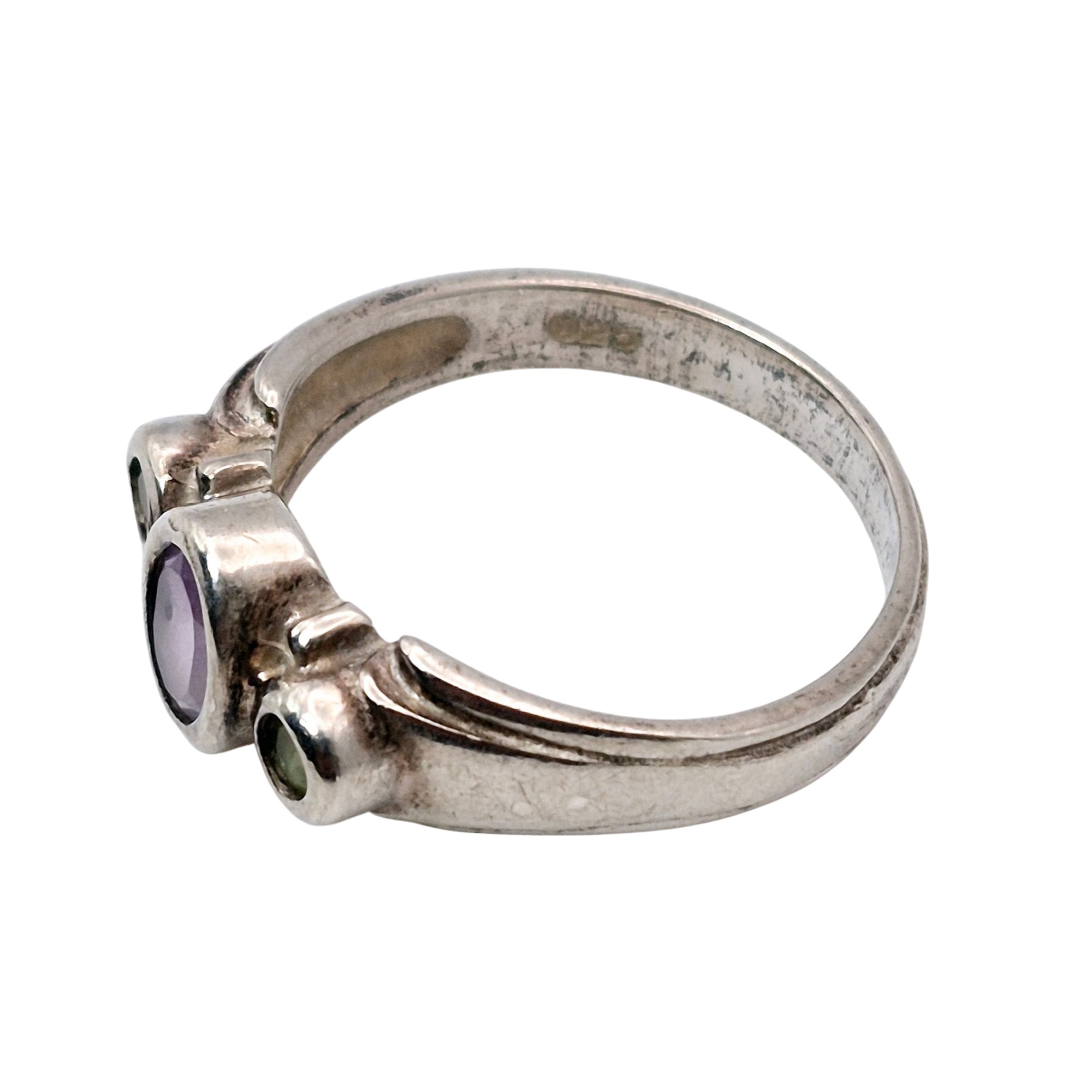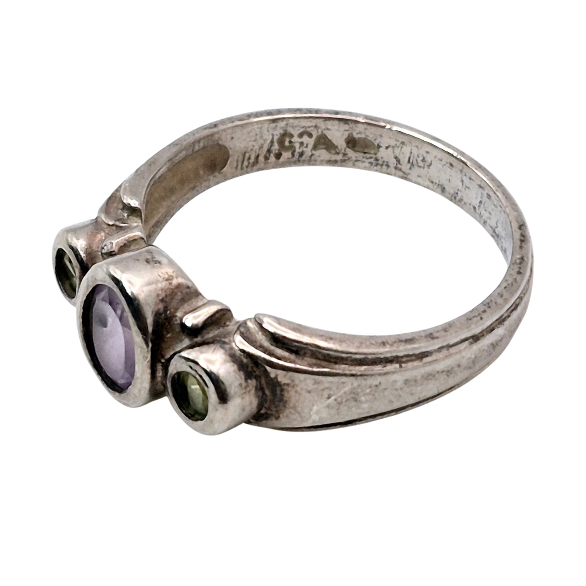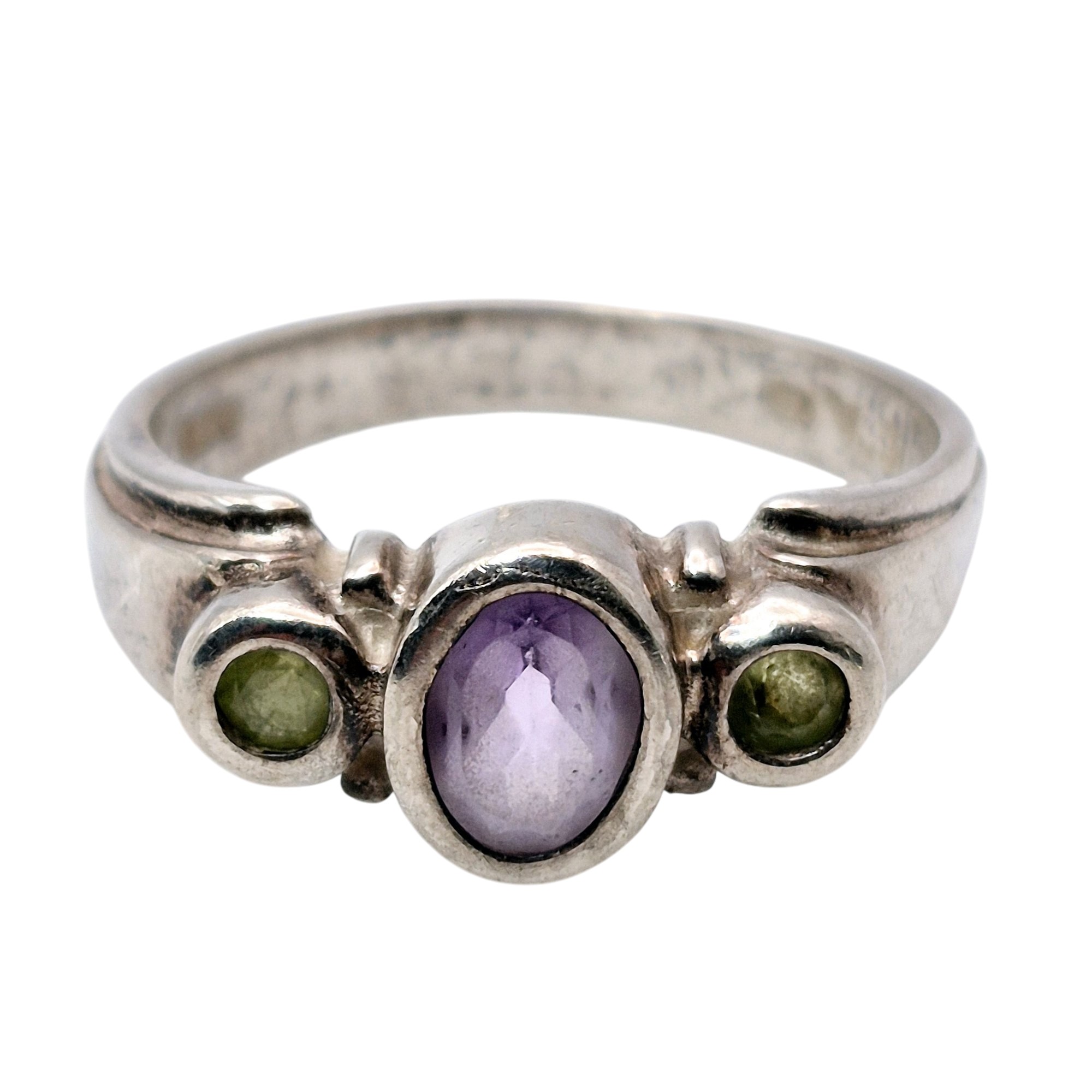 CA Sterling amethyst Peridot three stone band ring size 9.5 4.3 G