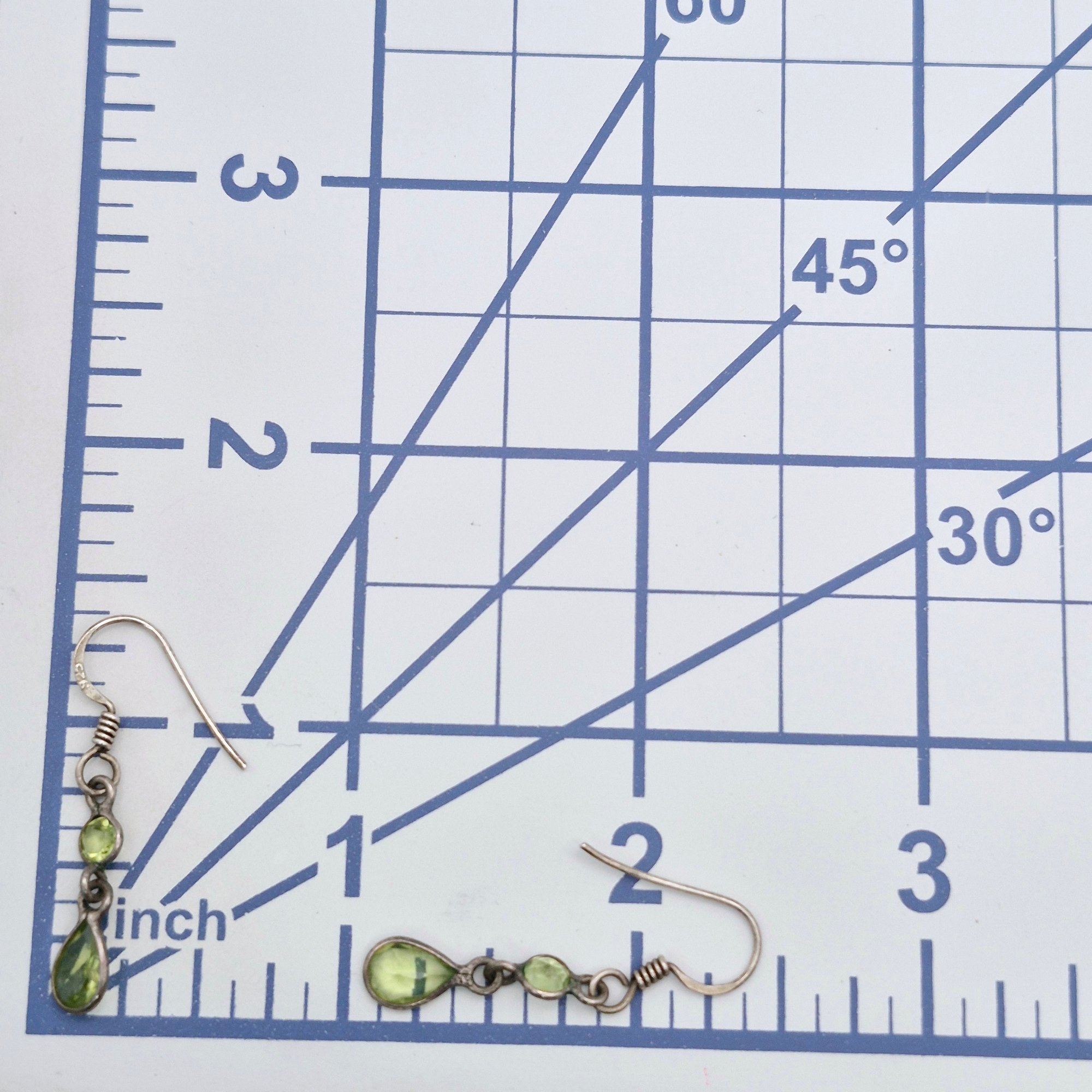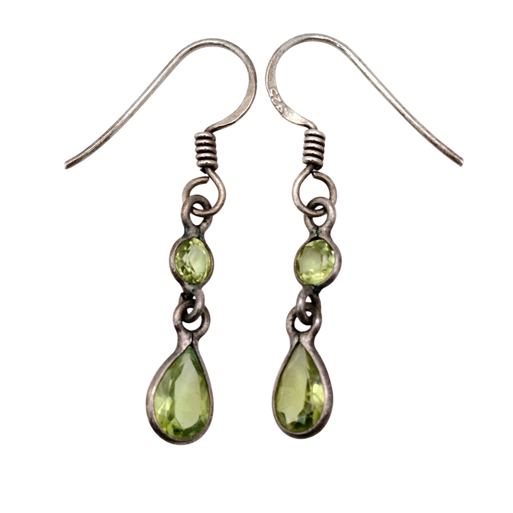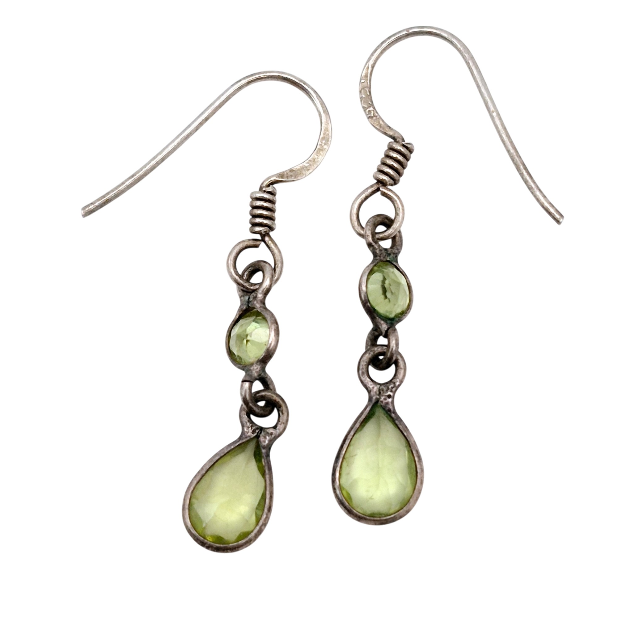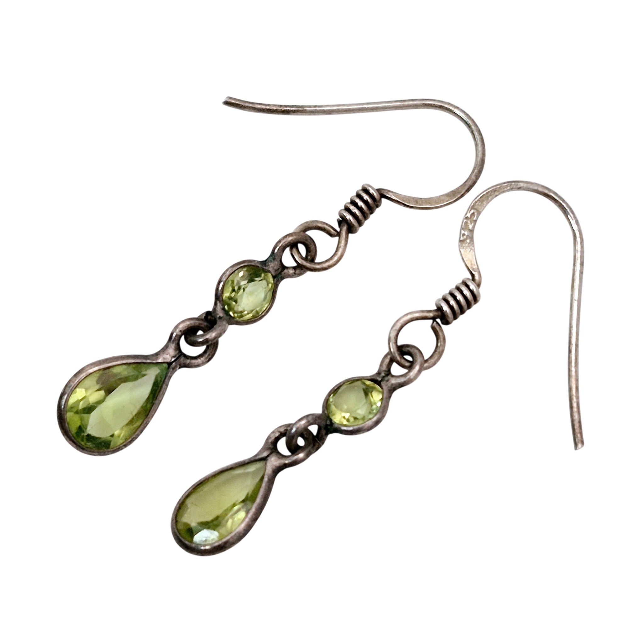 Sterling Peridot teardrop round dangle earrings 1.3 G