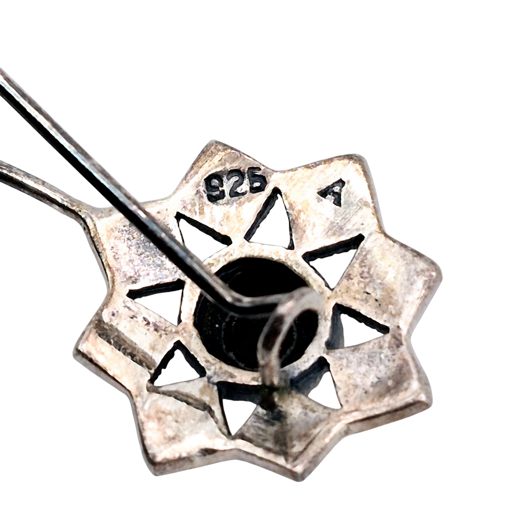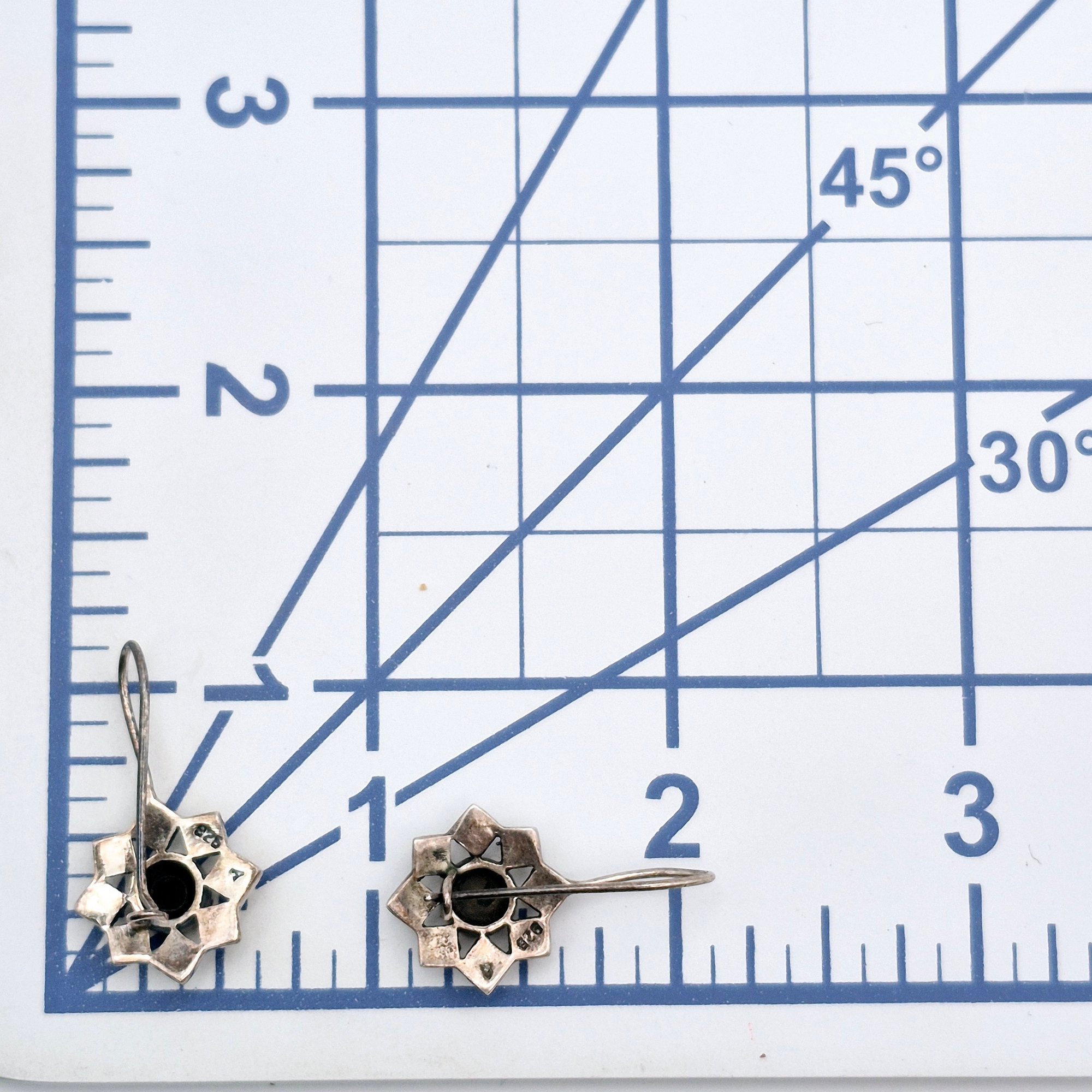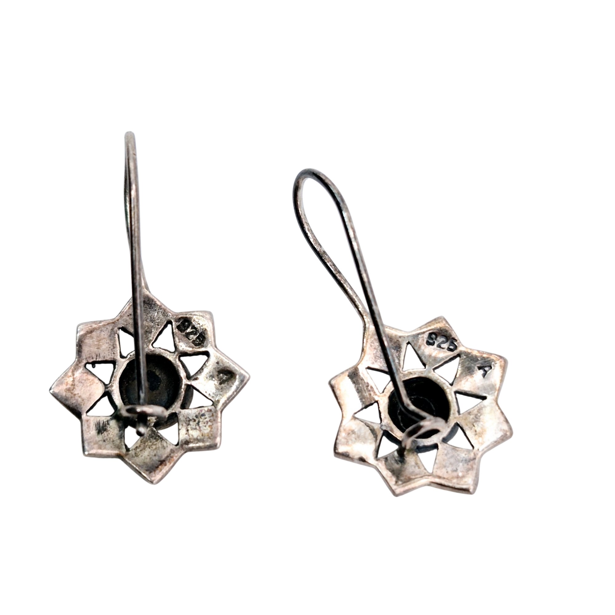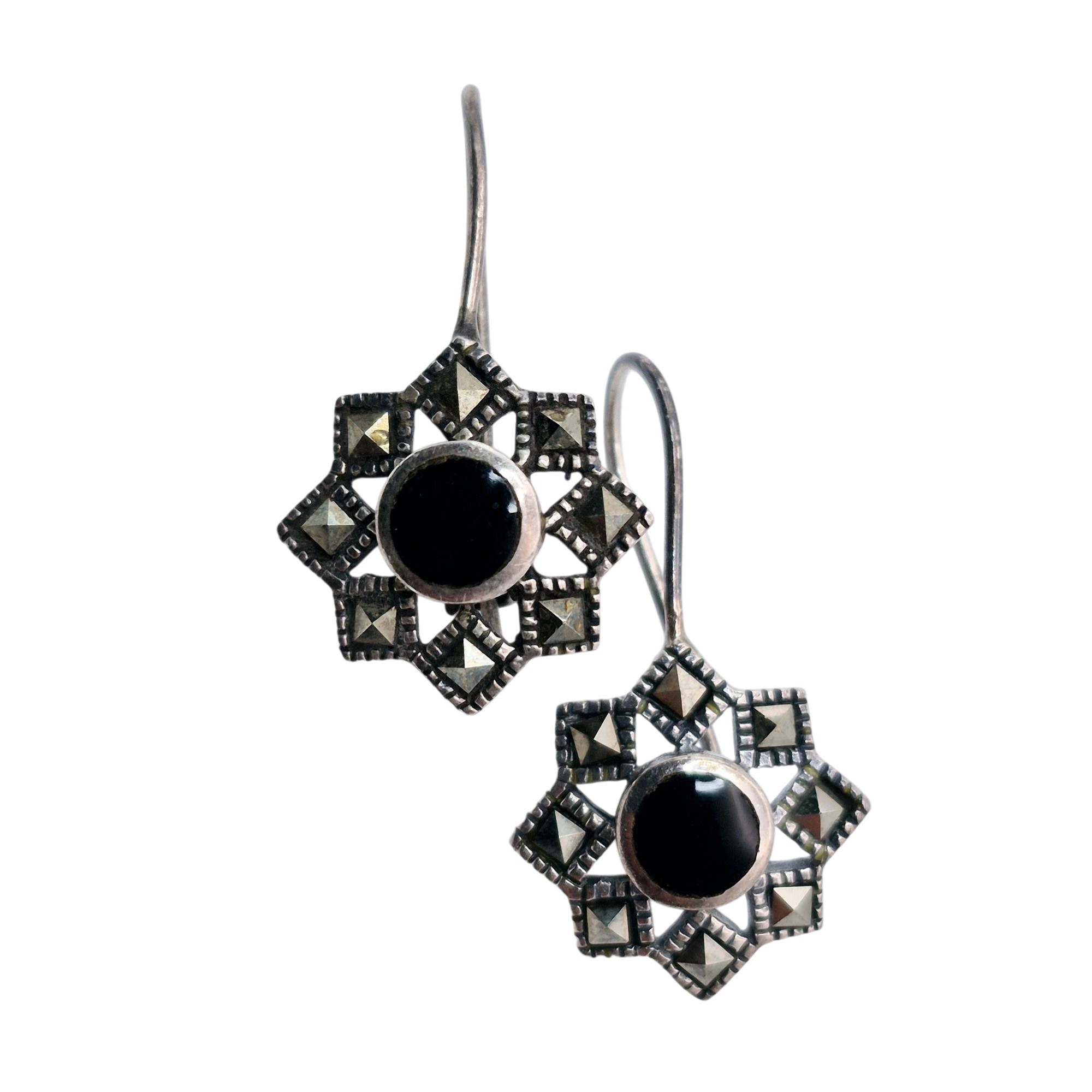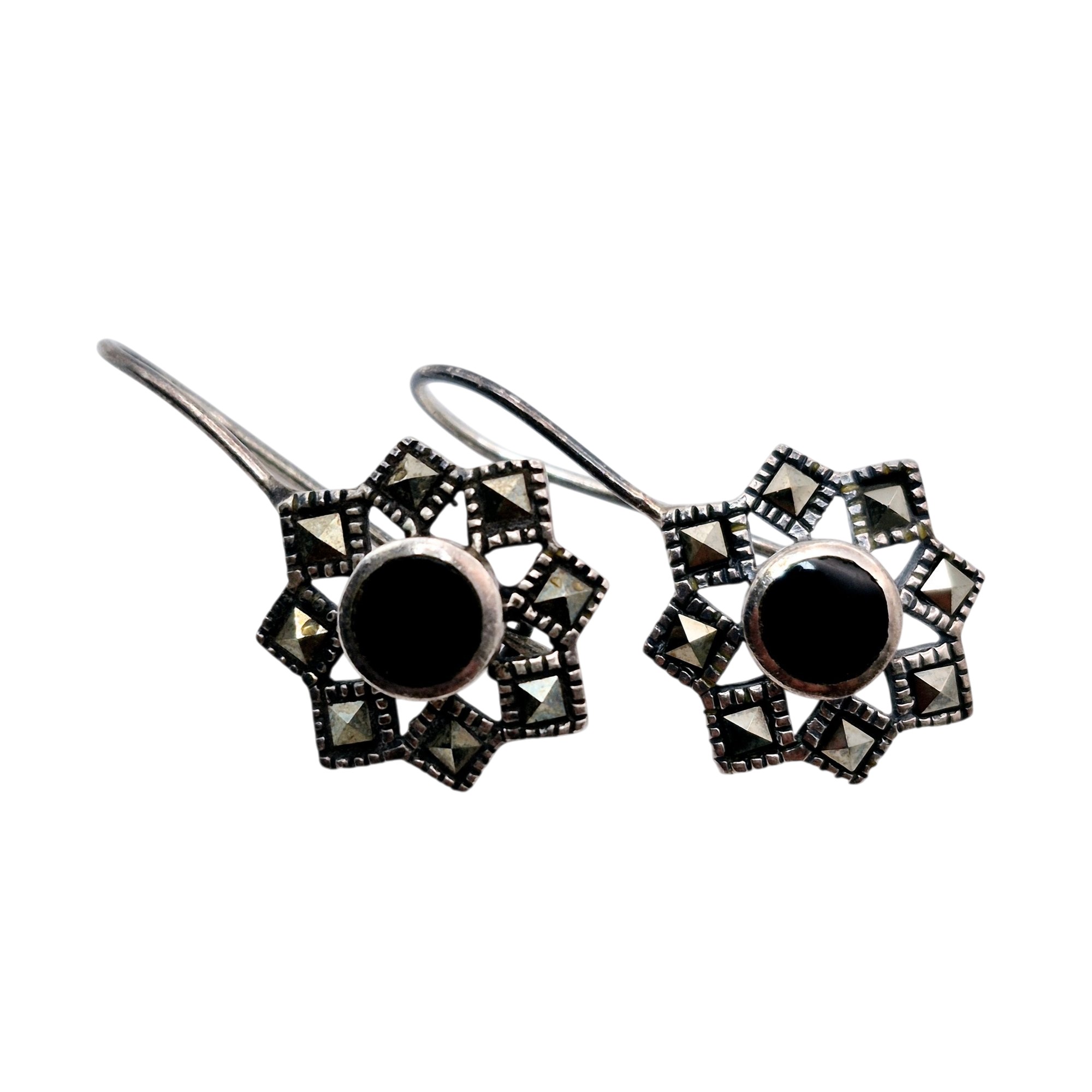 Sterling Onyx marcasite star drop earrings 3.4 G