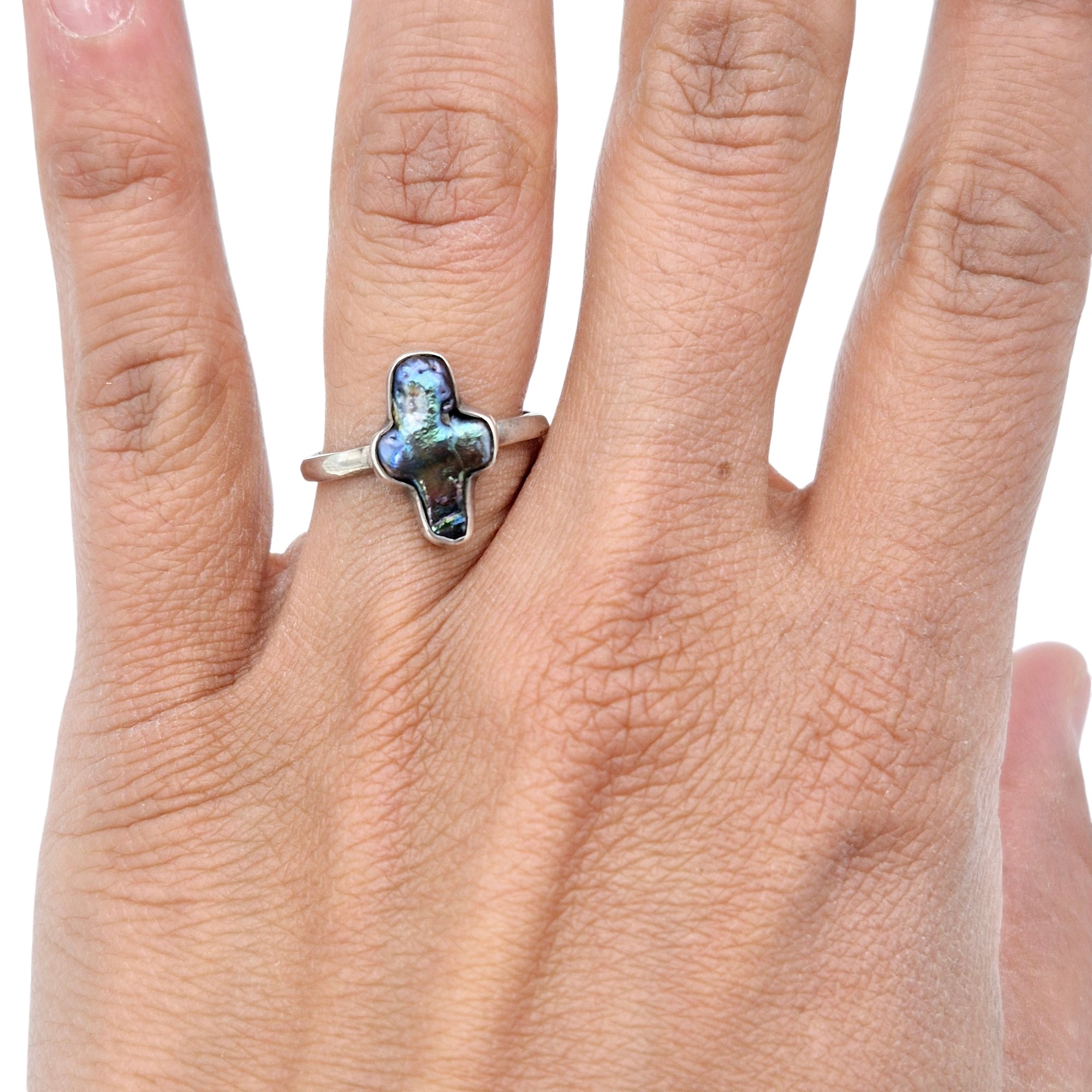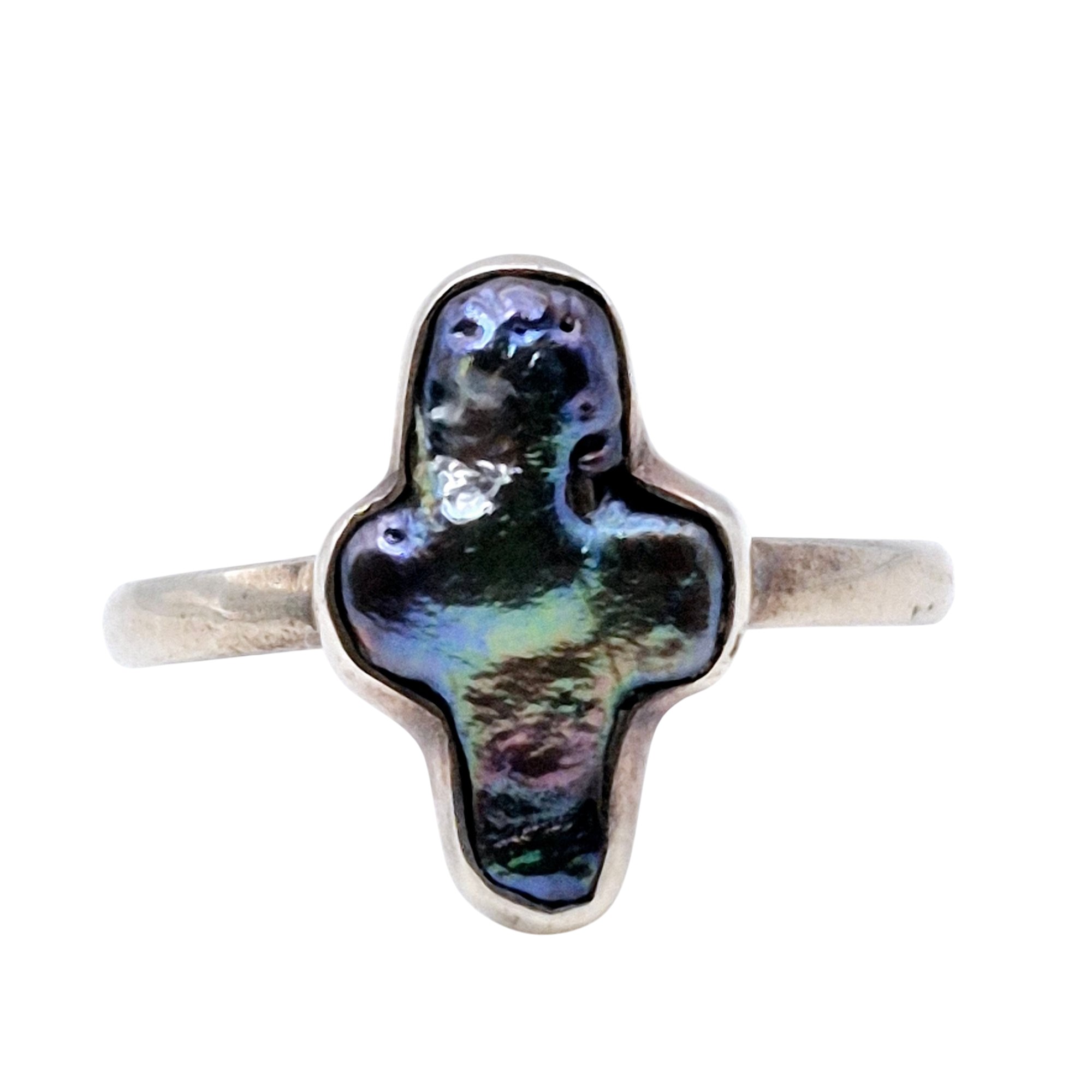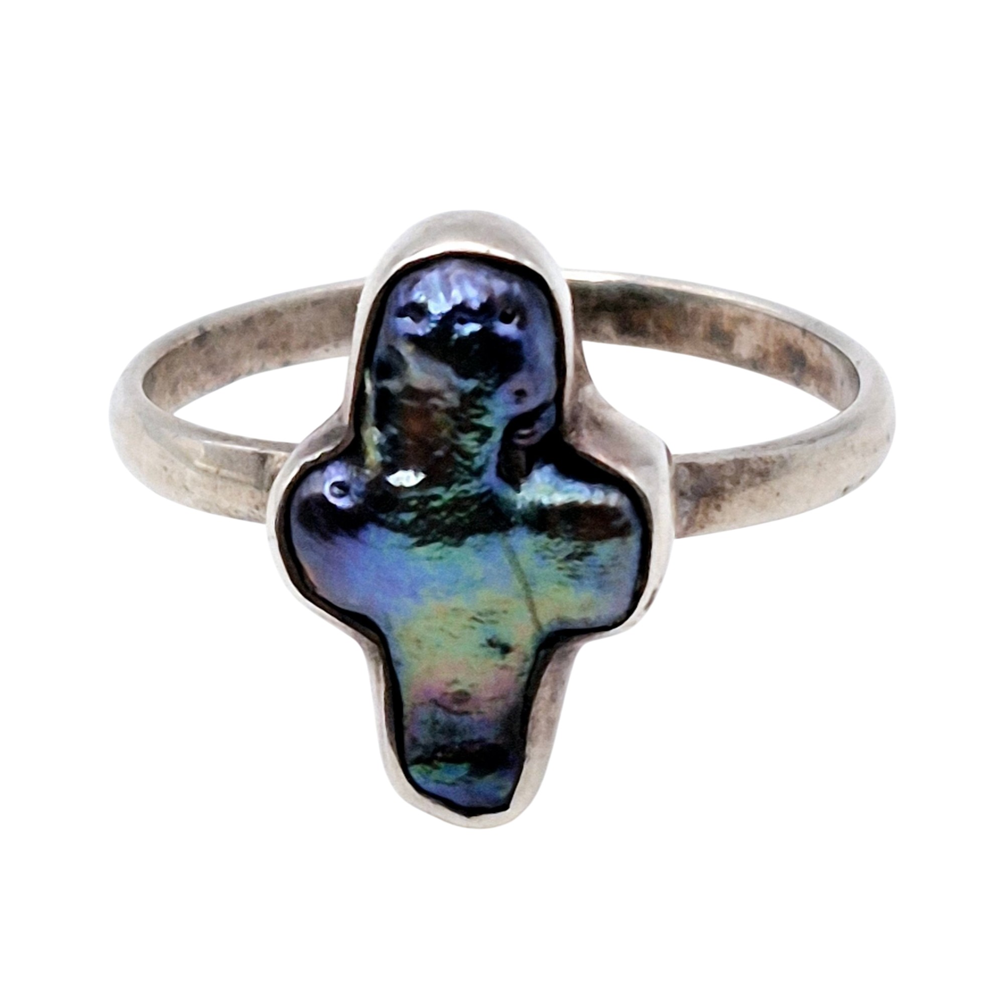 Sterling Abalone cross statement ring size 7.5 2.1 g