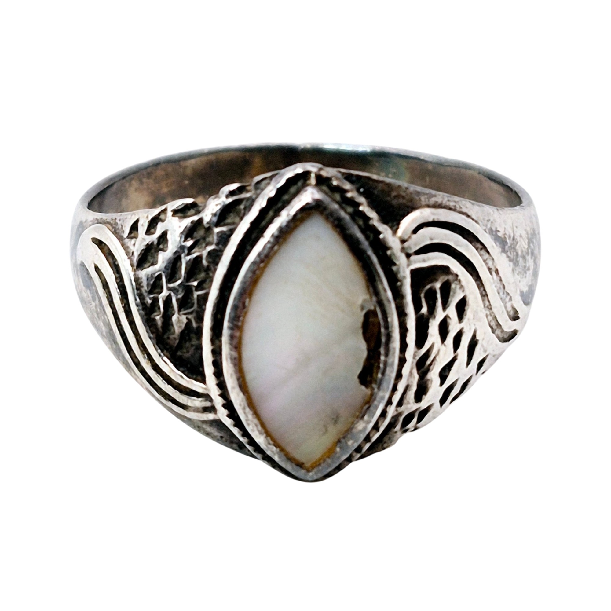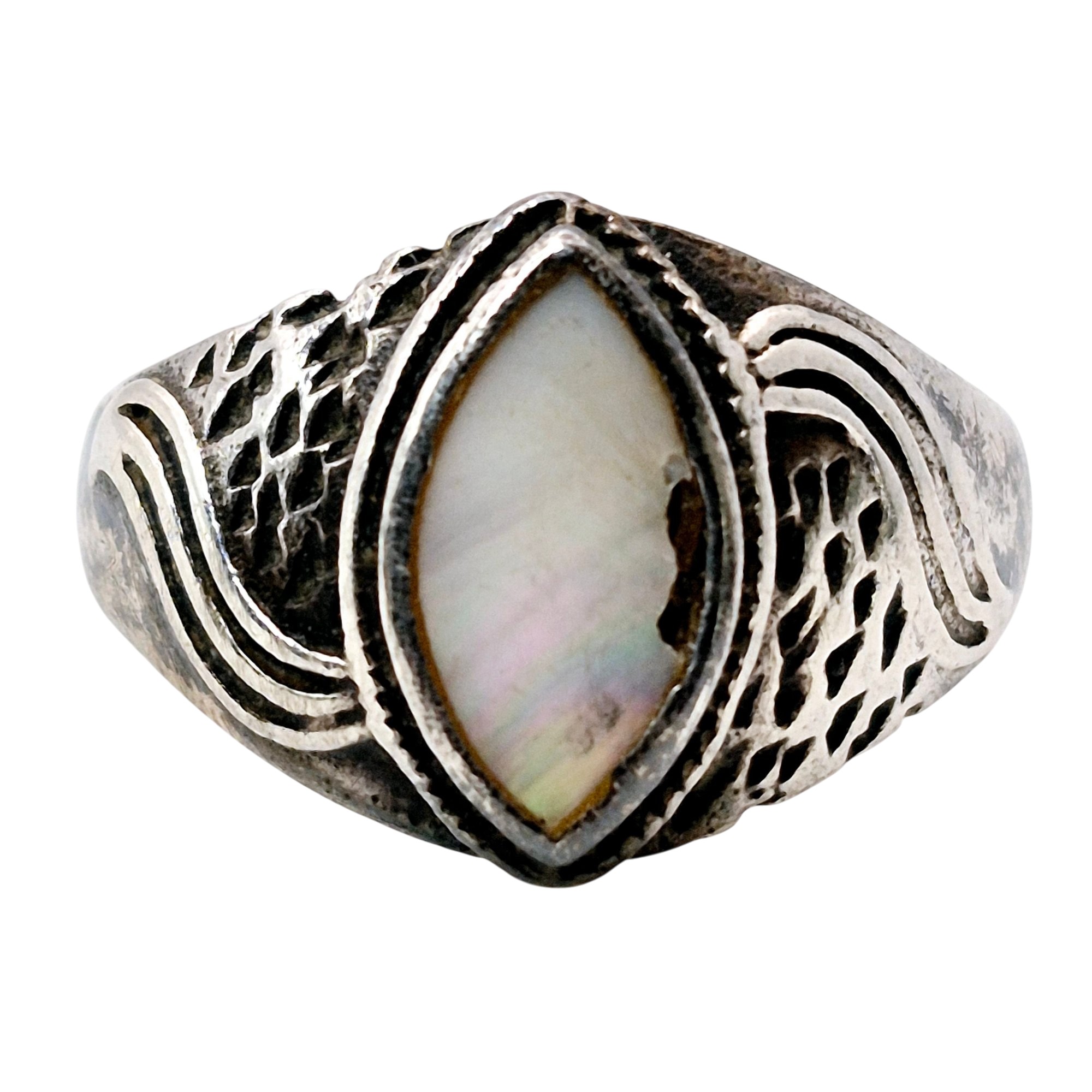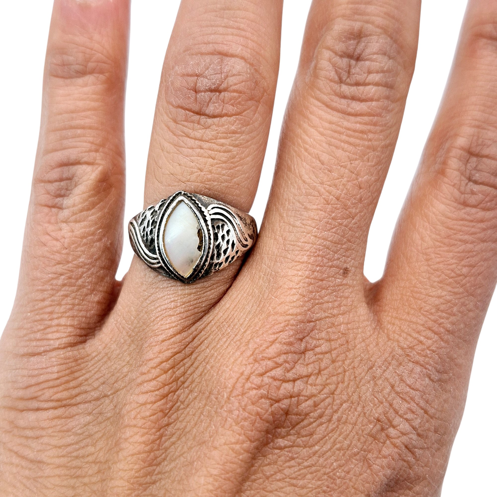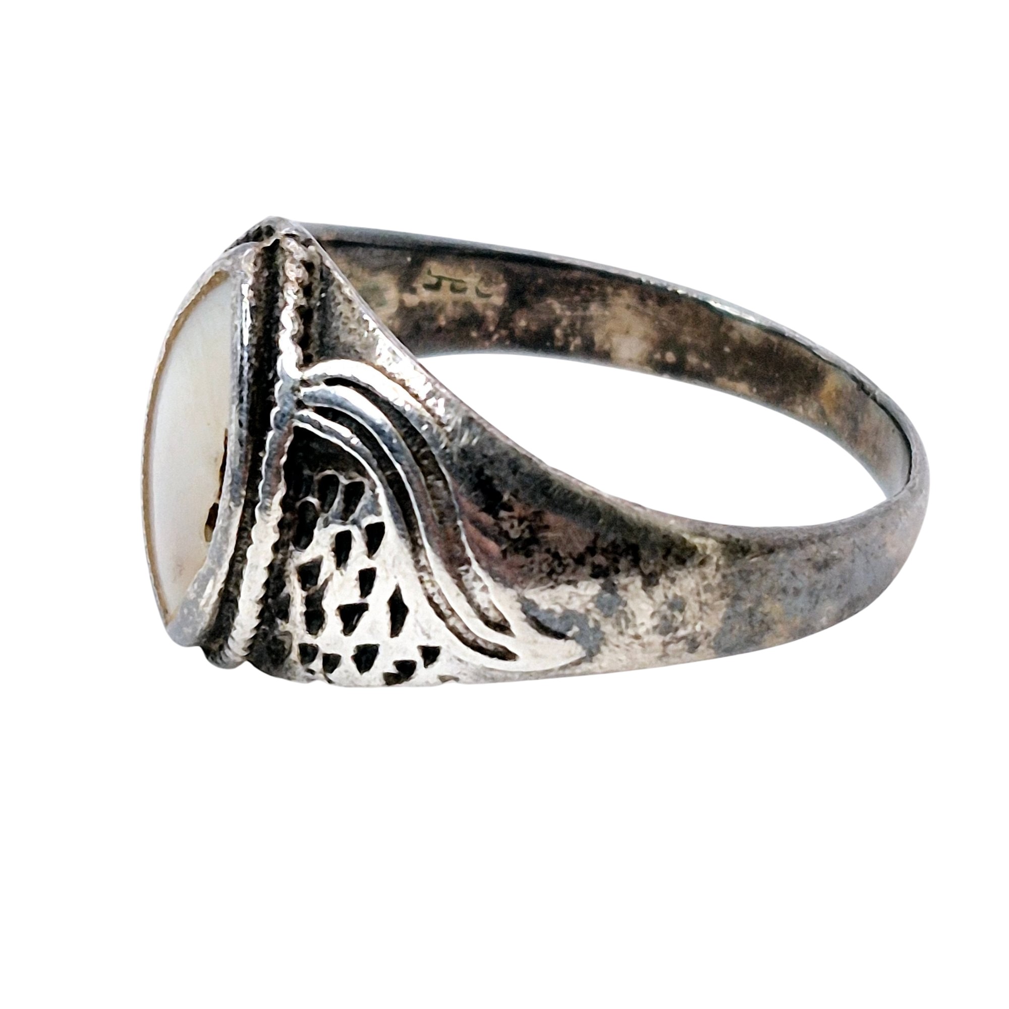 Sterling mother of pearl solitaire ring size 7 2.9 G