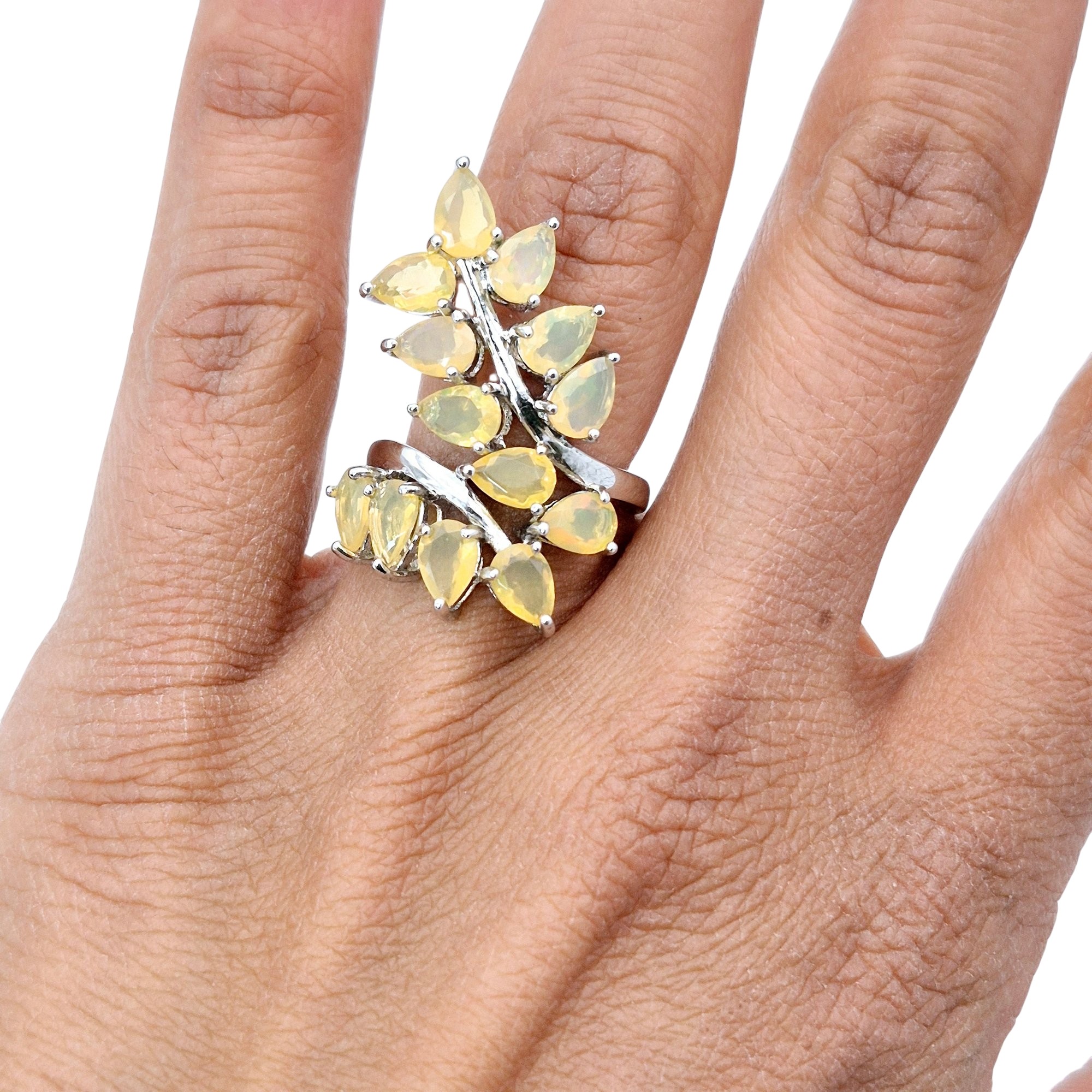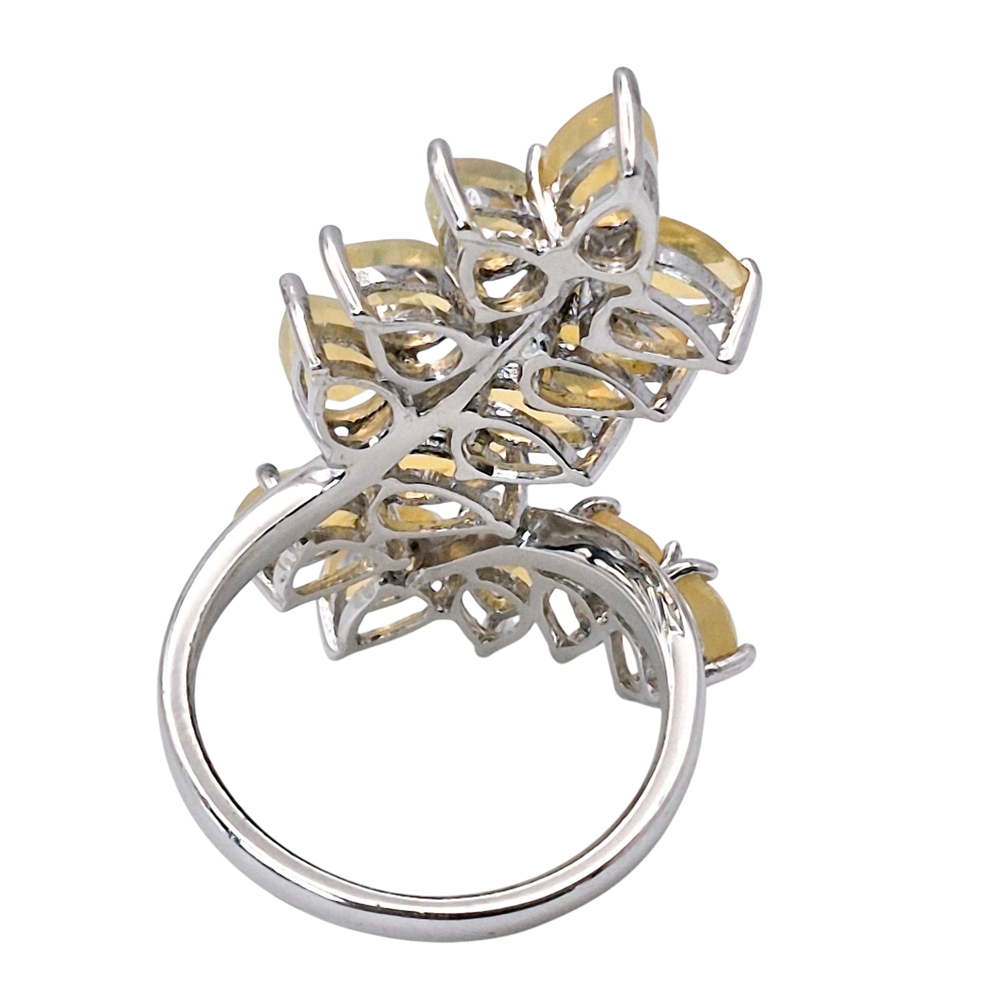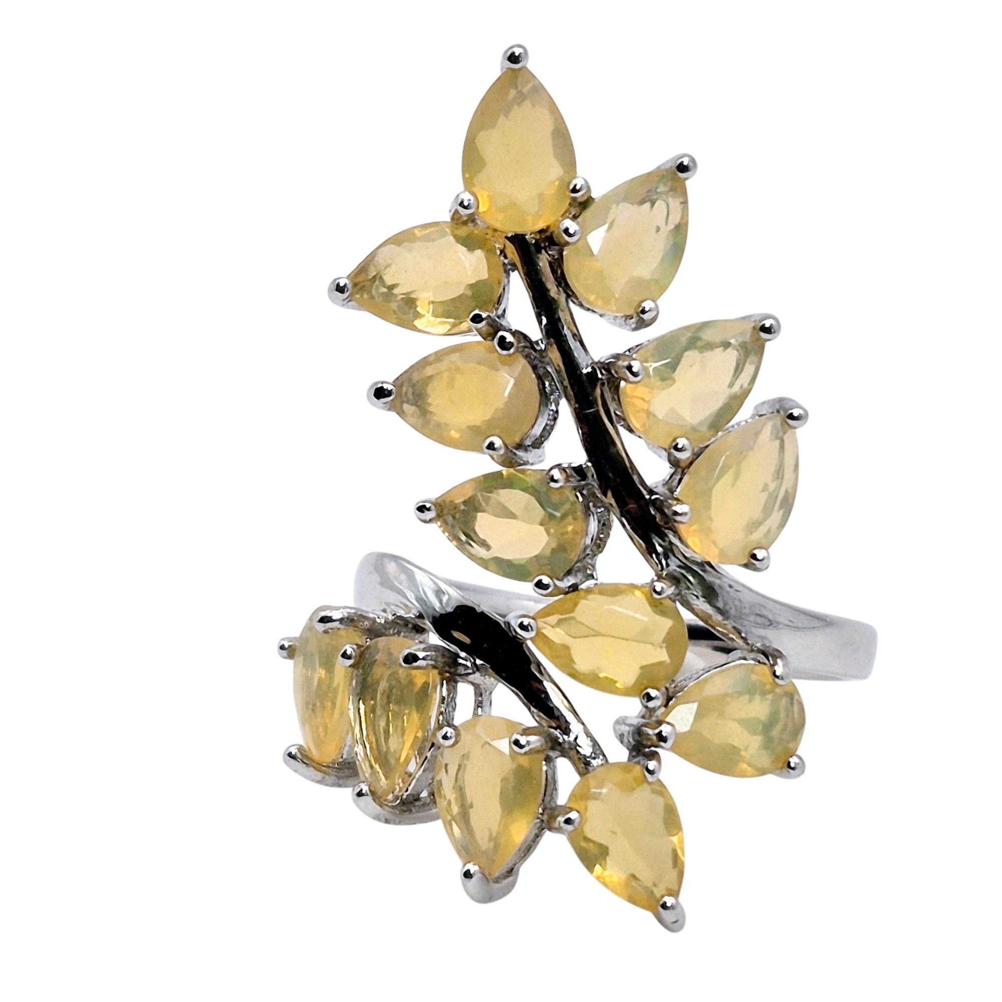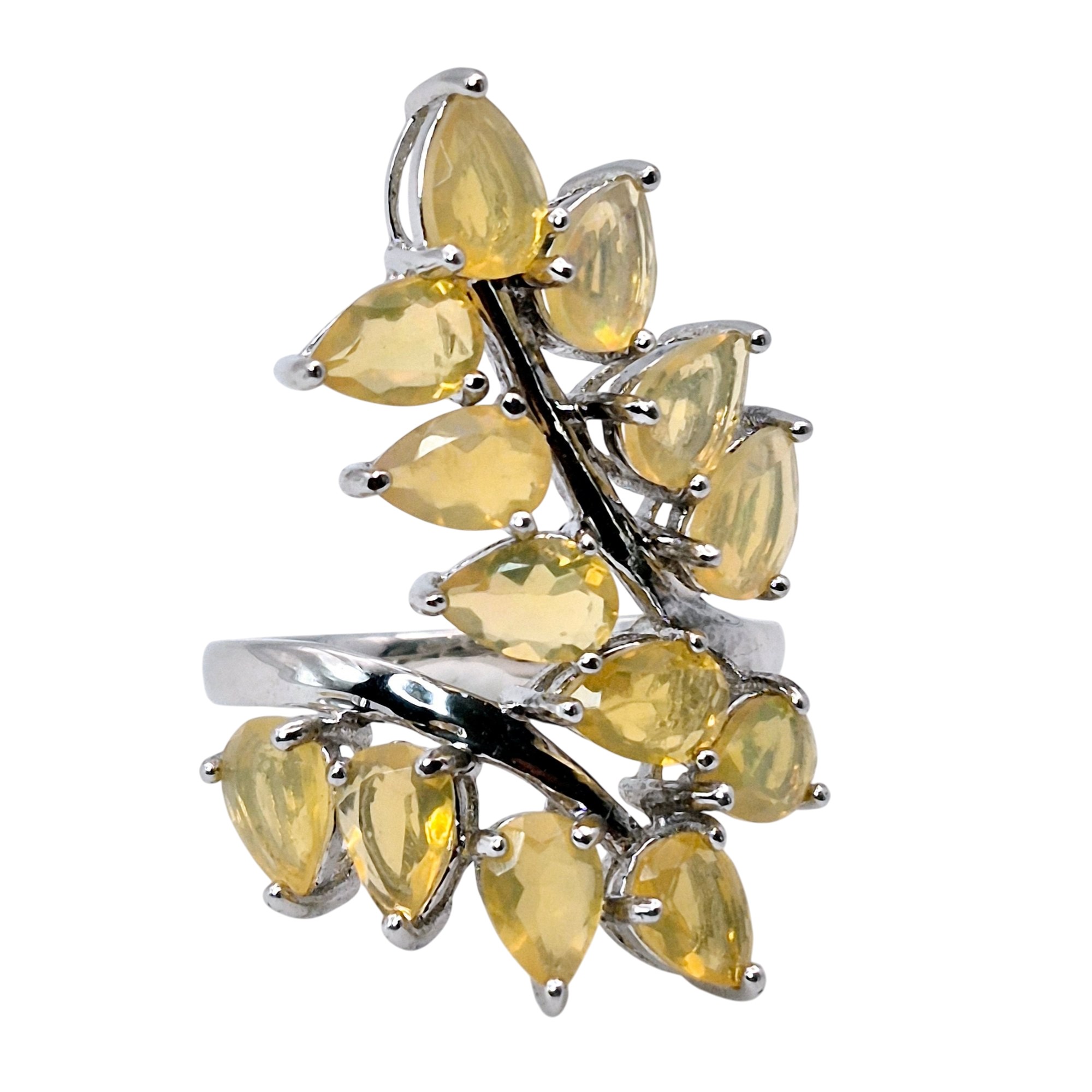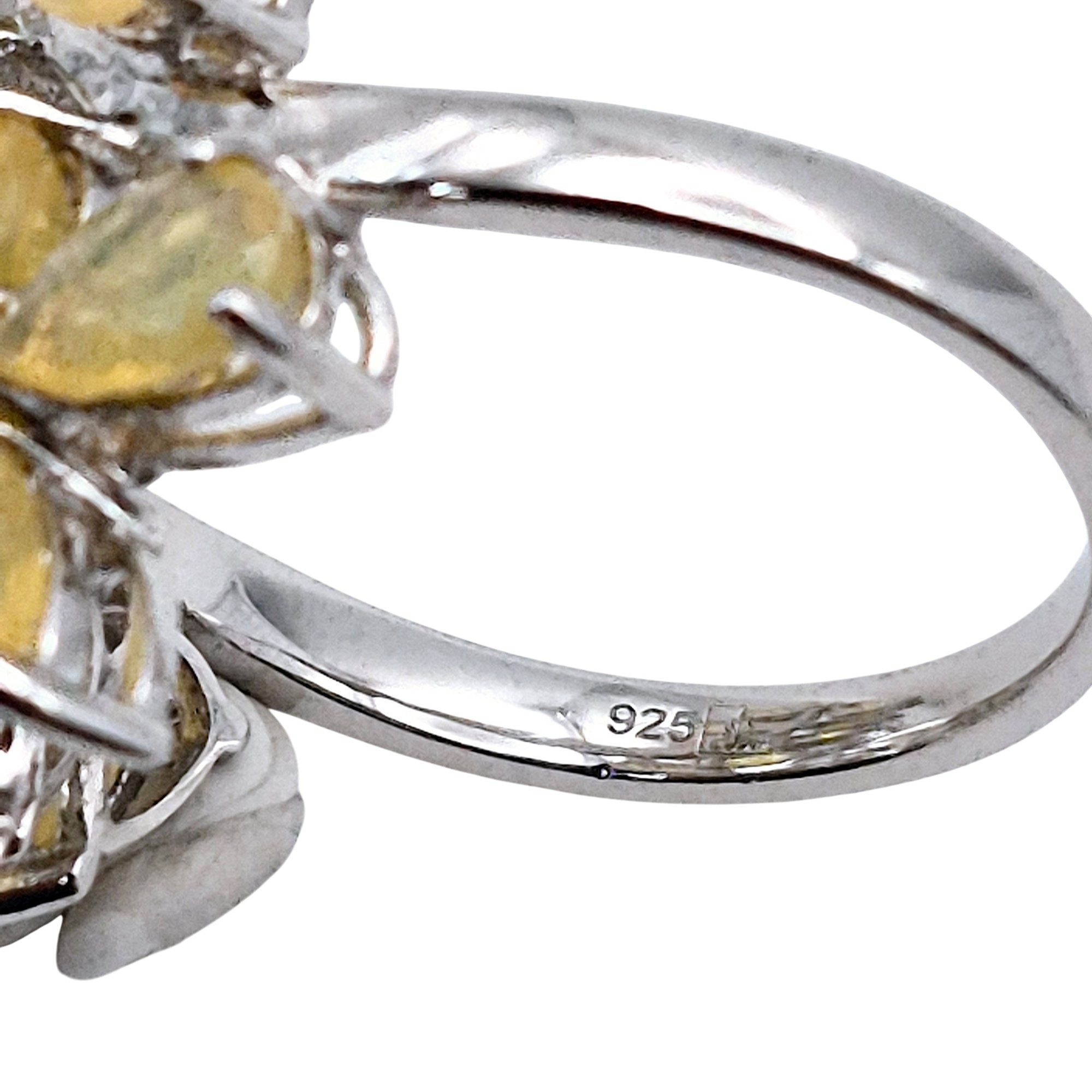 Signed Sterling Yellow stone Leaf design statement ring size 7 5.6 G