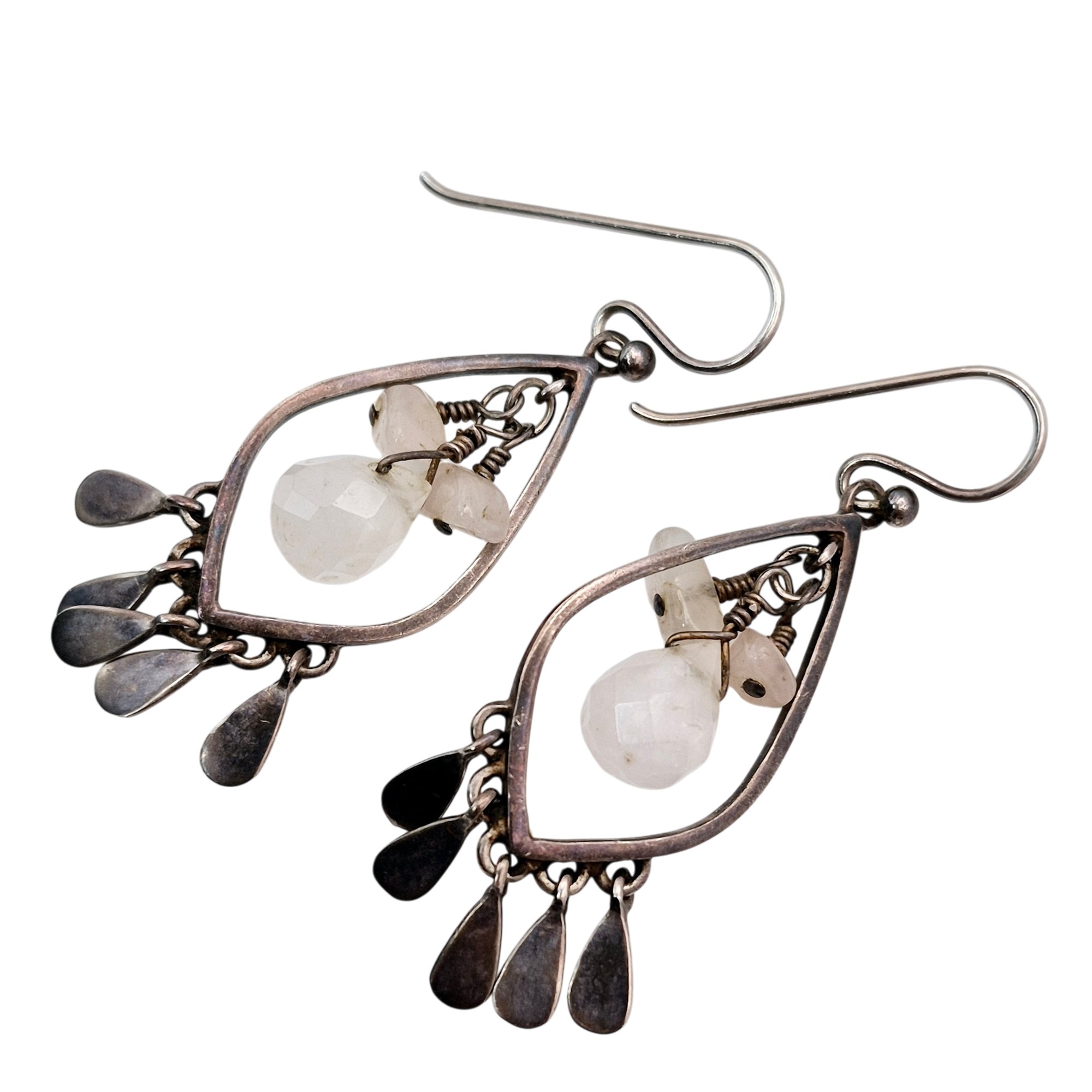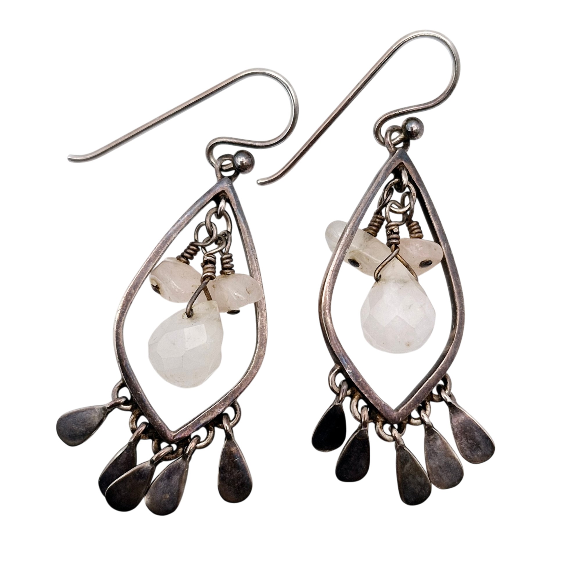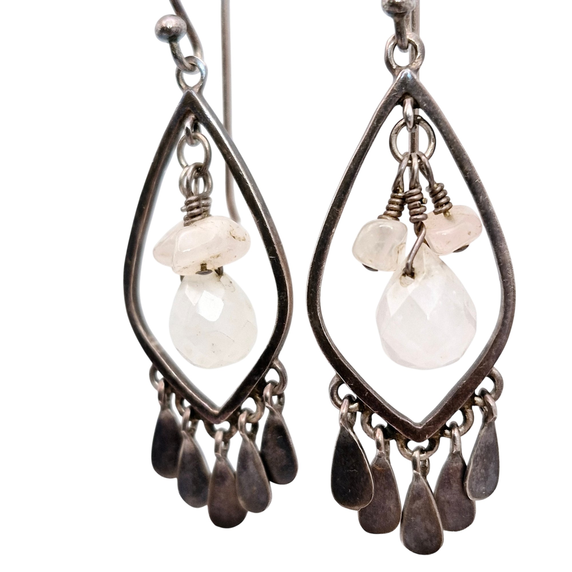 Sterling quartz teardrop-shaped frame dangle earrings 8.0 G