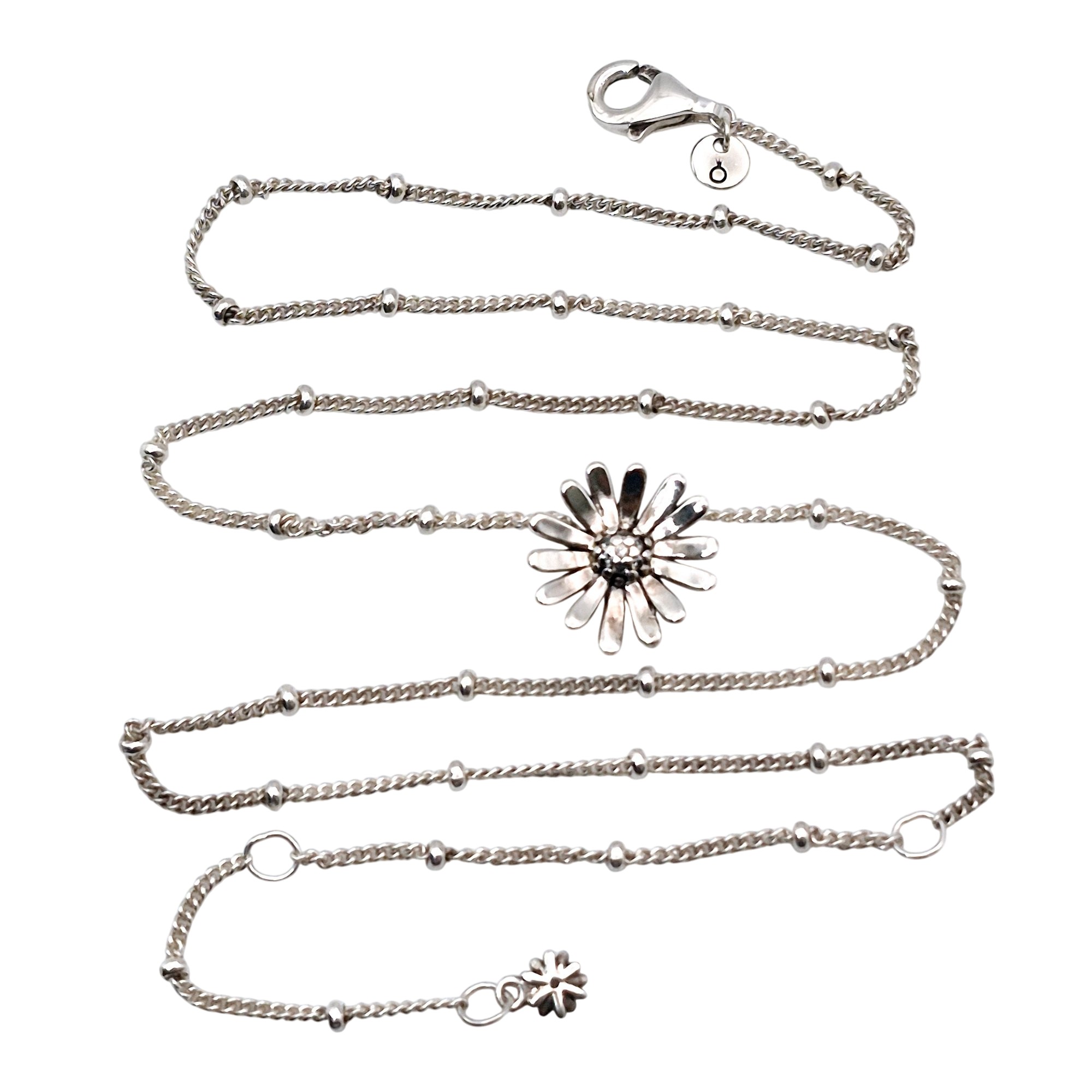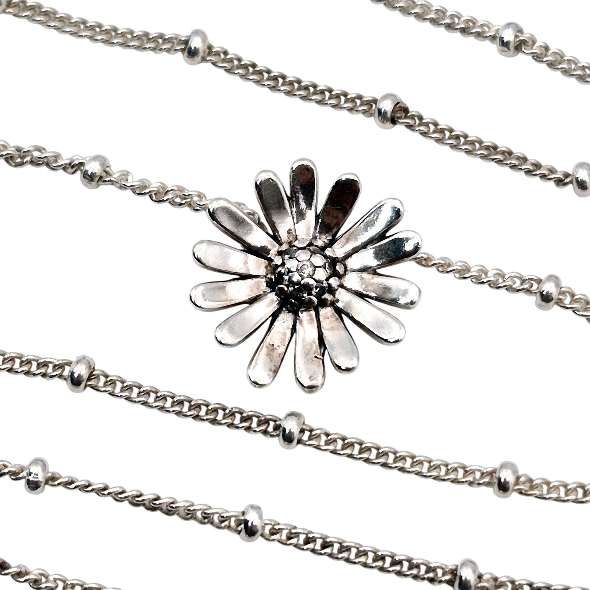 Pandora sterling flower pendant beaded curb chain necklace 4.0 G