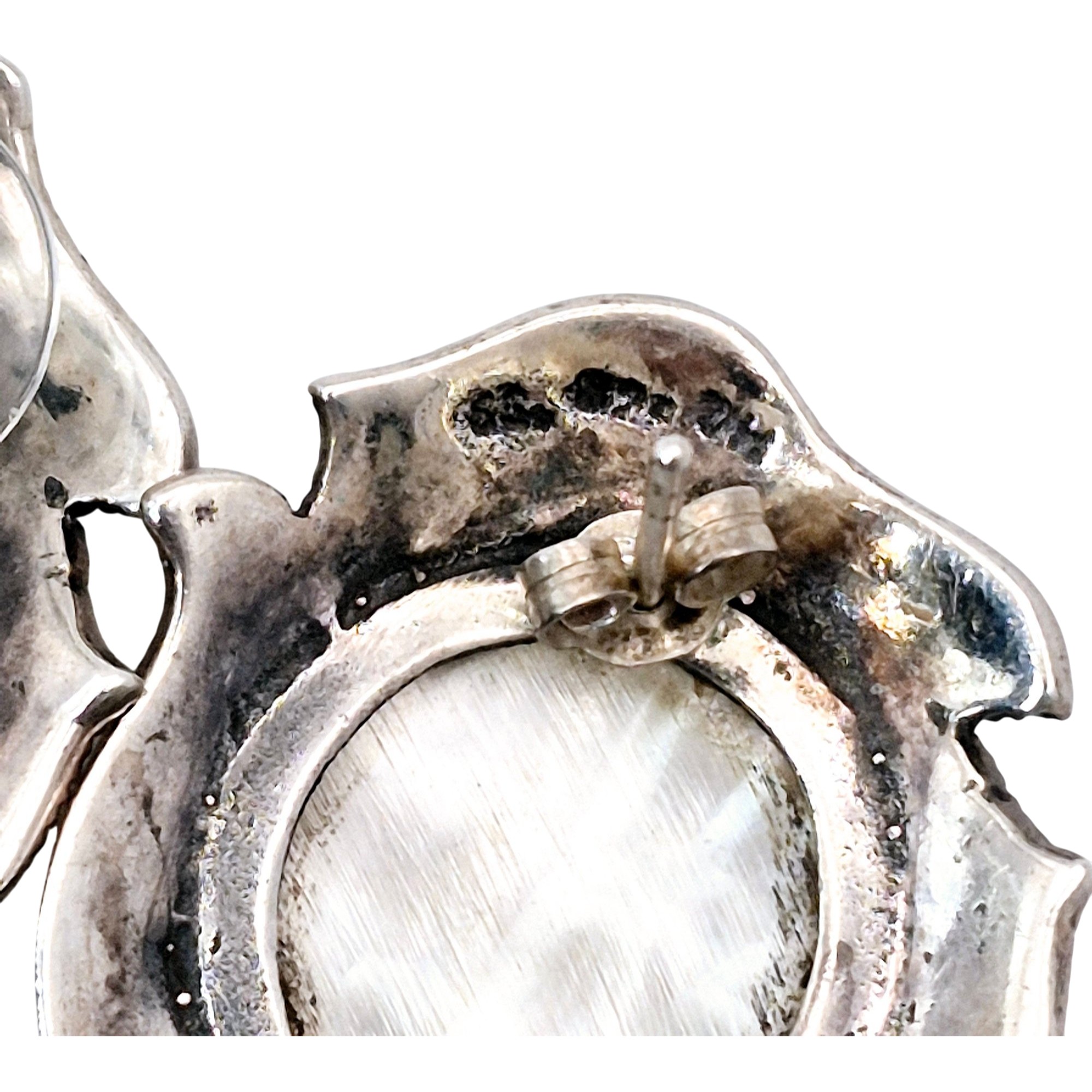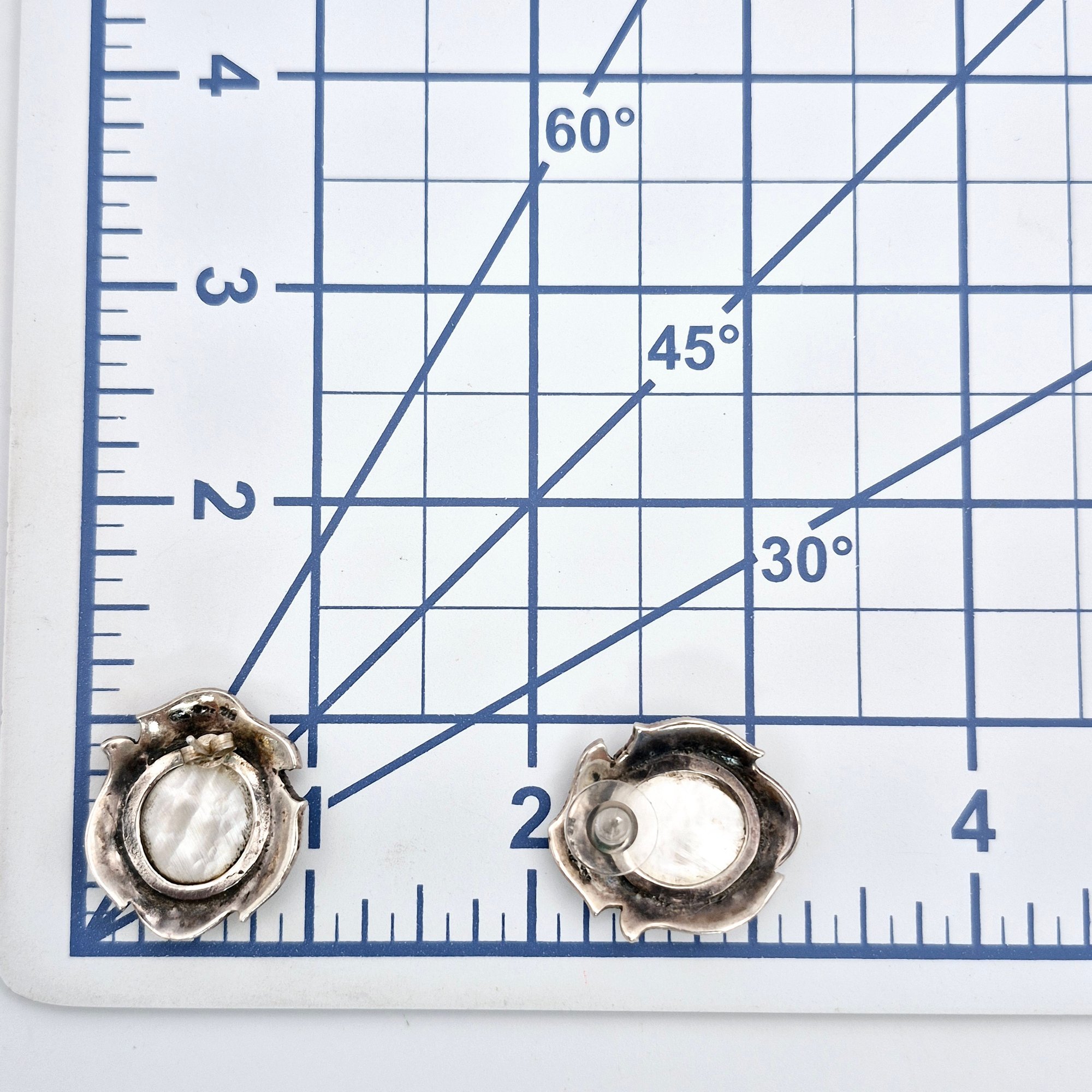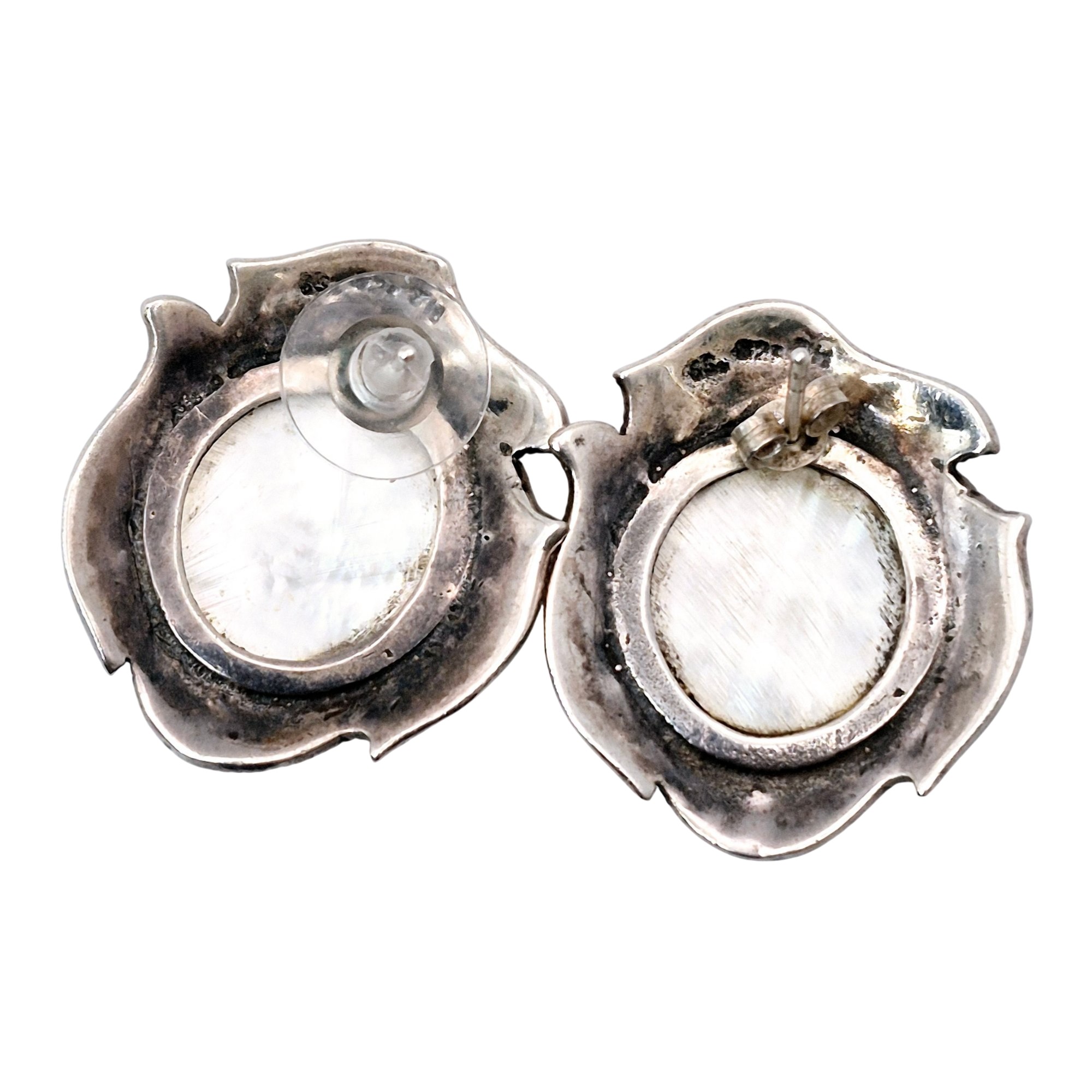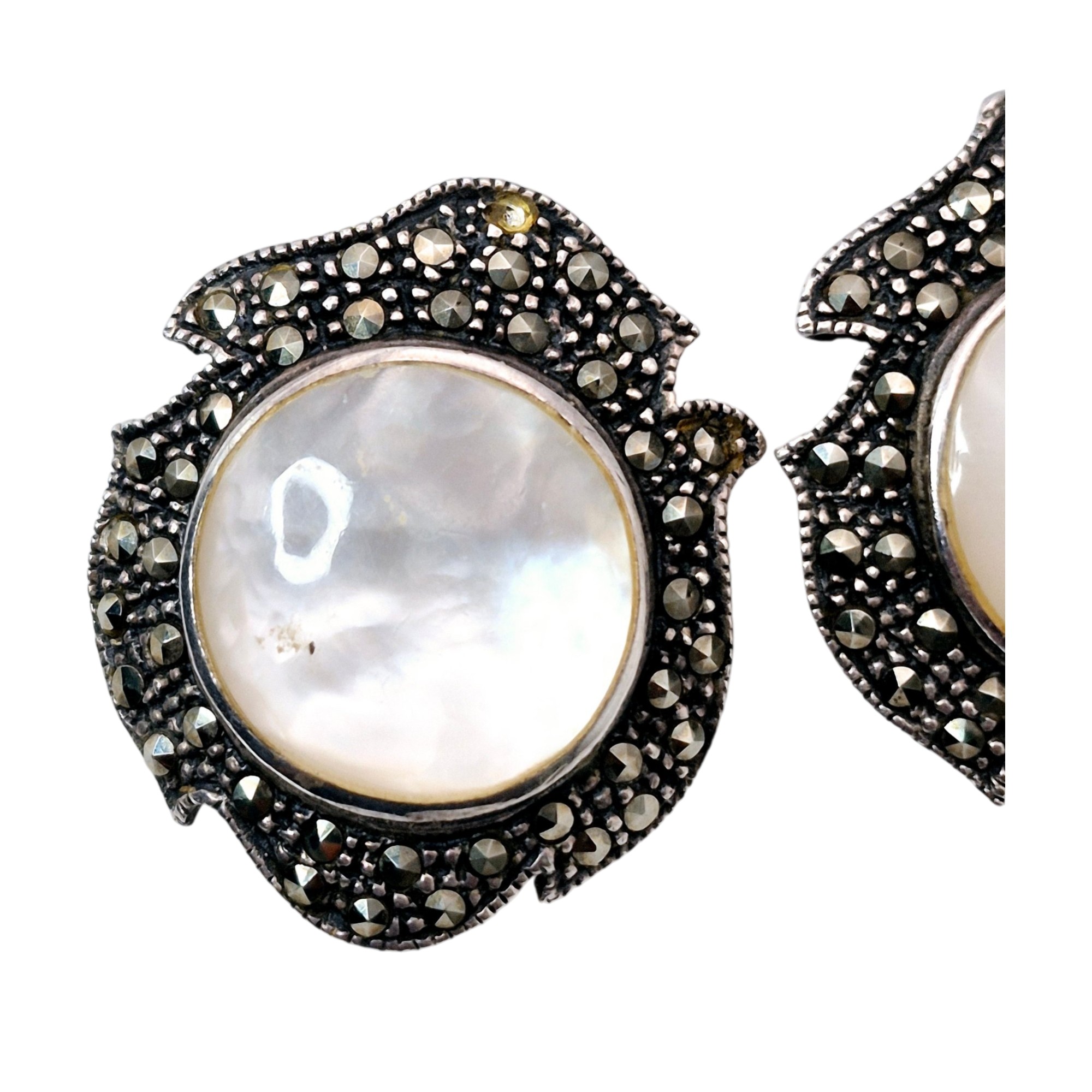 Signed Sterling mother of pearl marcasite stud earrings 10.1 G