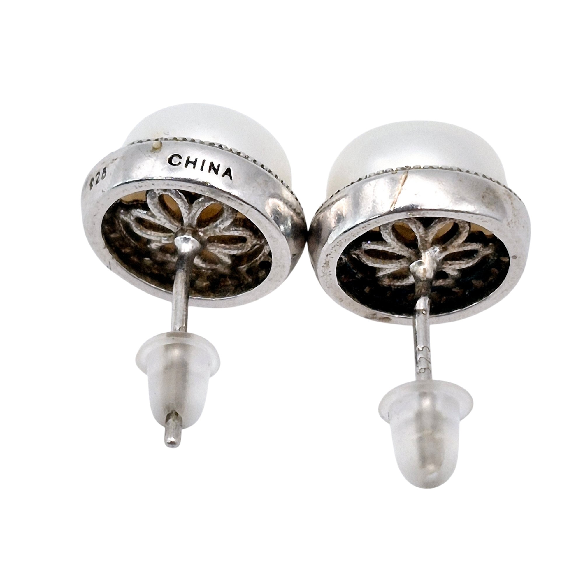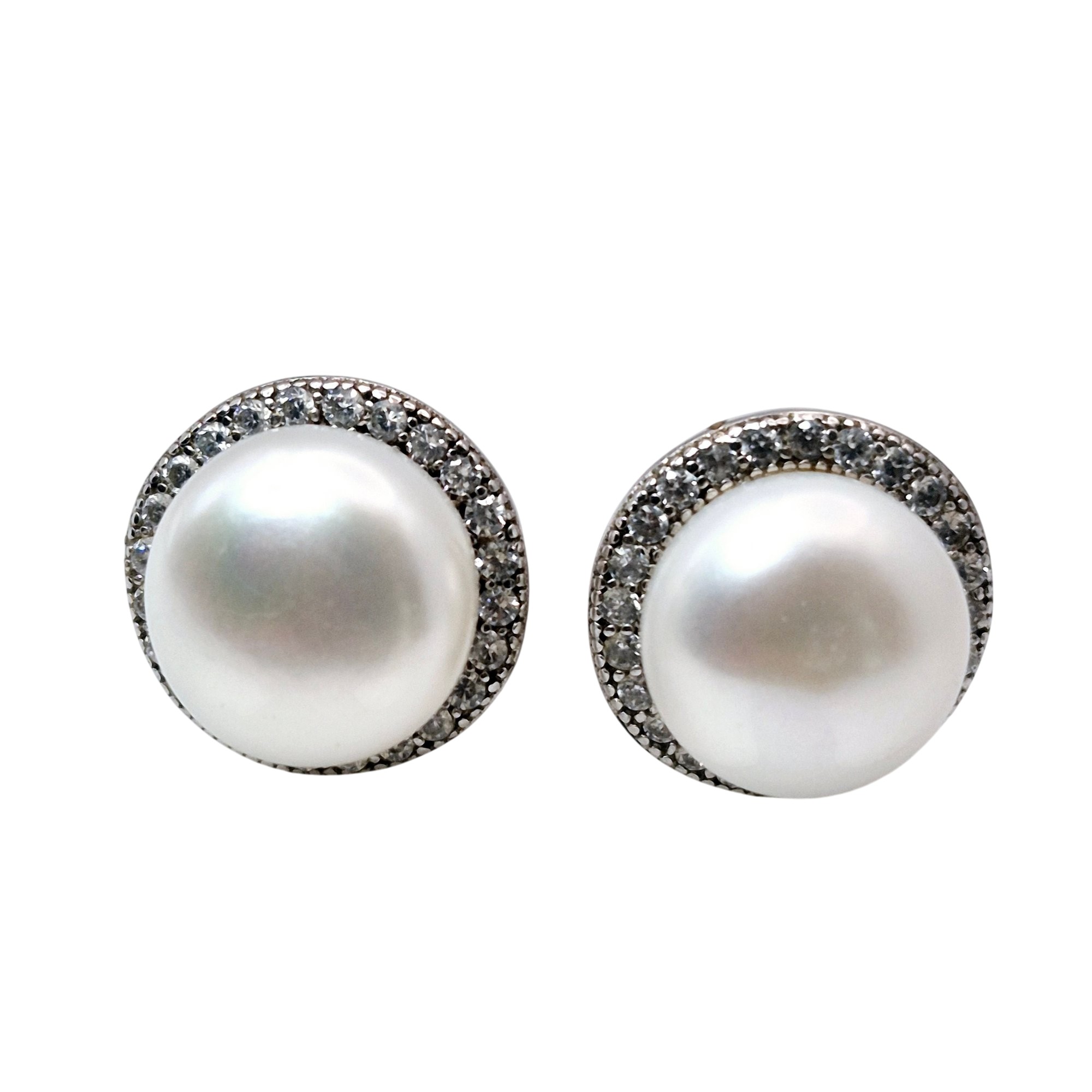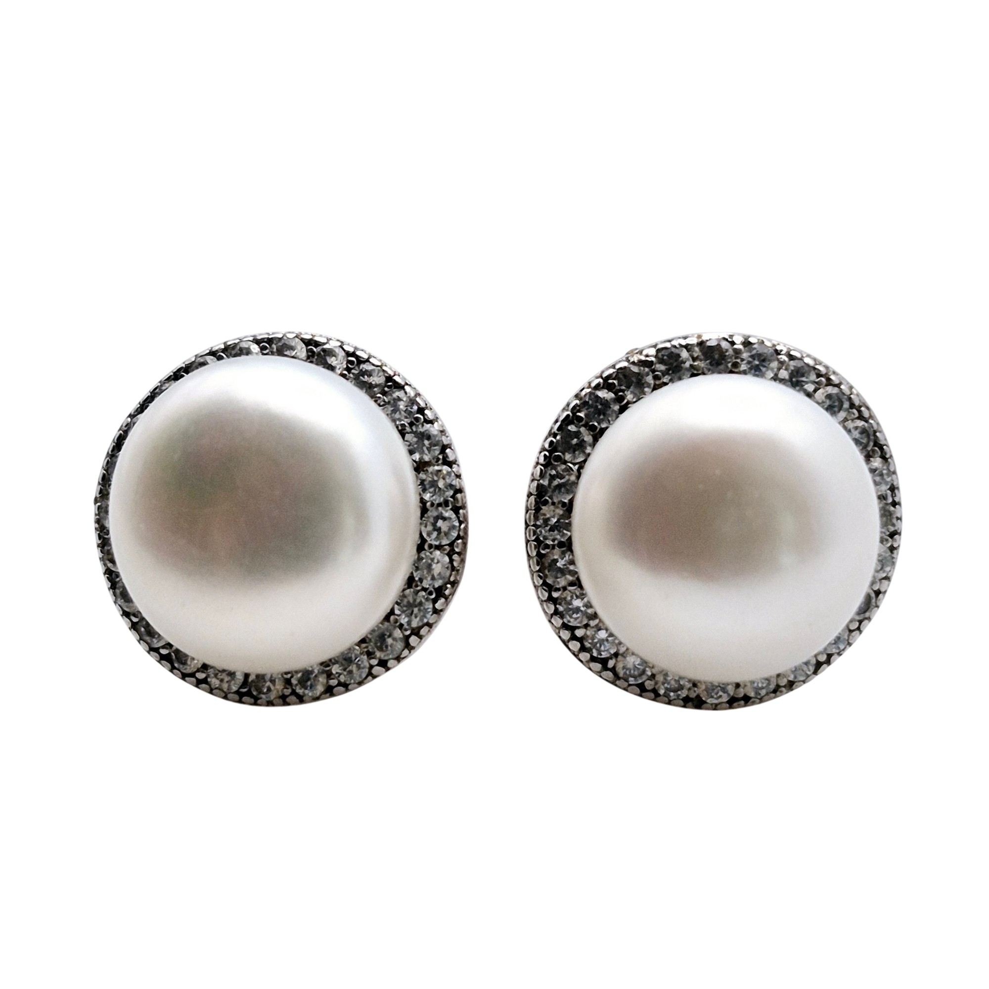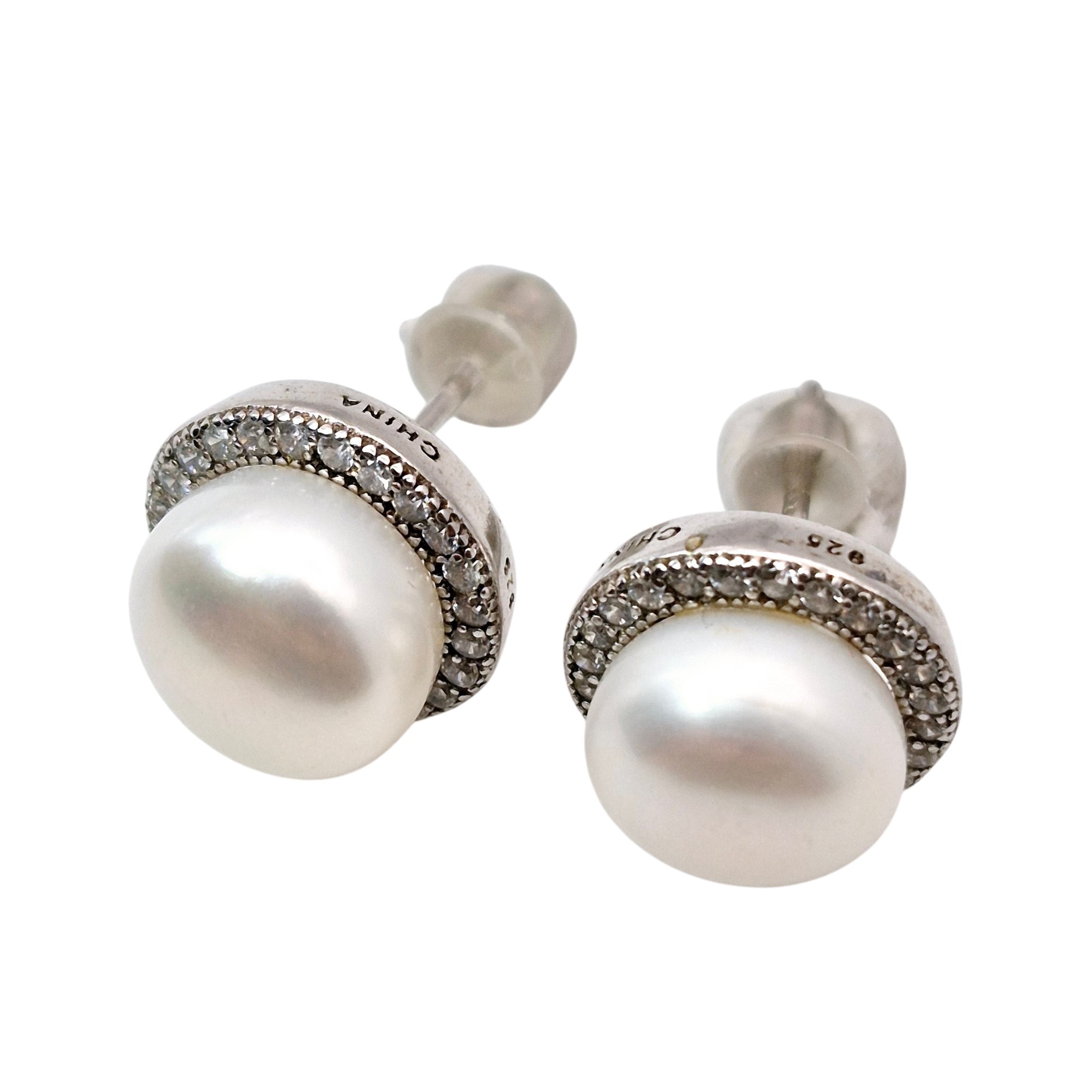 Sterling Pearl clear Stone surround stud earrings 3.6 grams