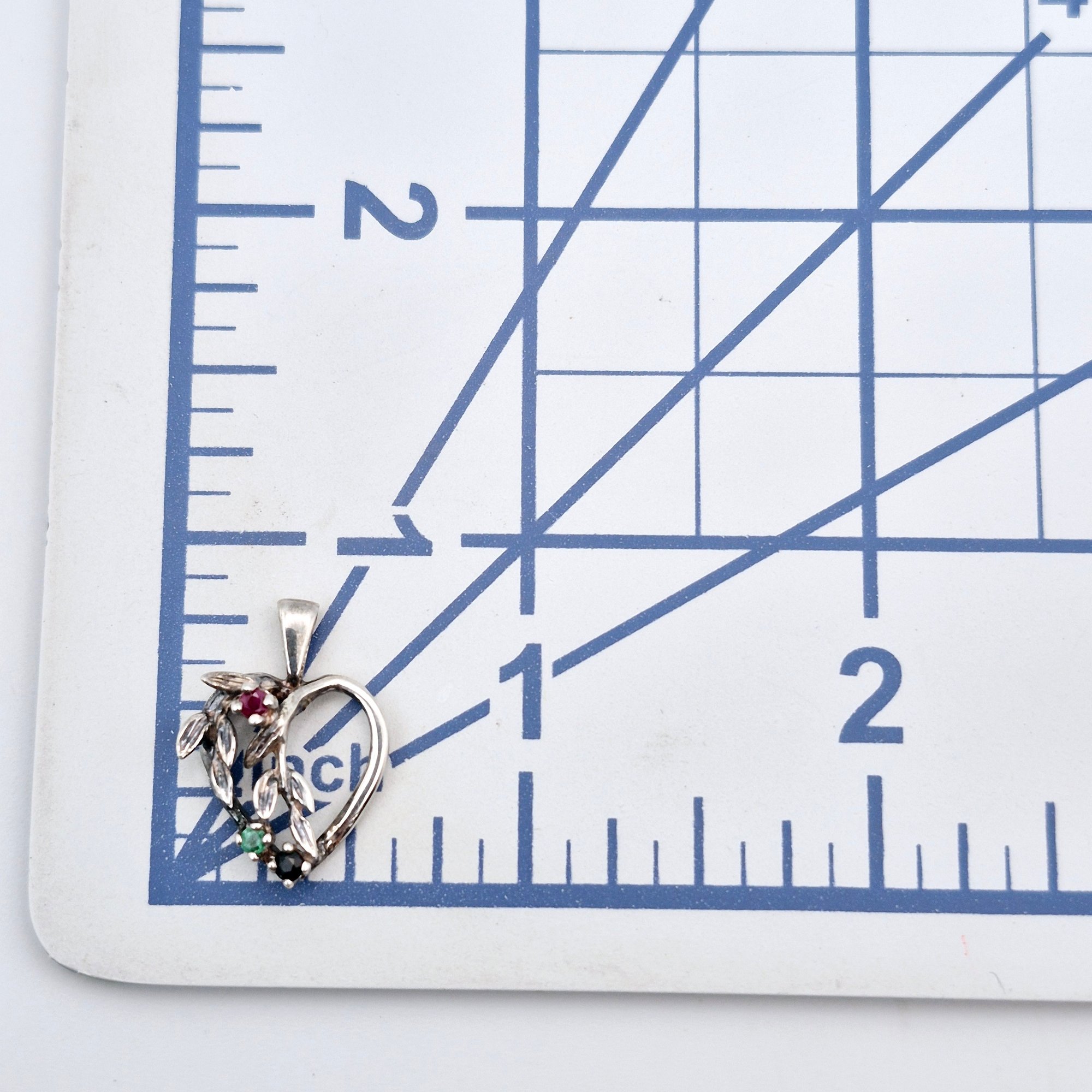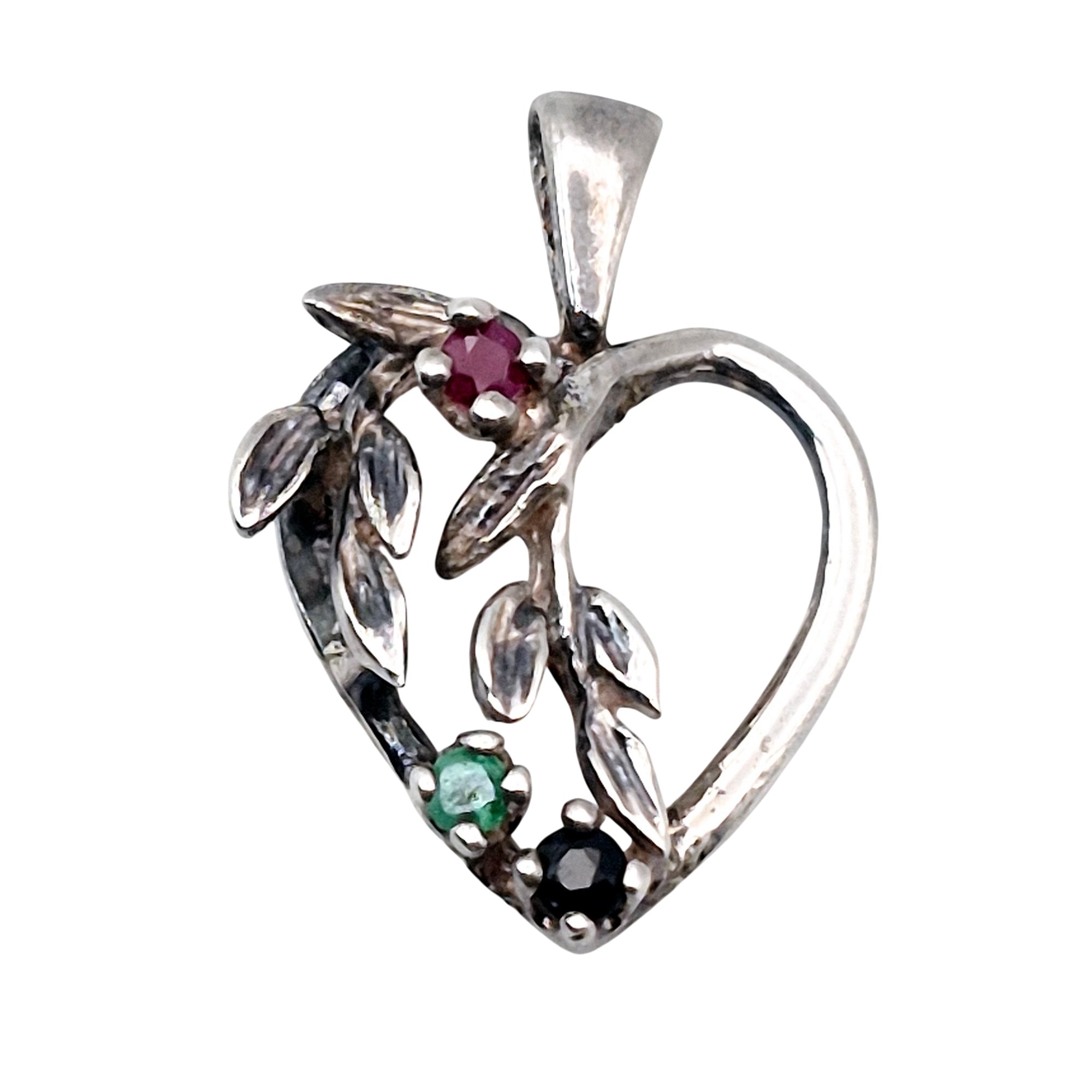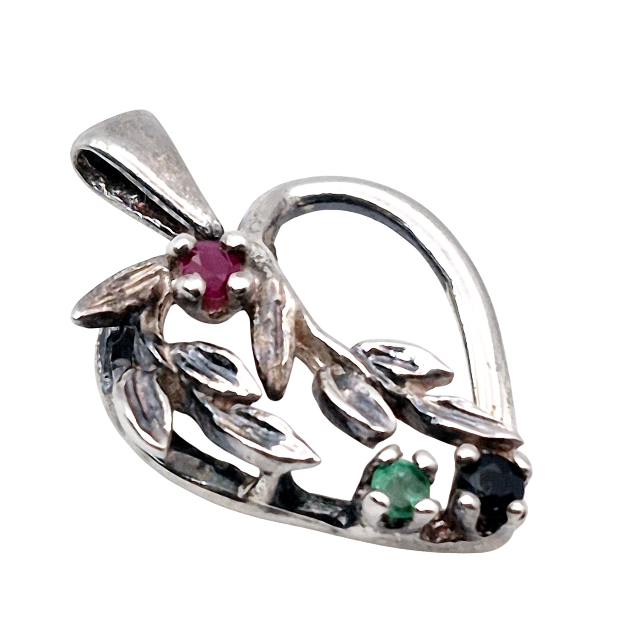Sterling Emerald Sapphire Ruby heart pendant 1.6 G