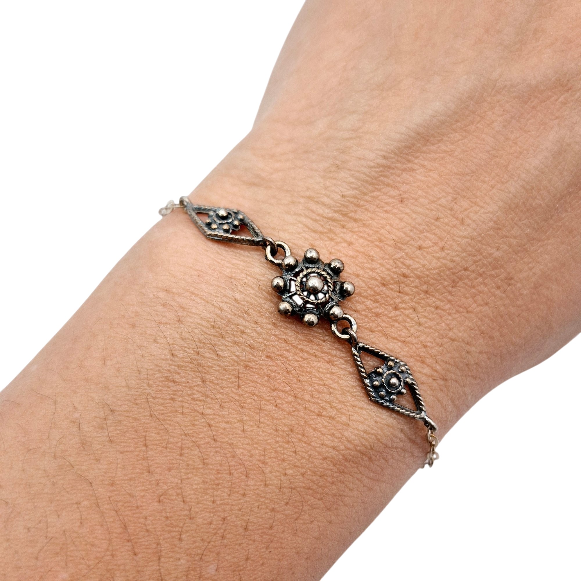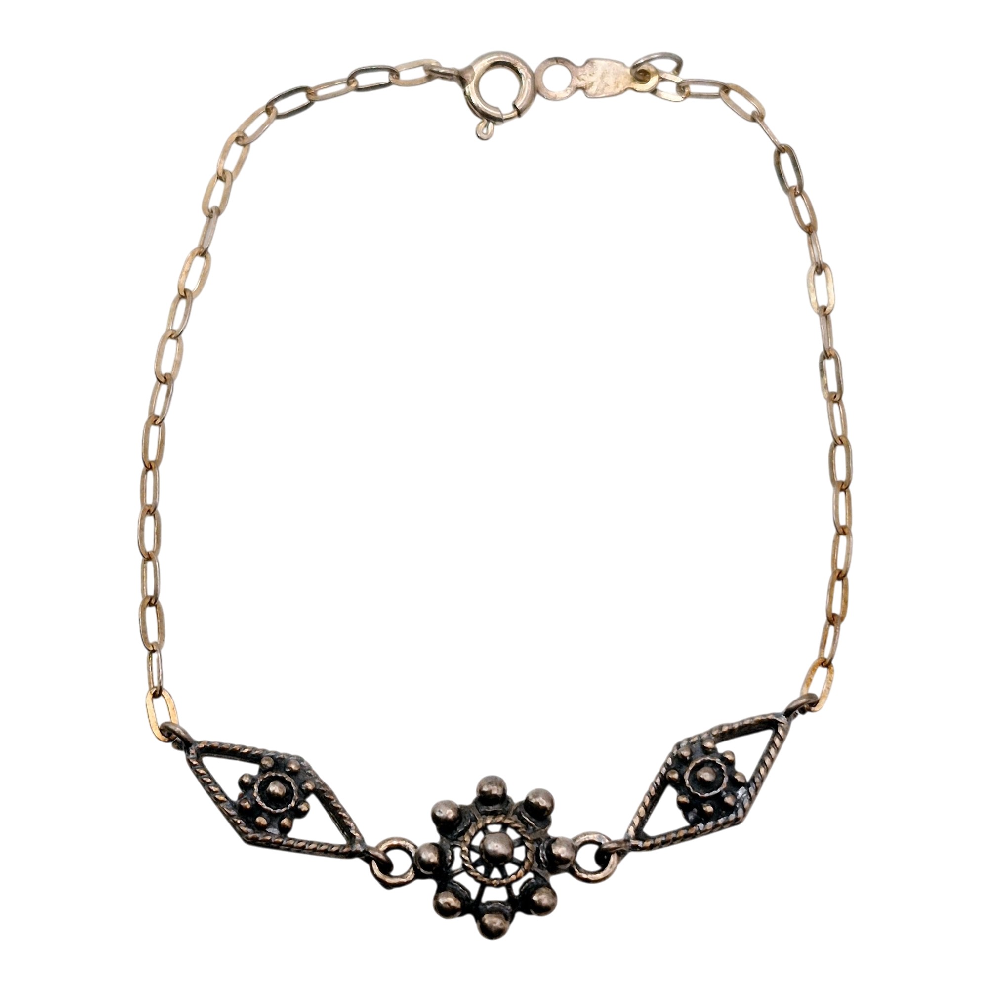Signed Sterling filigree Link cable chain bracelet 2.3 G