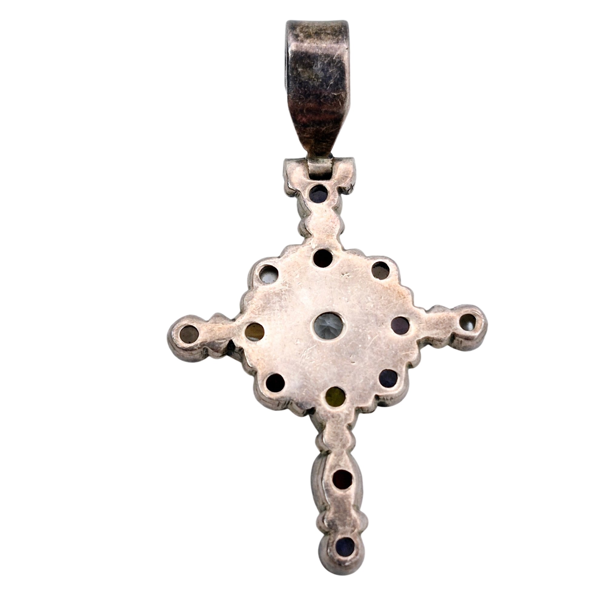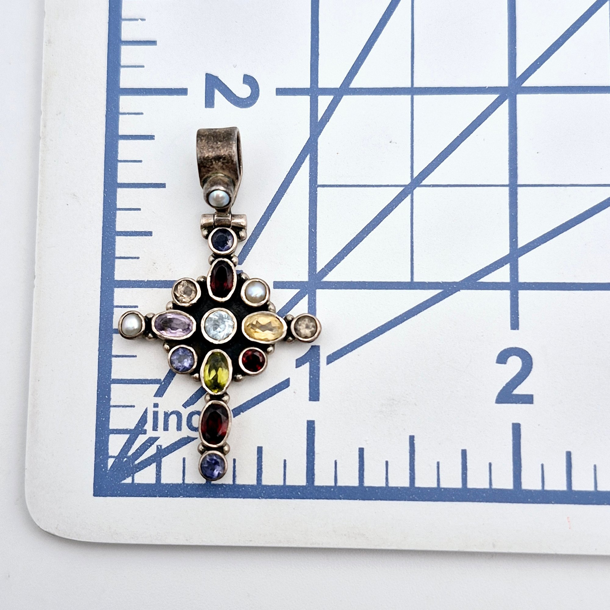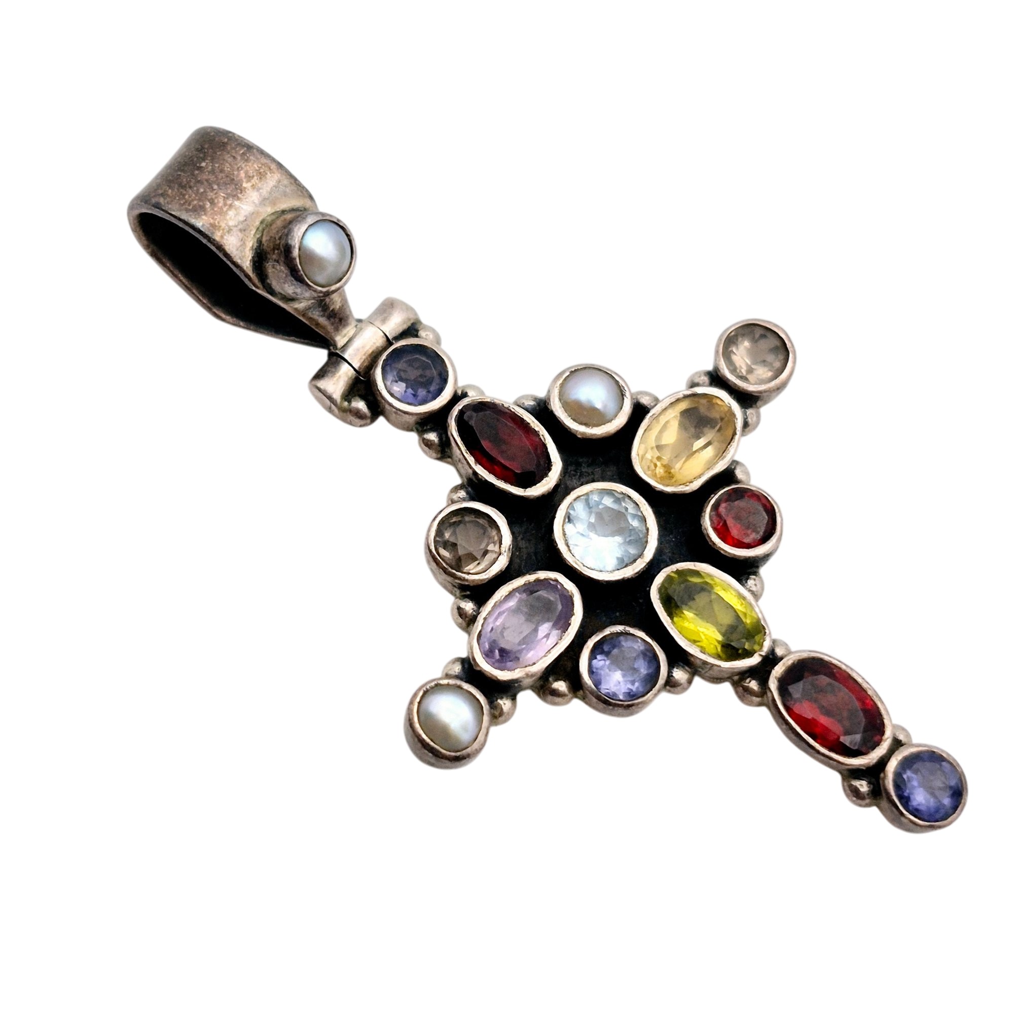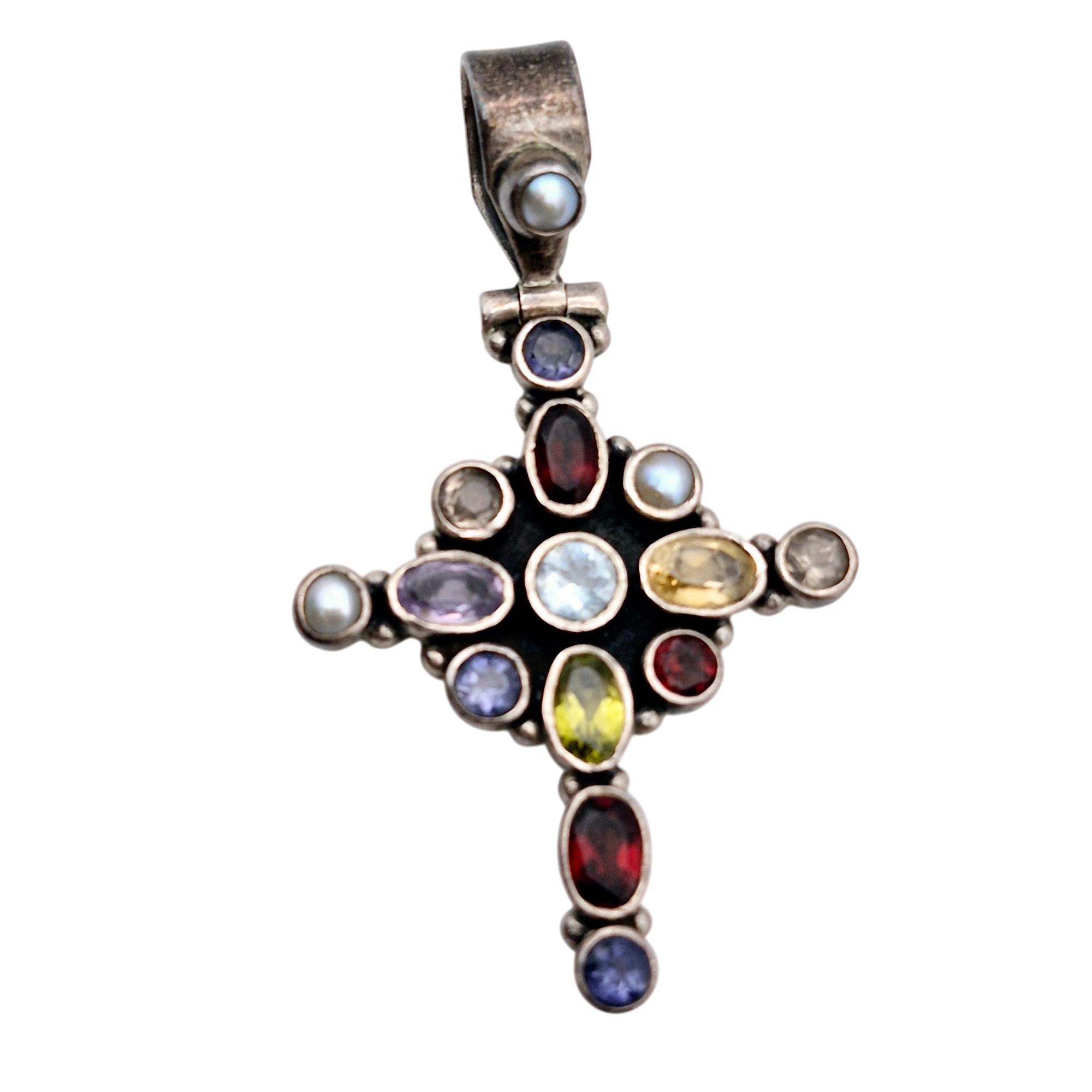 Sterling multi gem cross pendant 5.7 G