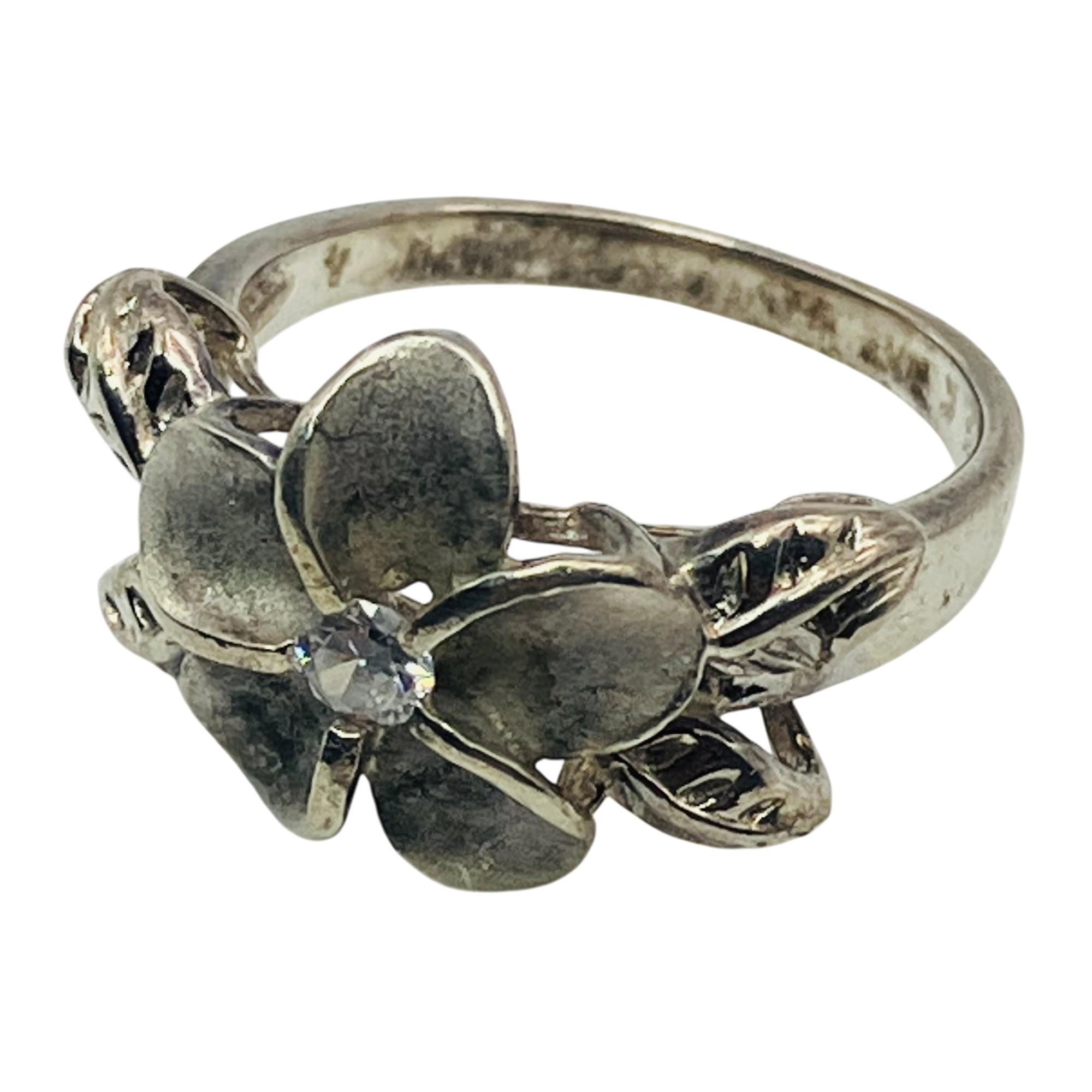 K Sterling clear stone flower statement ring size 4 2.62 g