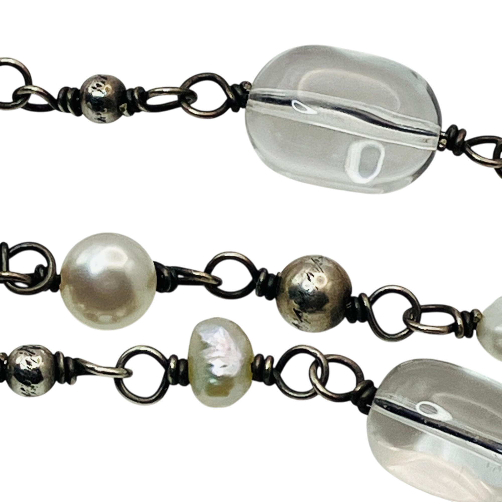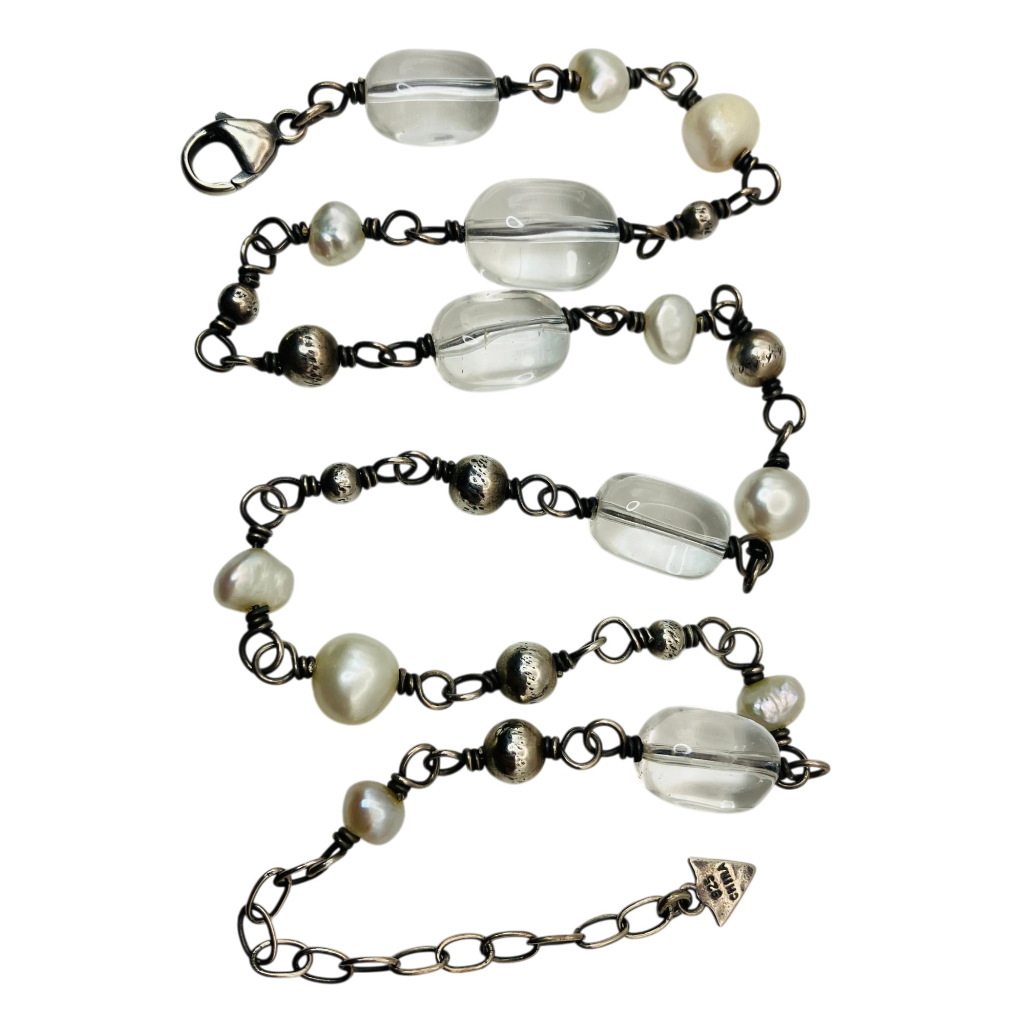 SILPADA QUARTZ PEARL Sterling ball link necklace 21.28 g