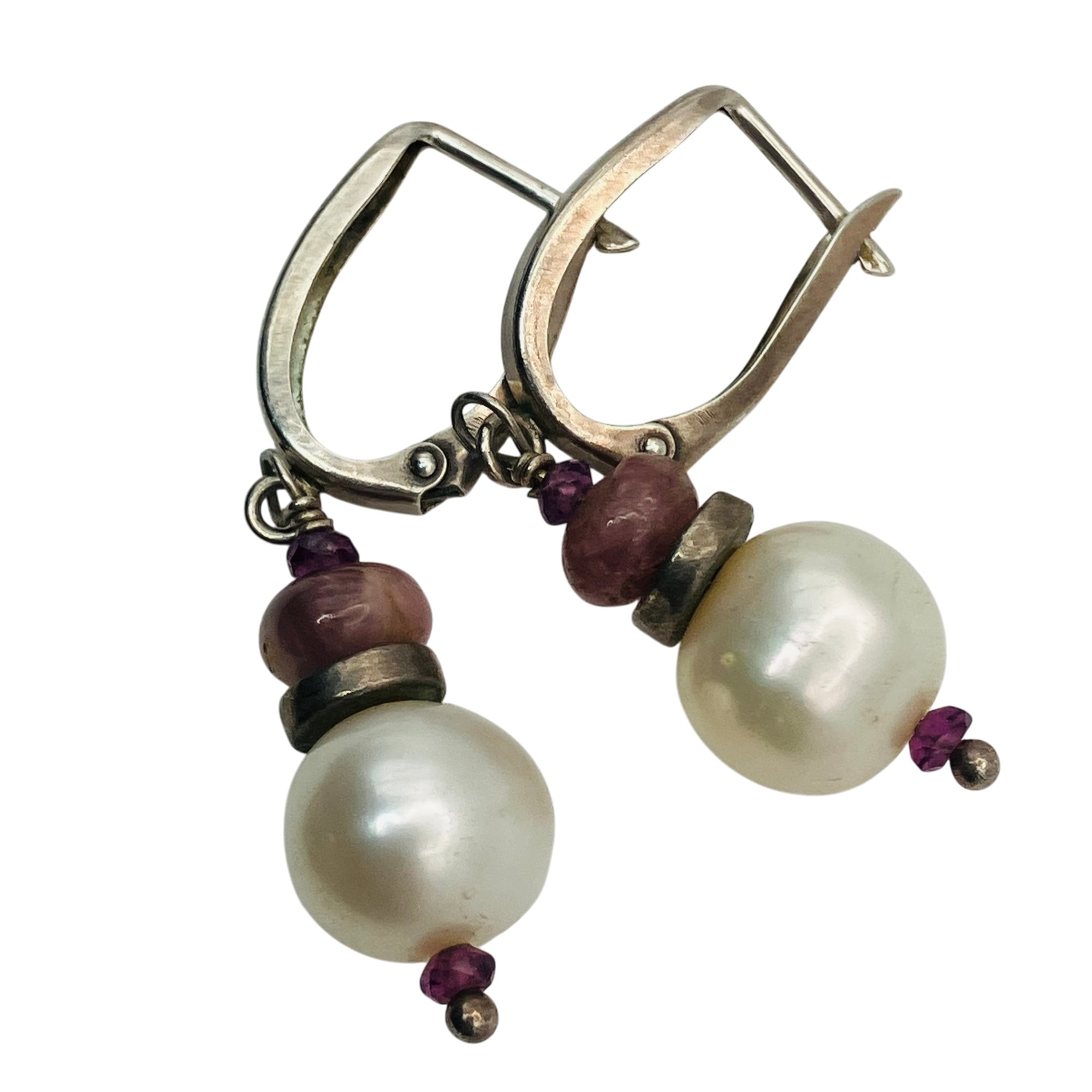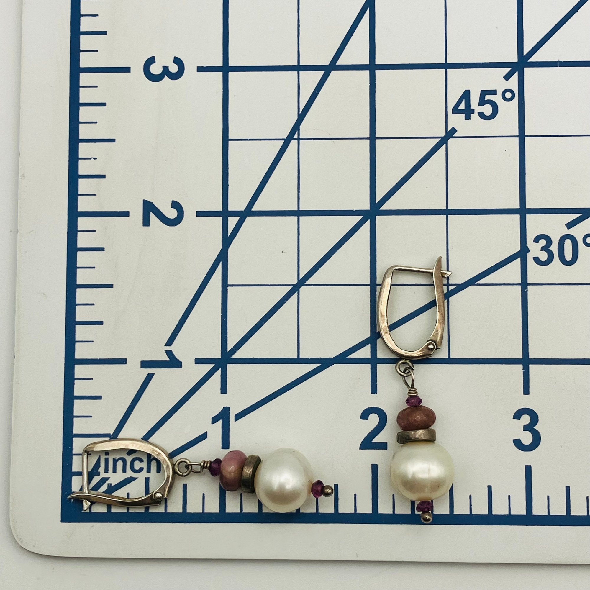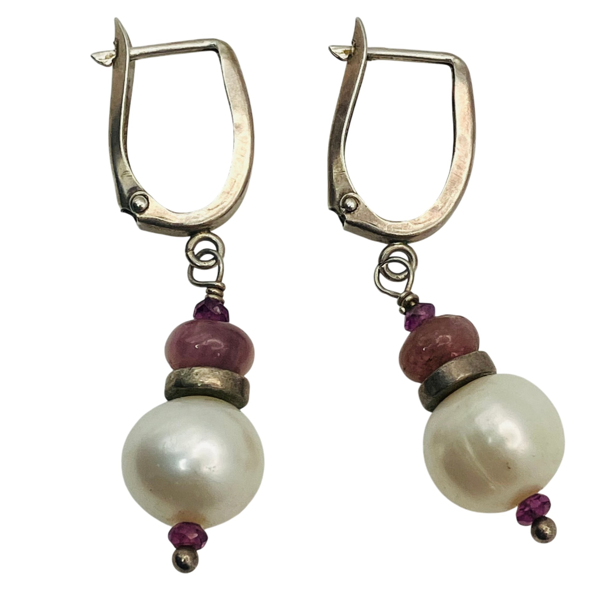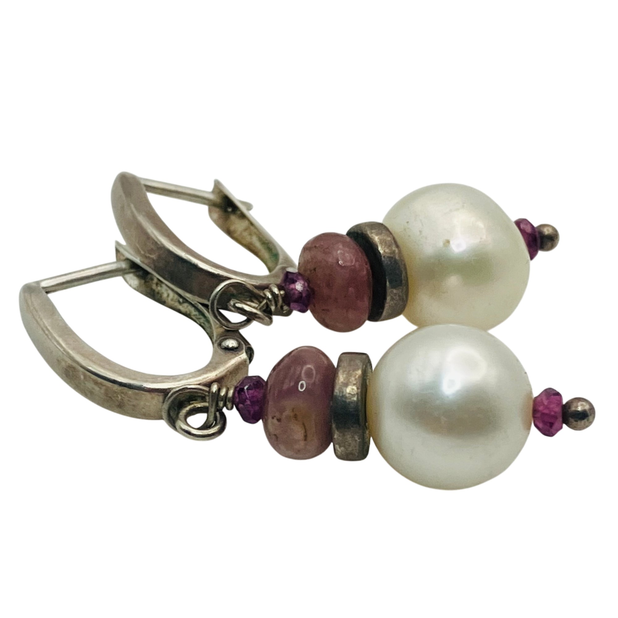 PEARL pink TOURMALINE Sterling dangle earrings 6.04 g