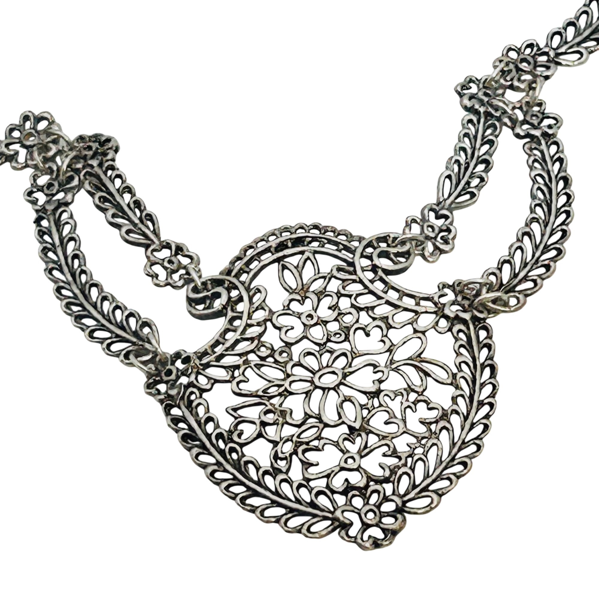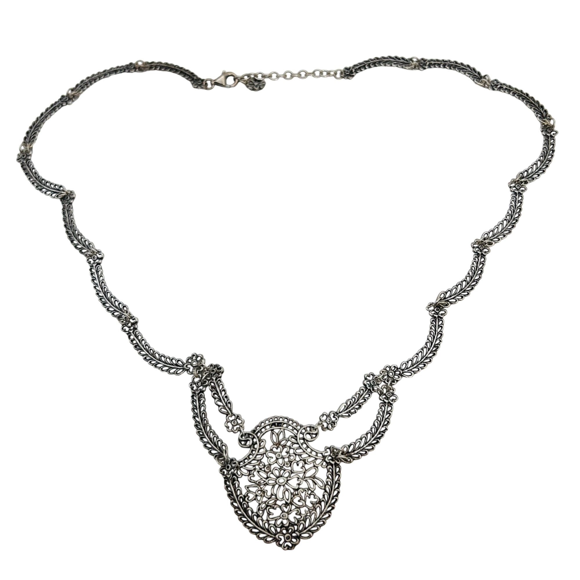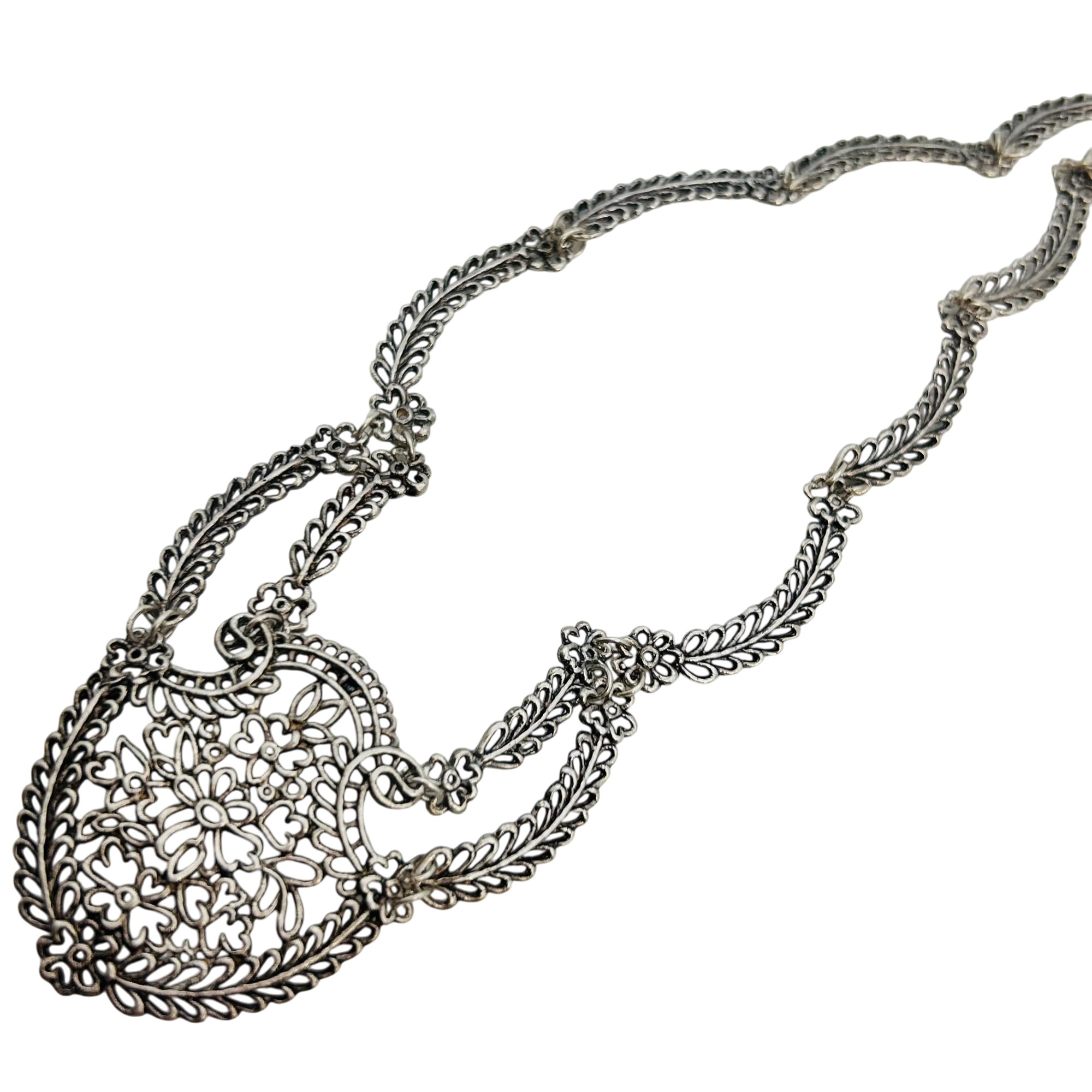 Vintage sterling filigree floral cut out necklace 15.4 g