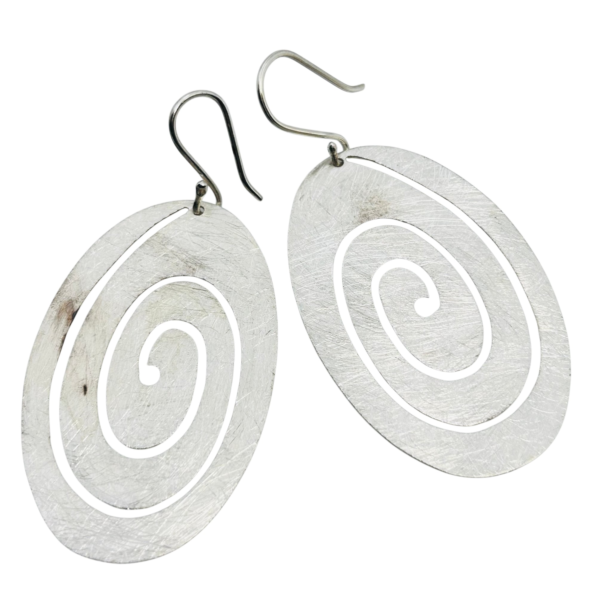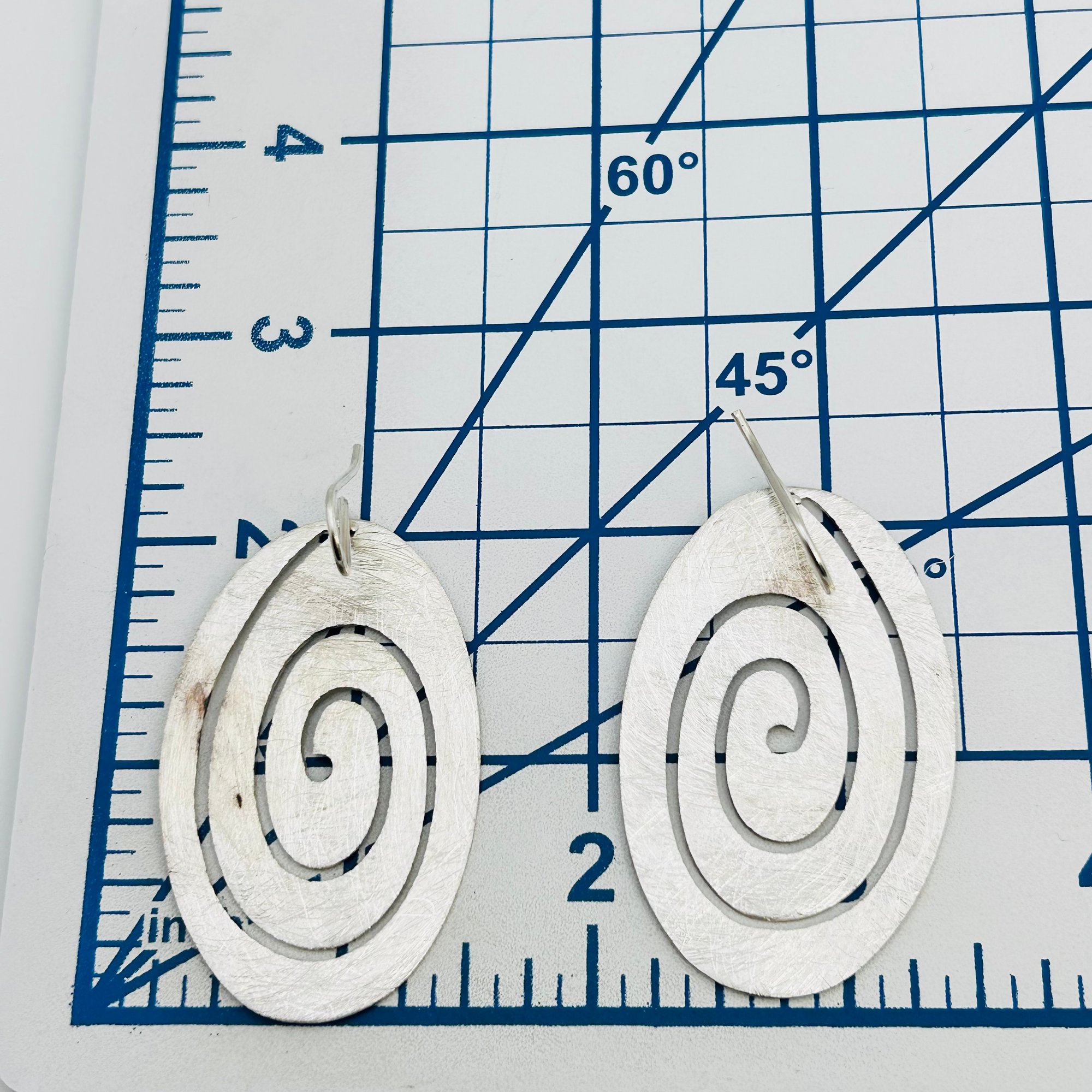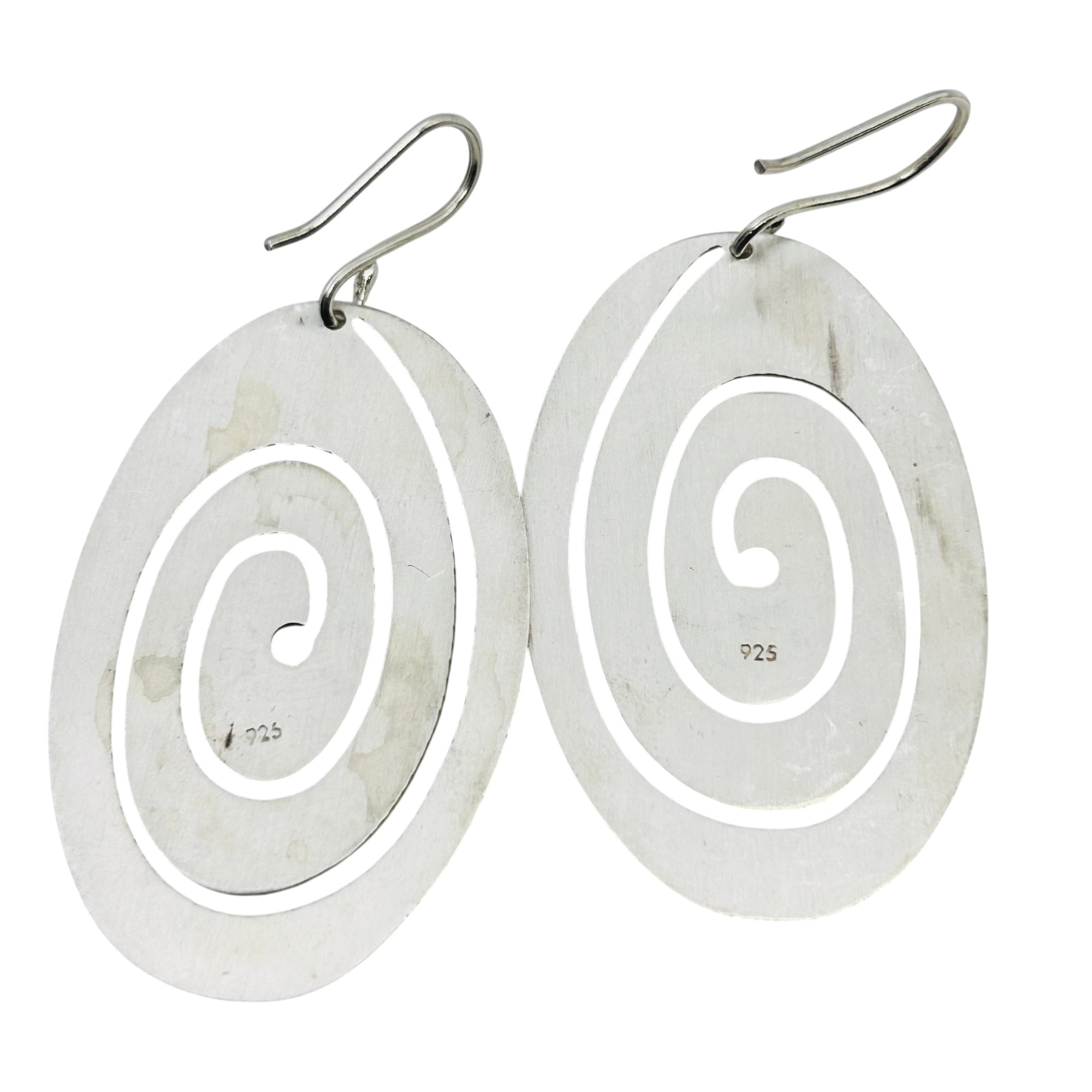 Sterling swirl round hook dangle hand etched earrings 20.18 g