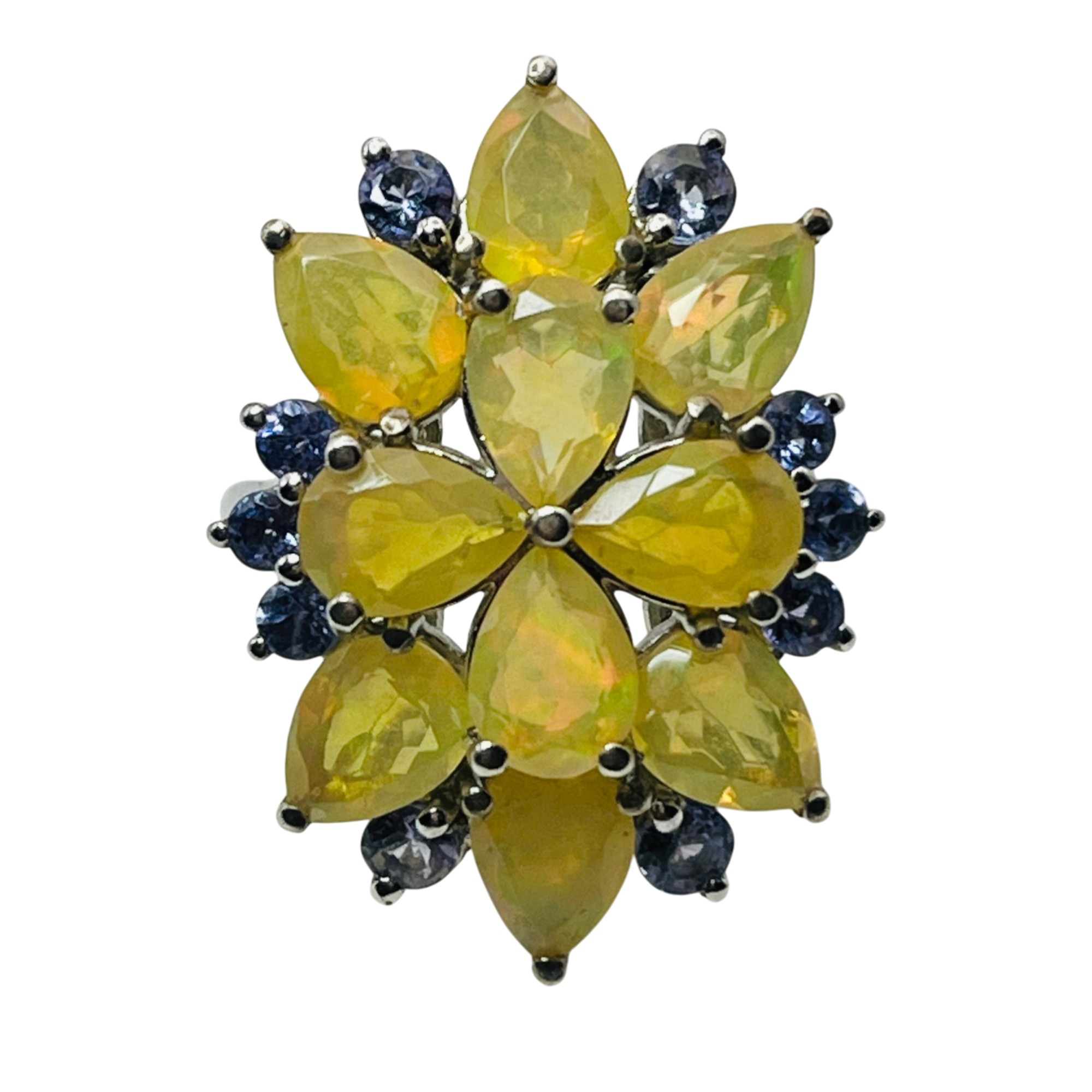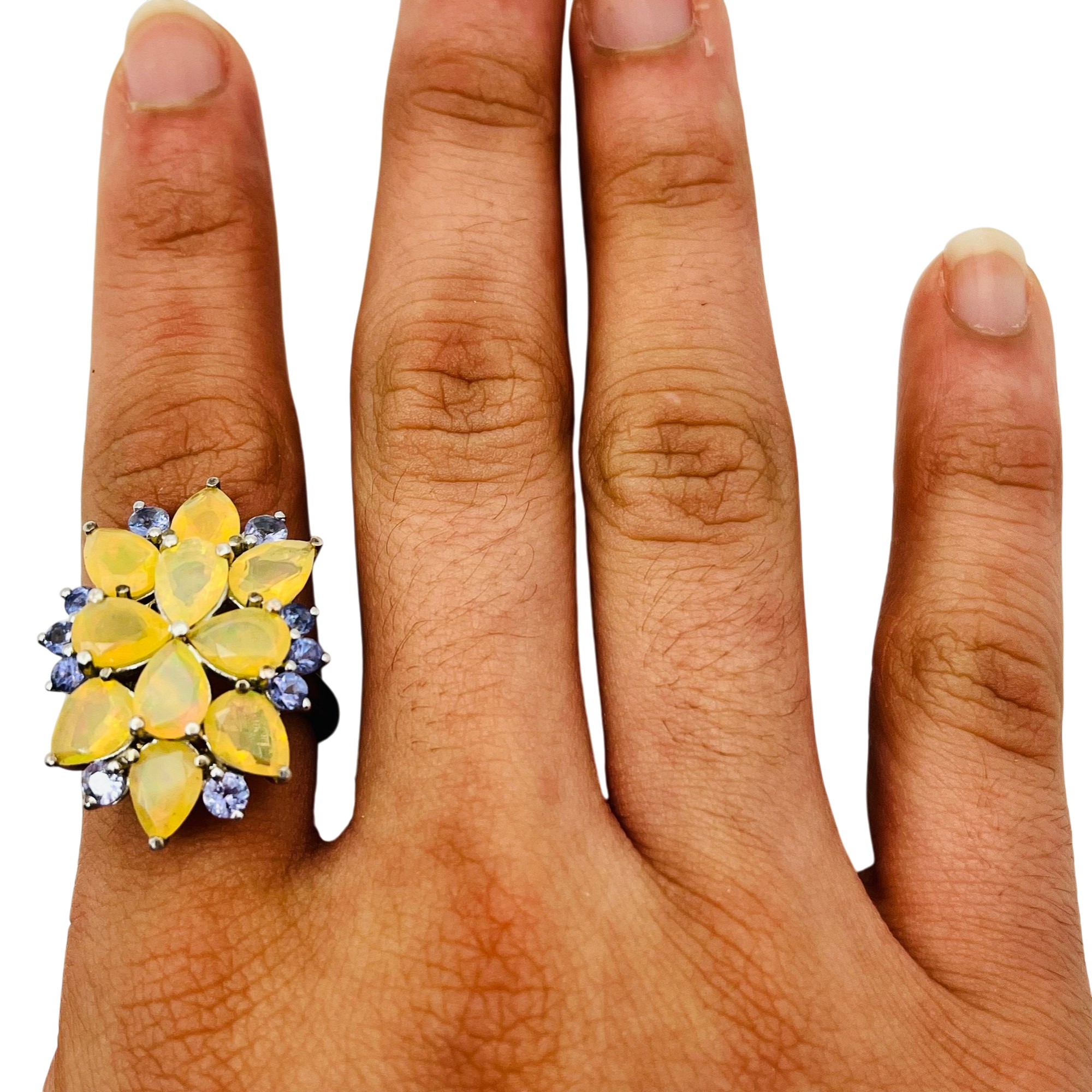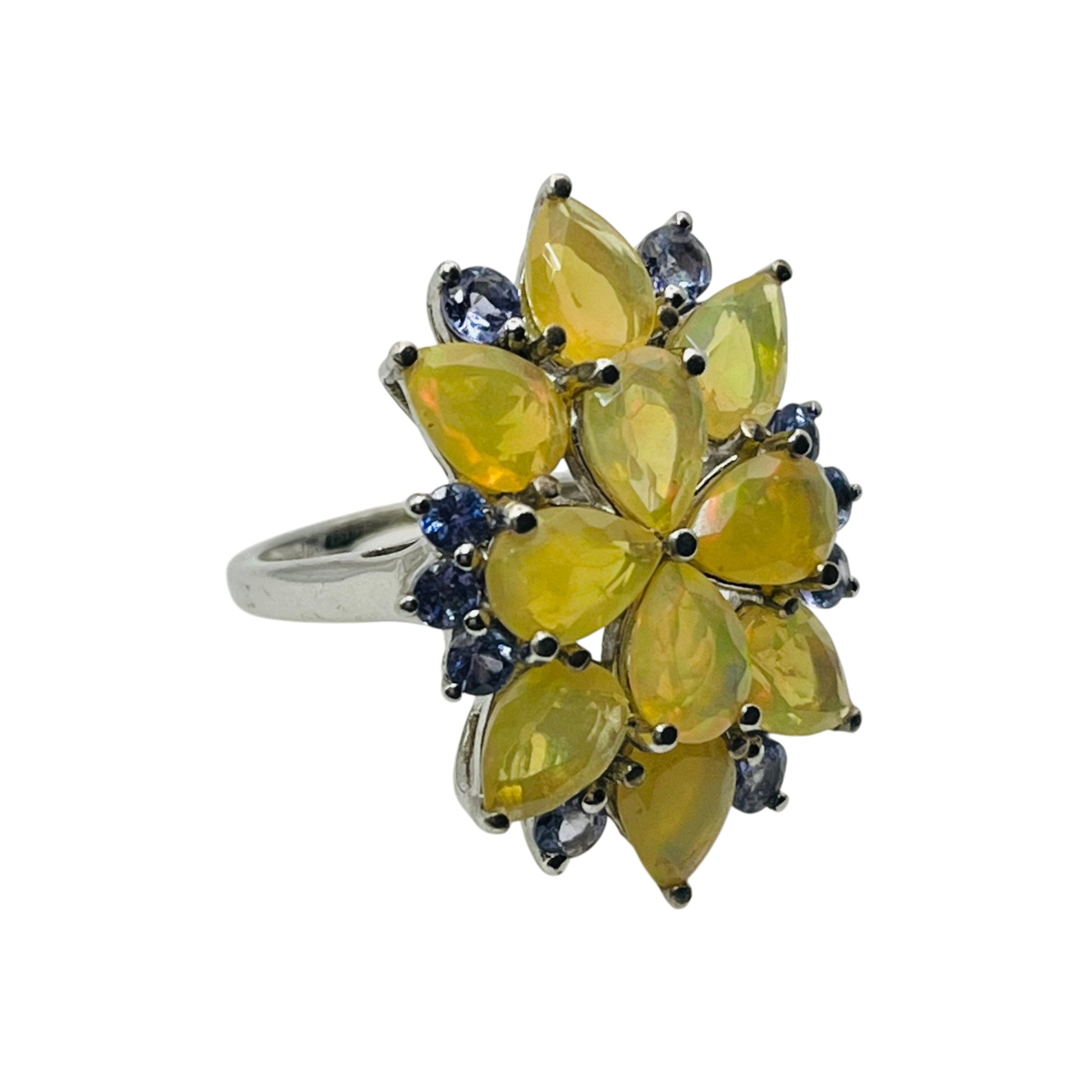 BBJ Sterling fire opal cluster flower ring size 7 5.8 g