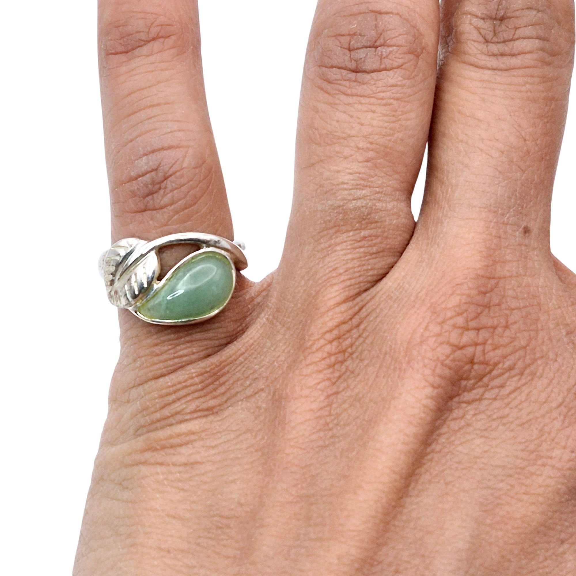 RJ Sterling aquamarine Leaf detail band ring size 5 3.0 G
