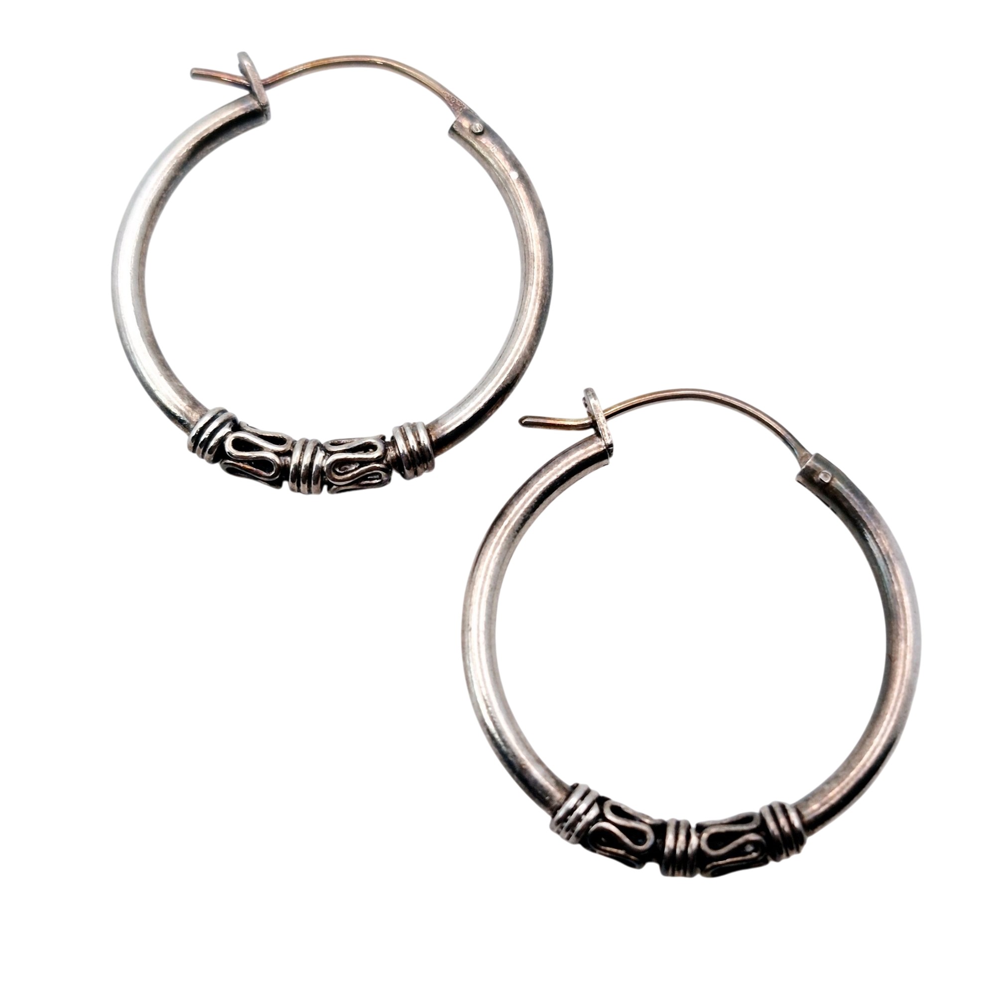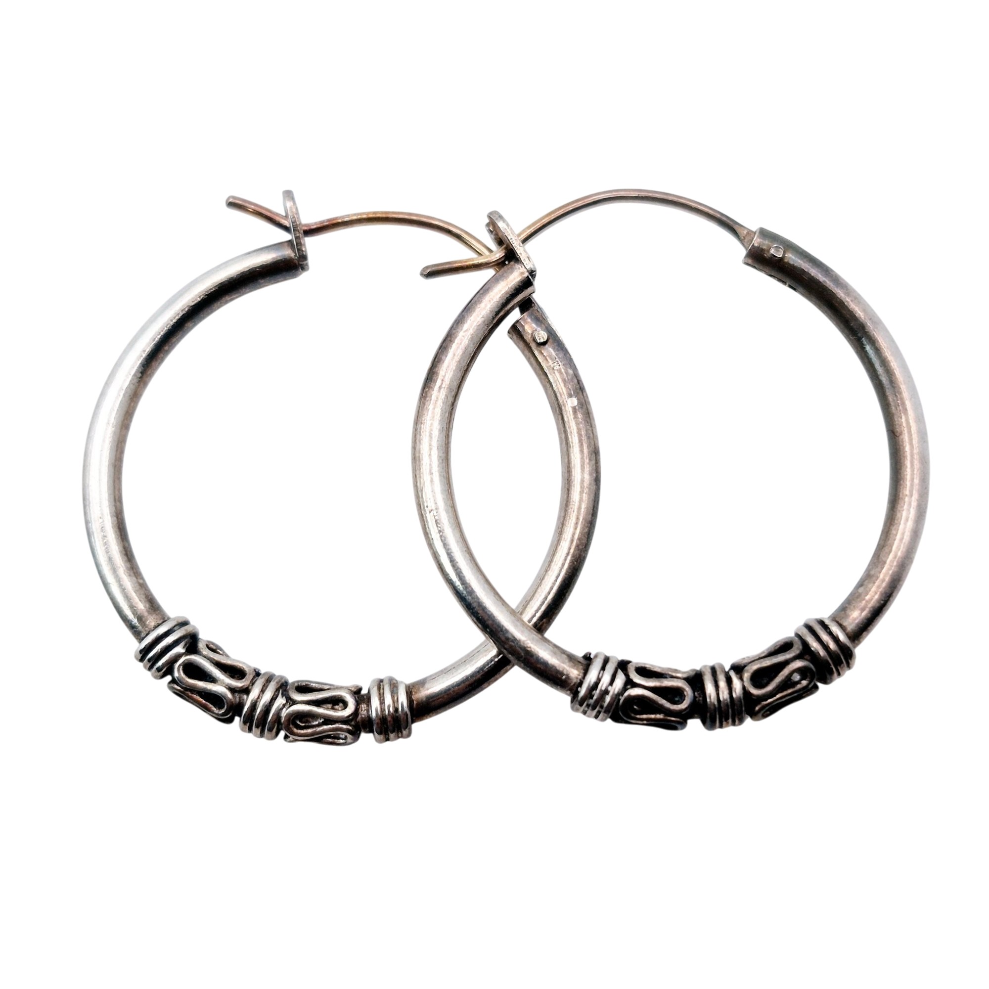 Sterling Bali style hoop earrings 3.1 G