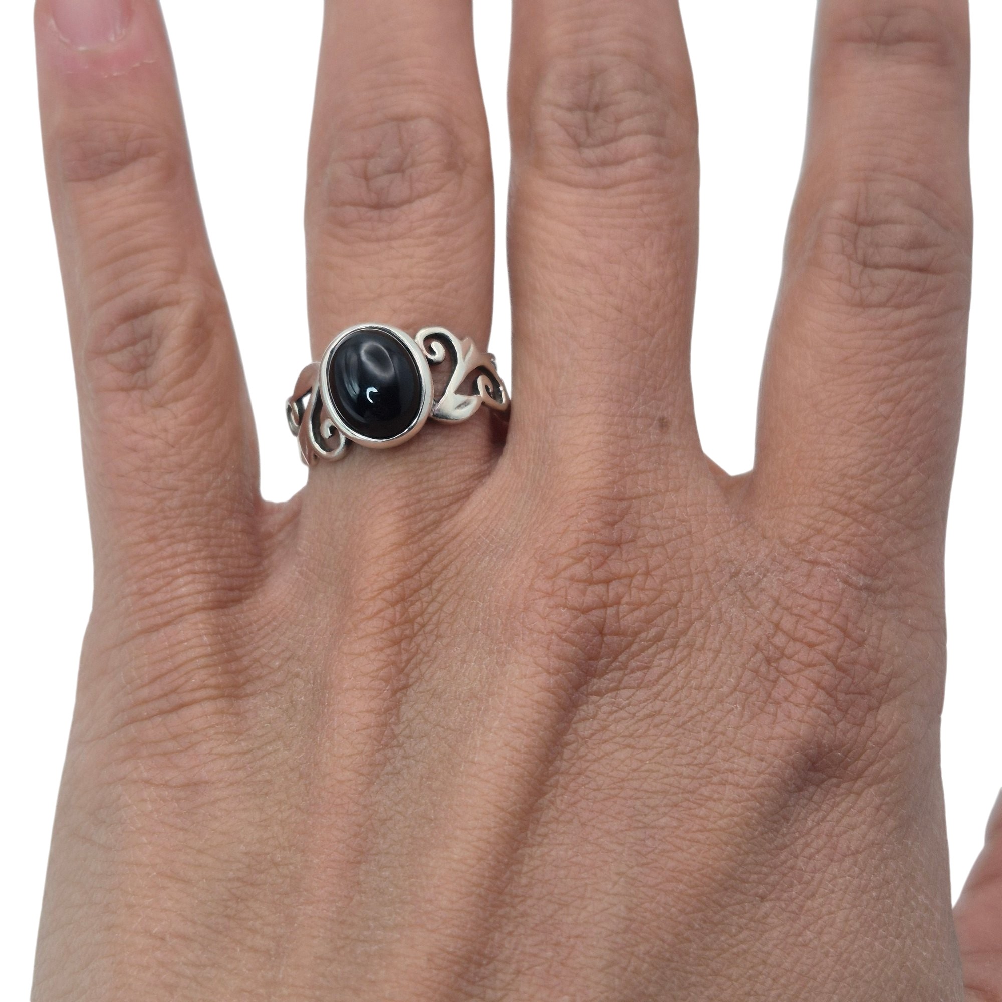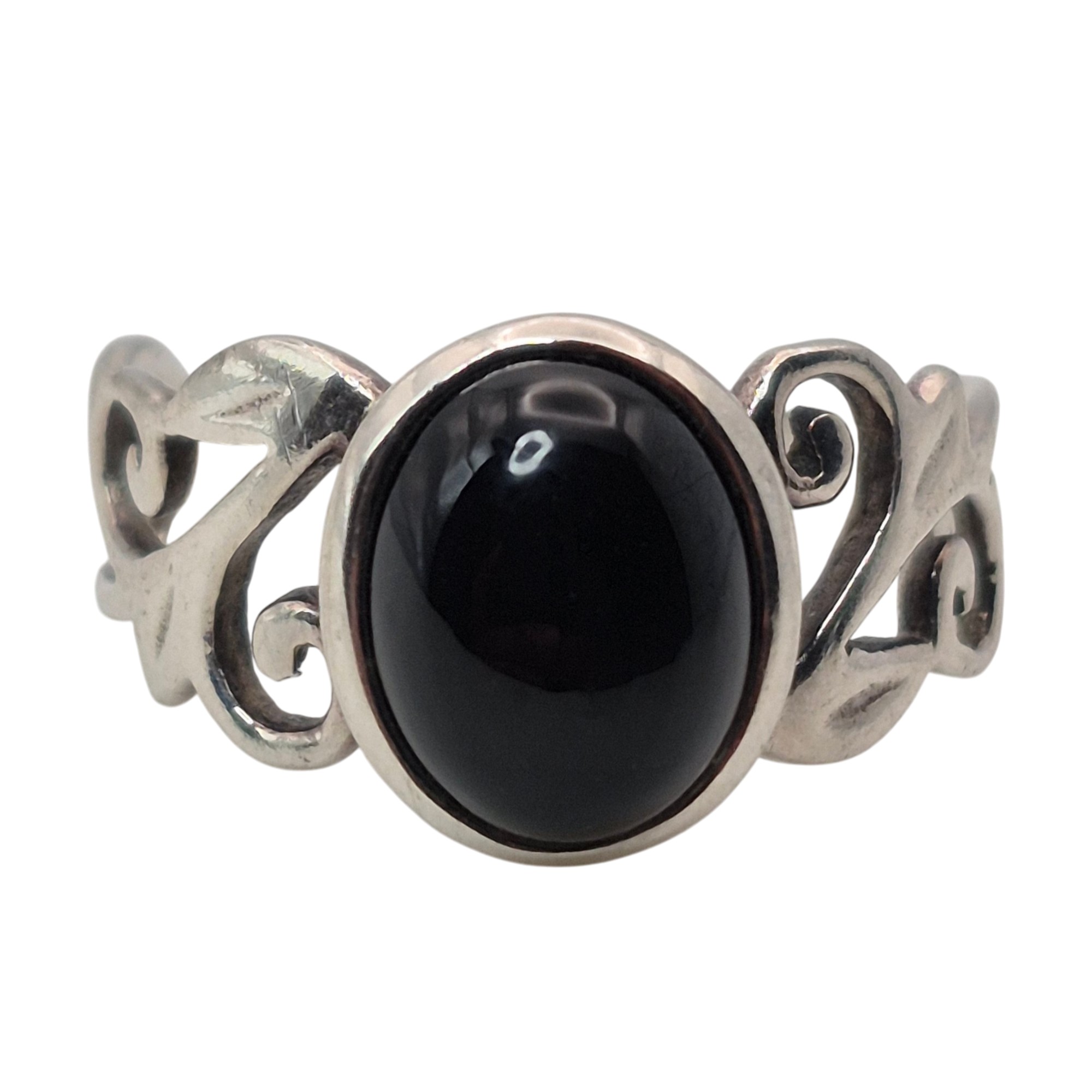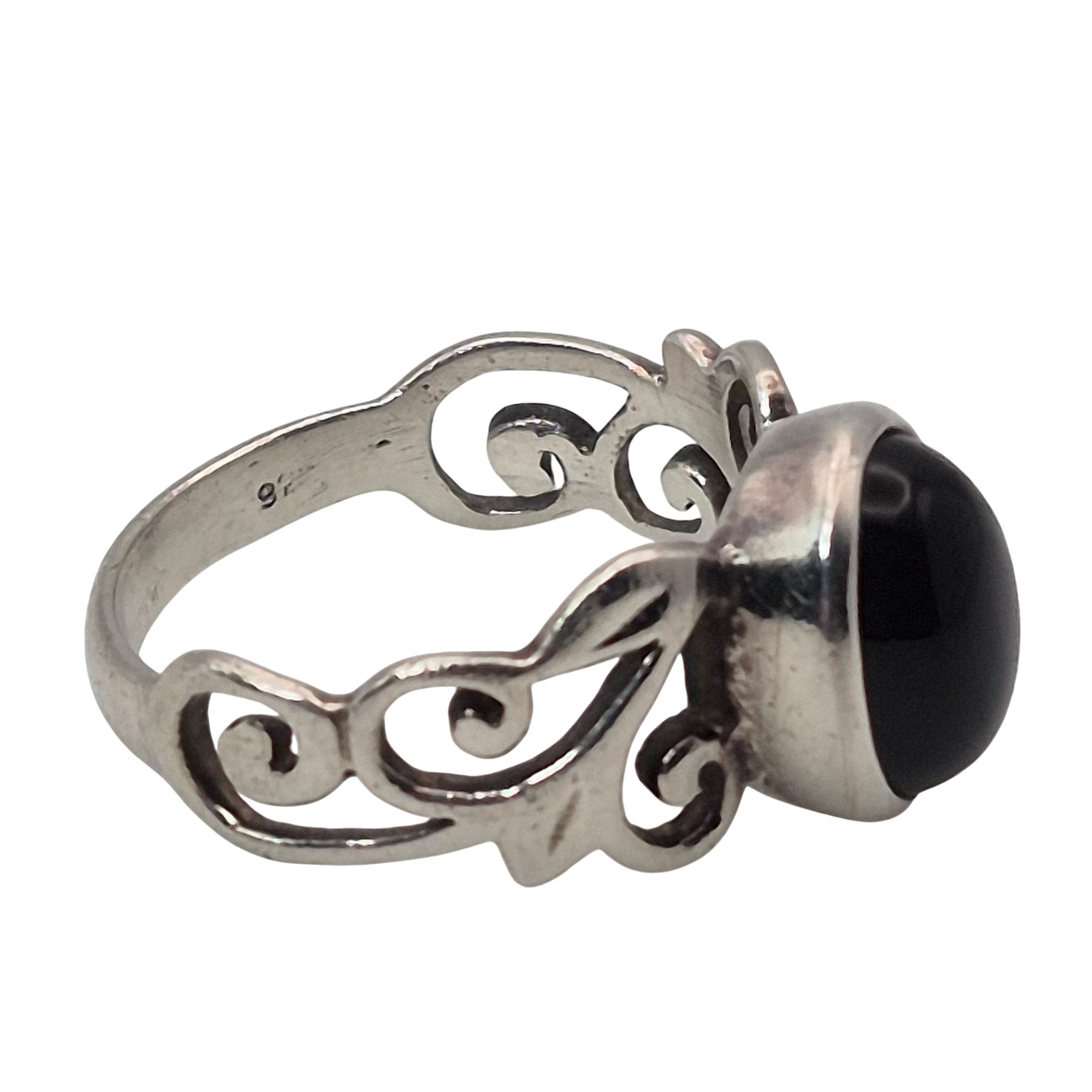 Sterling Onyx solitaire ring size 6.5 3.3 G