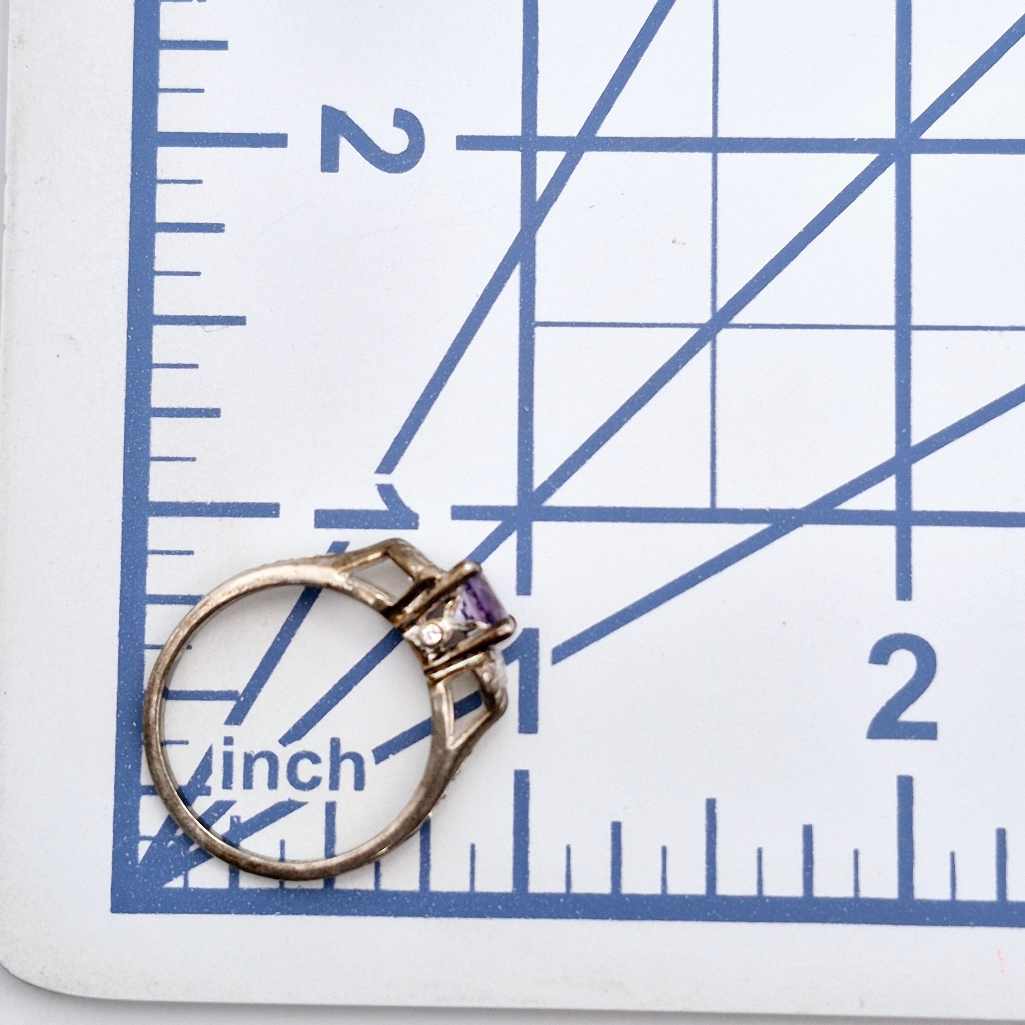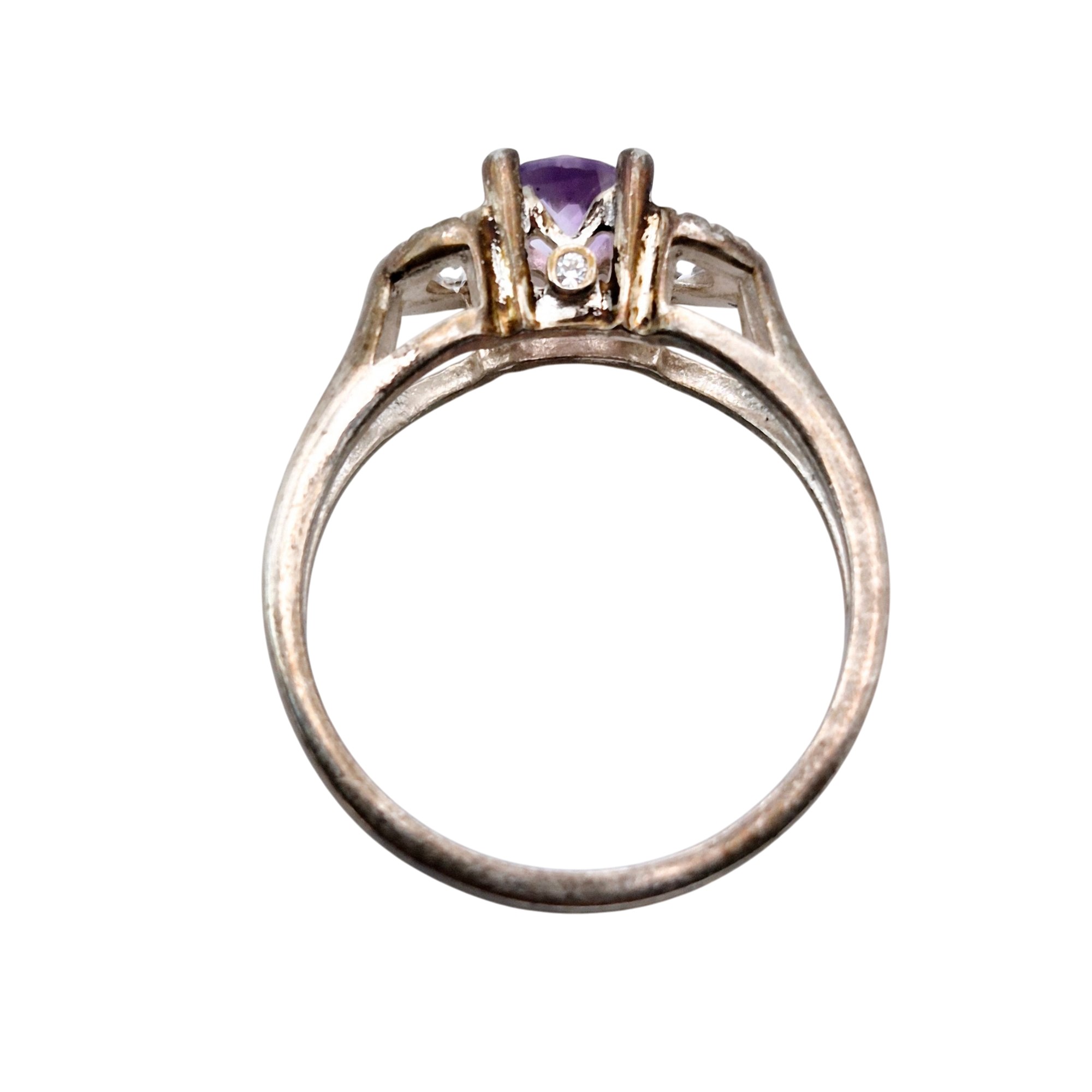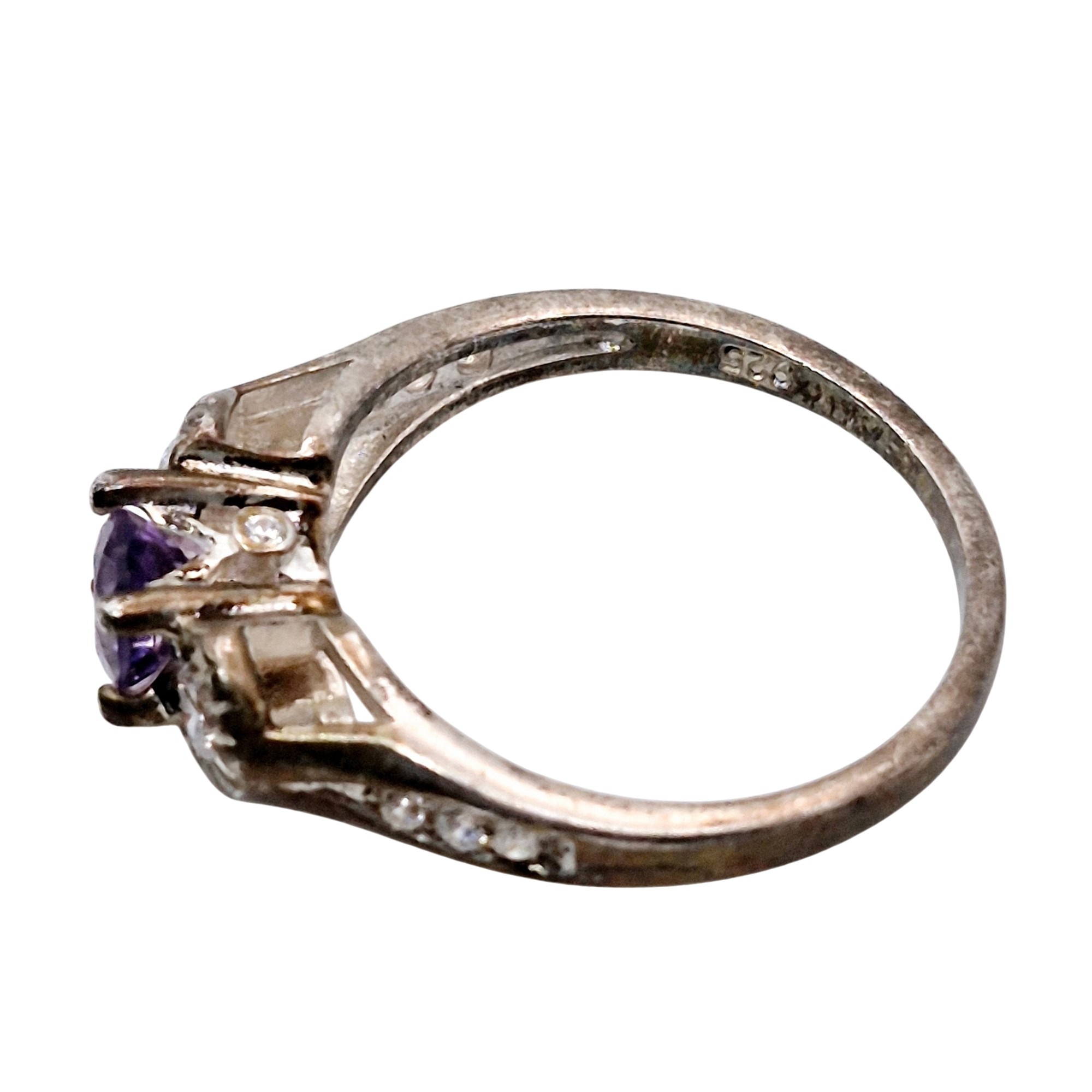 Sterling amethyst clear stone band ring size 8 3.2 G