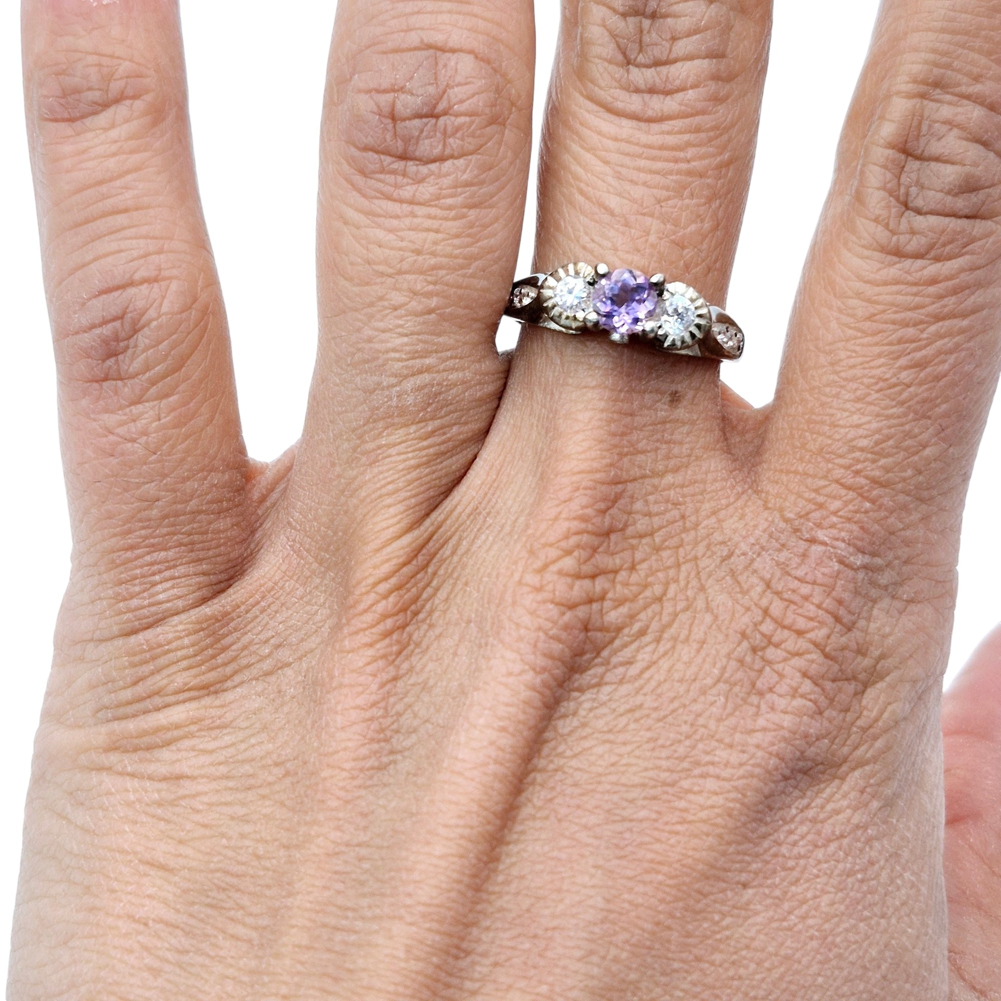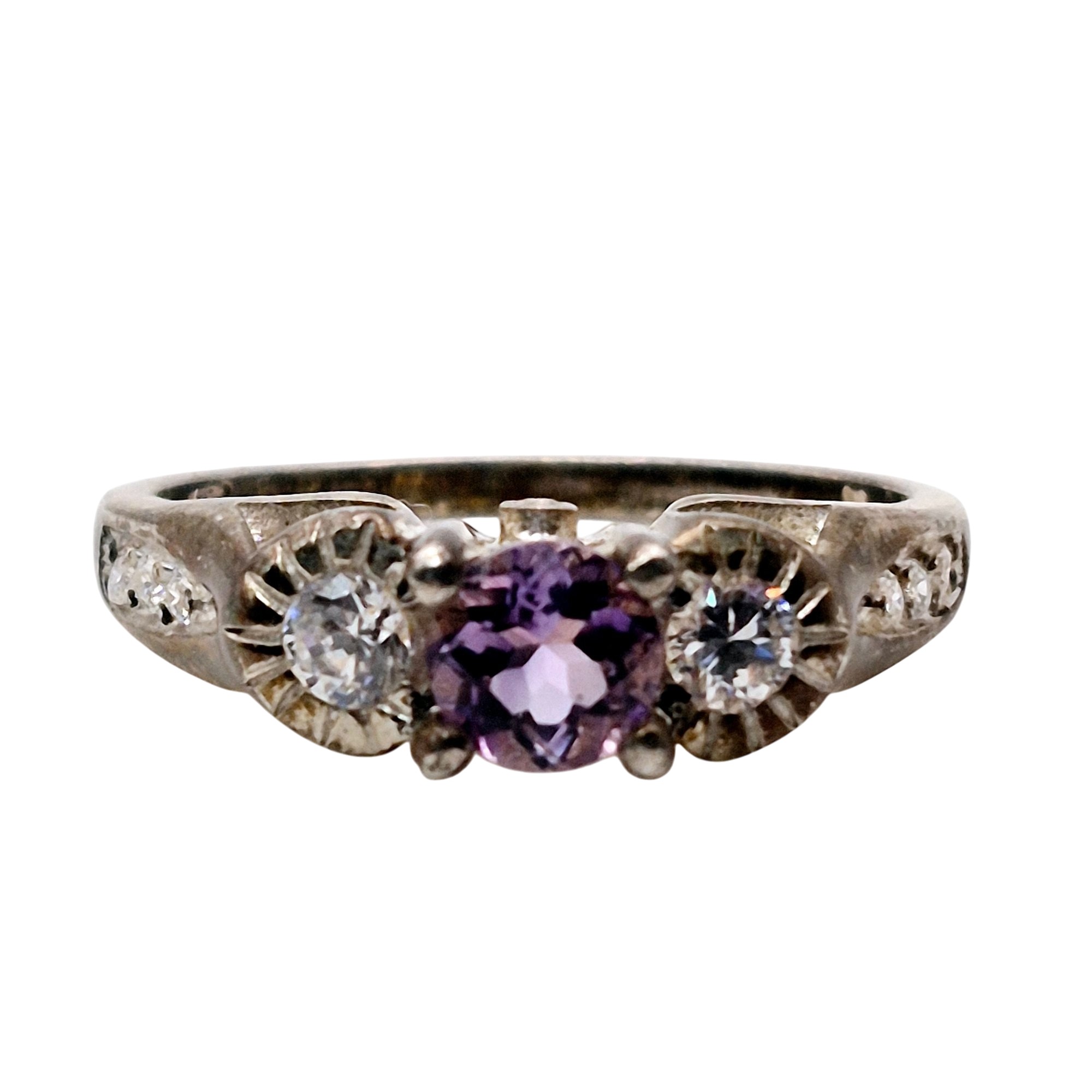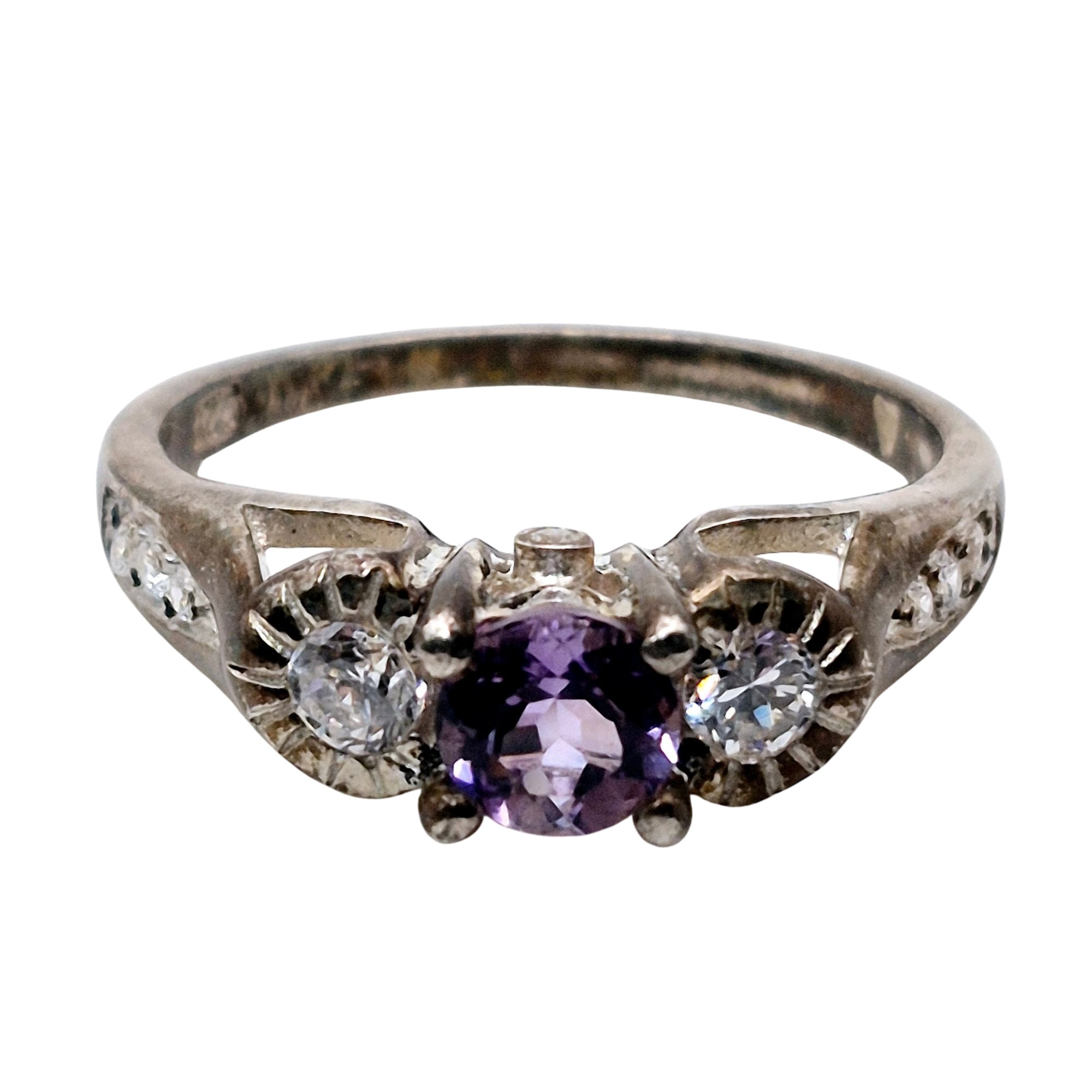 Sterling amethyst clear stone band ring size 8 3.2 G