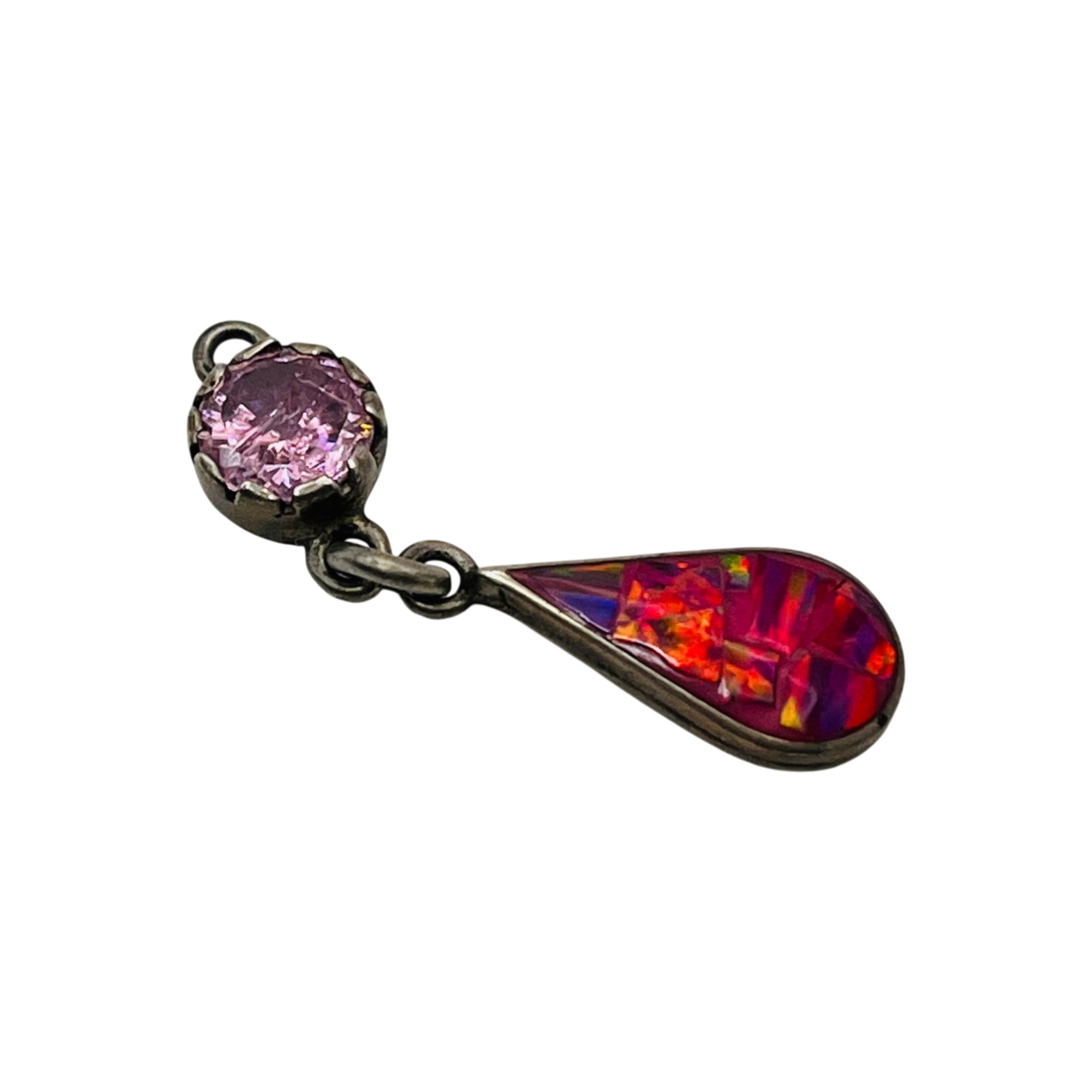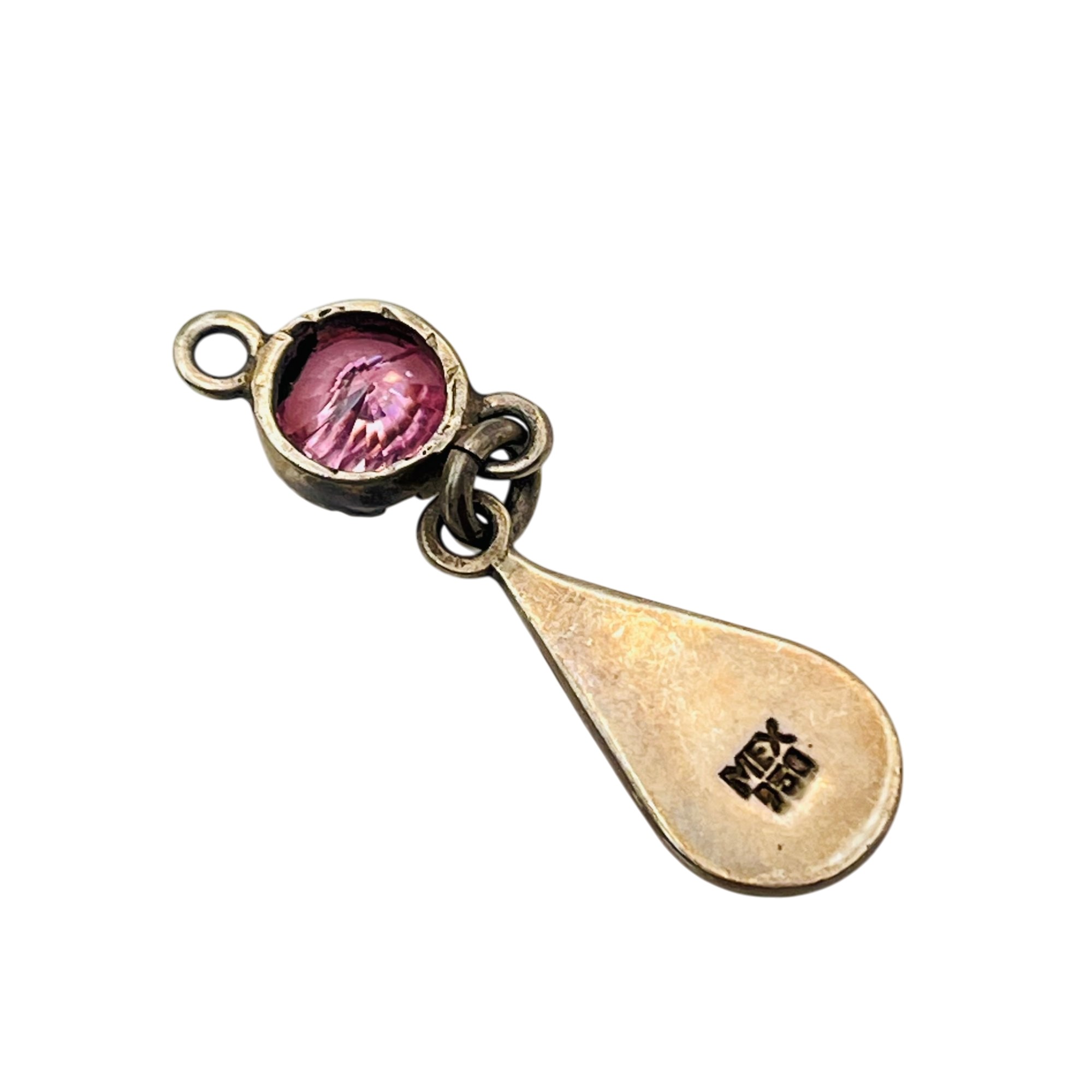 Mexico Sterling pink stone teardrop pendant 2.7 g