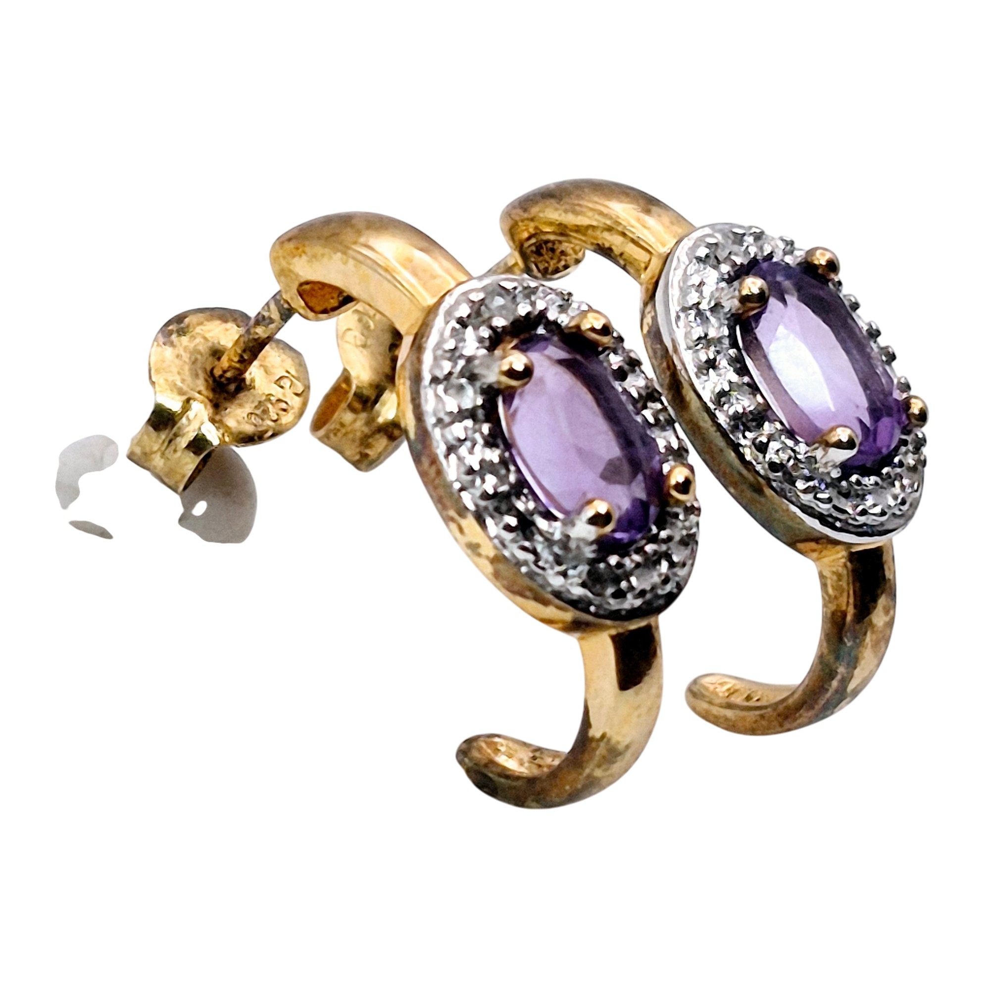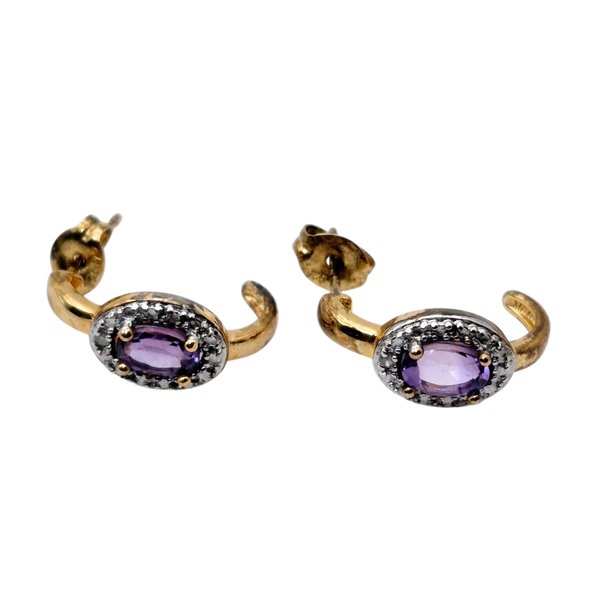 Ross Simons Sterling amethyst Diamond accent stud earrings 2.4 G