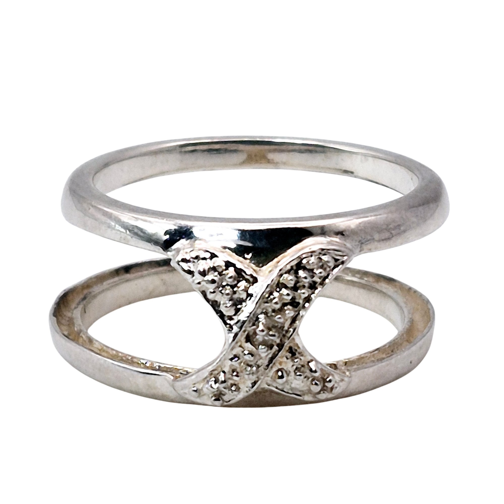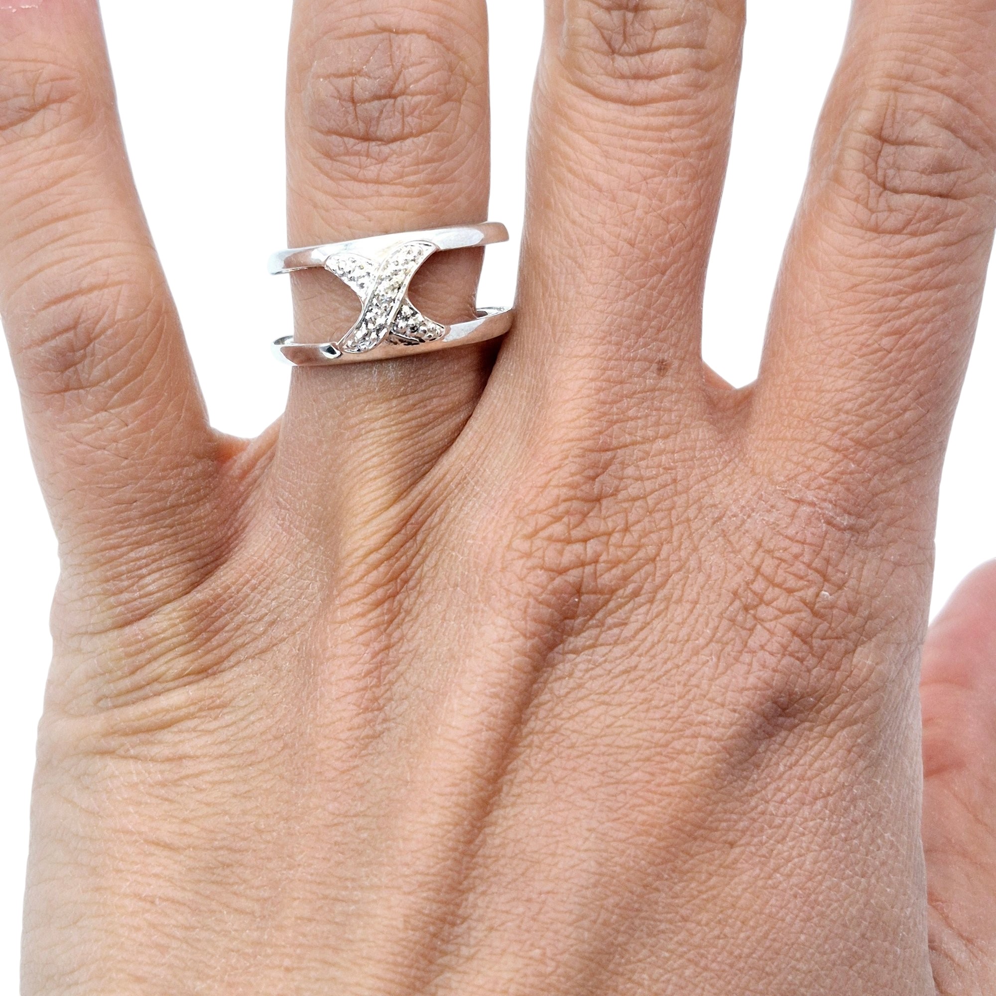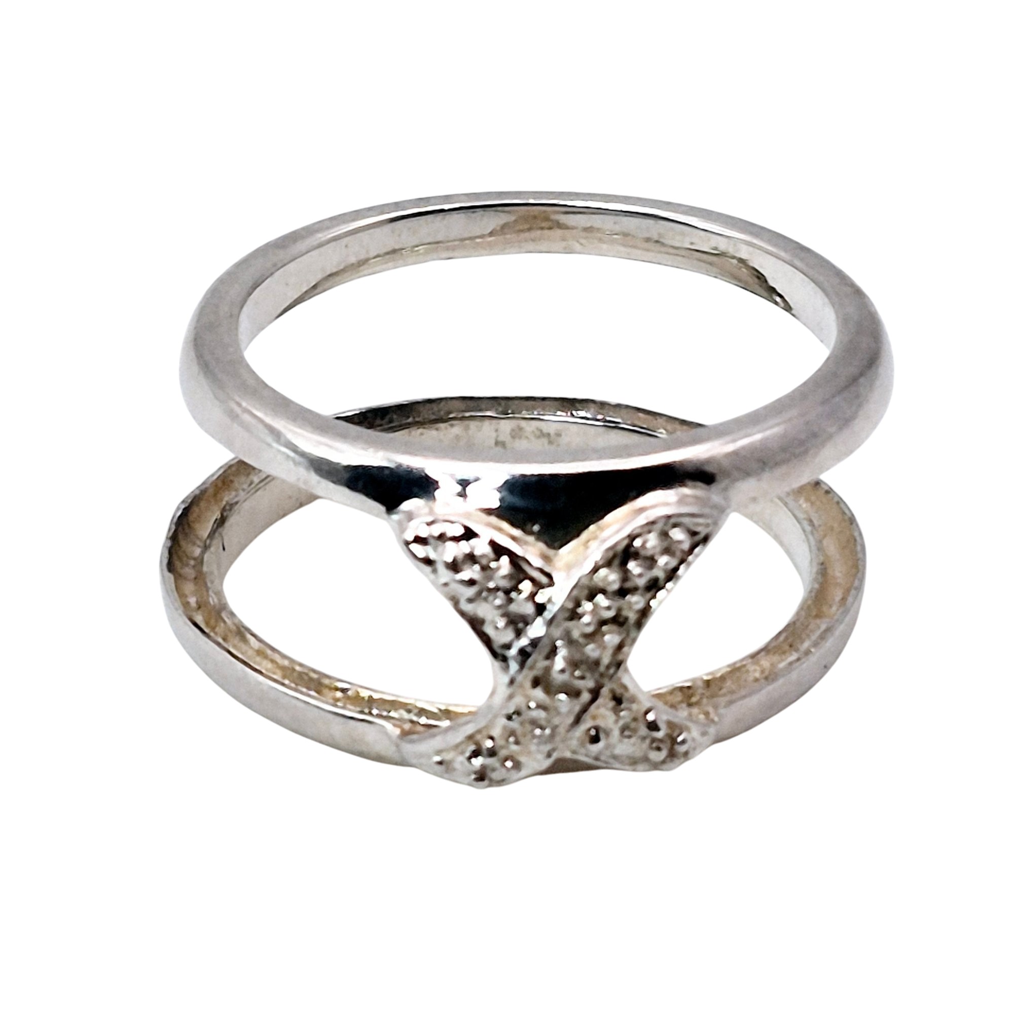 DIL Sterling Diamond X band ring size 7 3.5 G