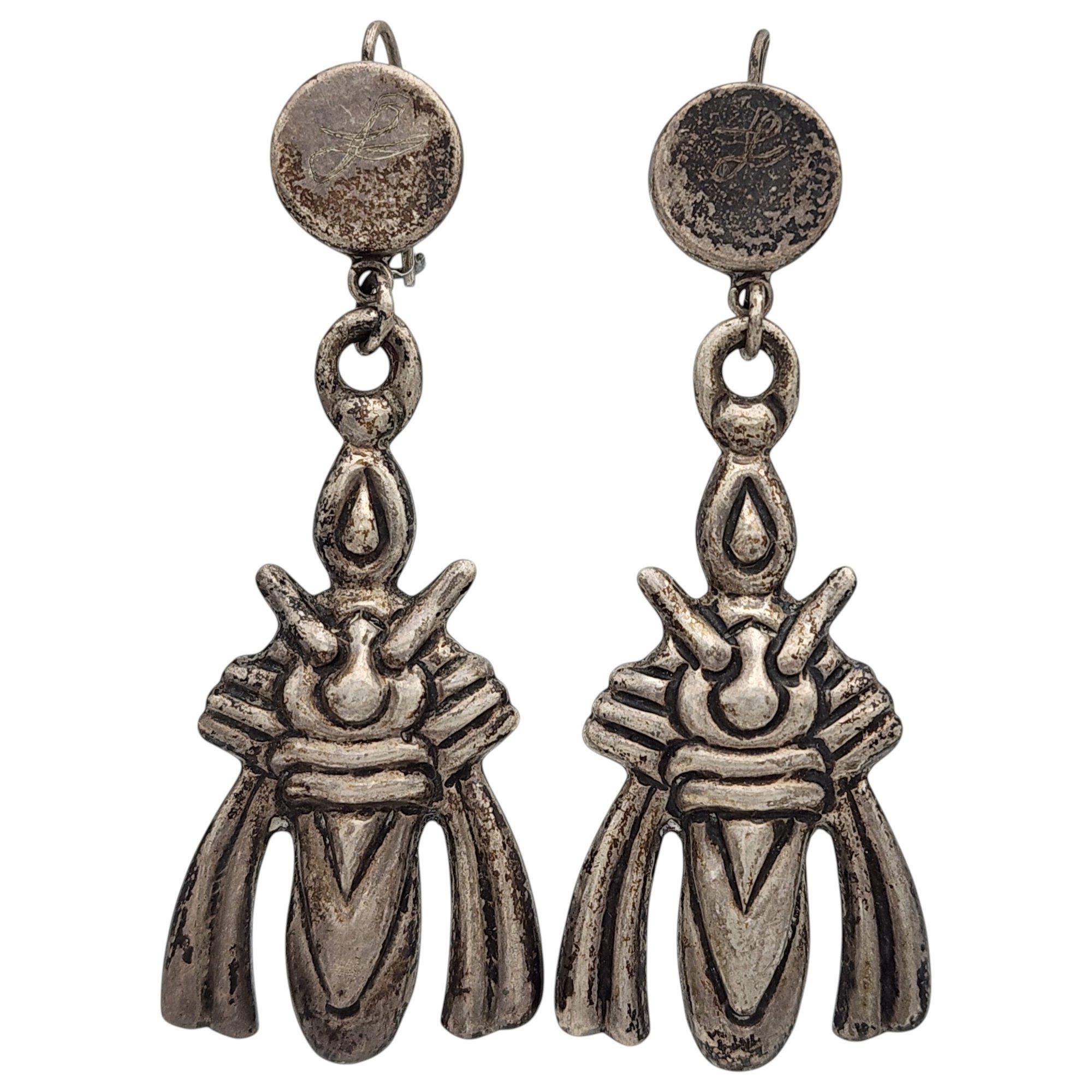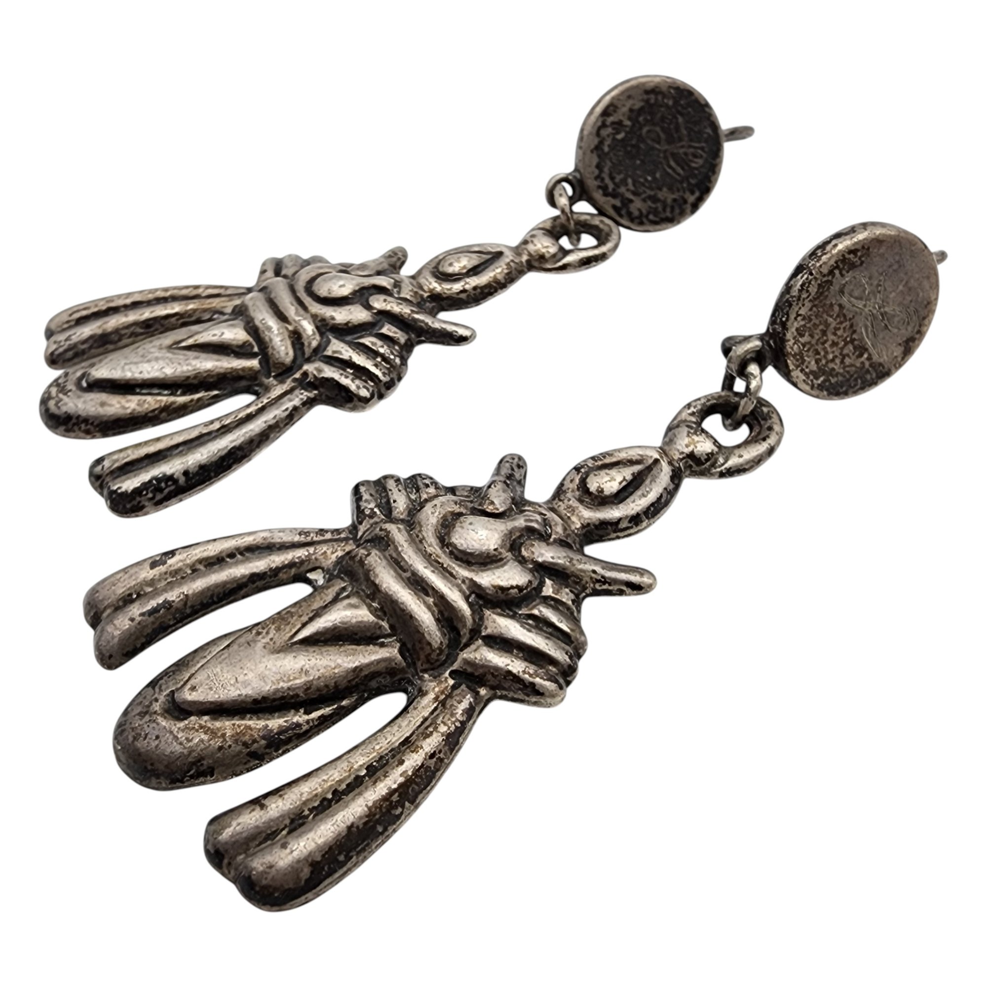 Large Vintage Sterling Smilodon Dangle Earrings 12.3g