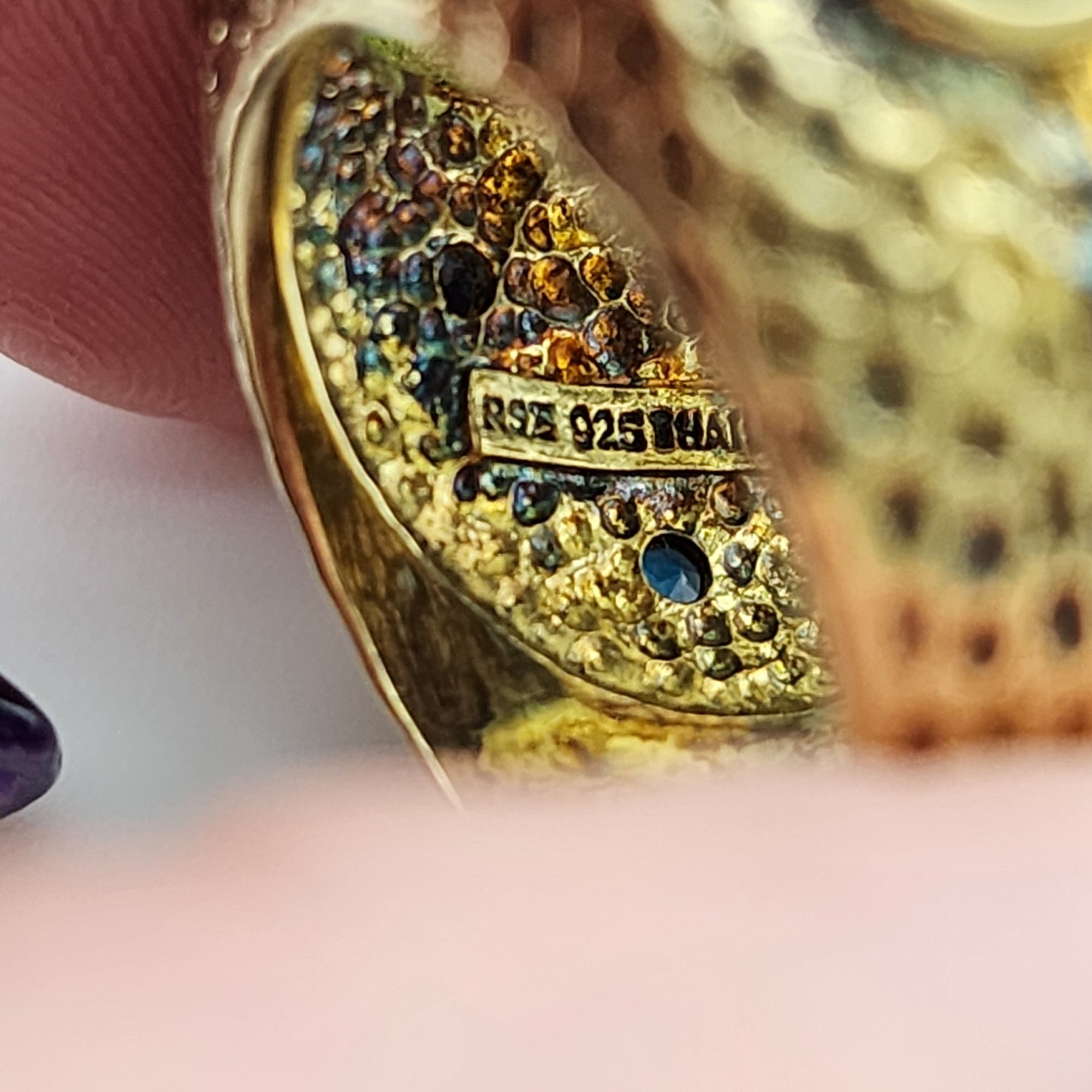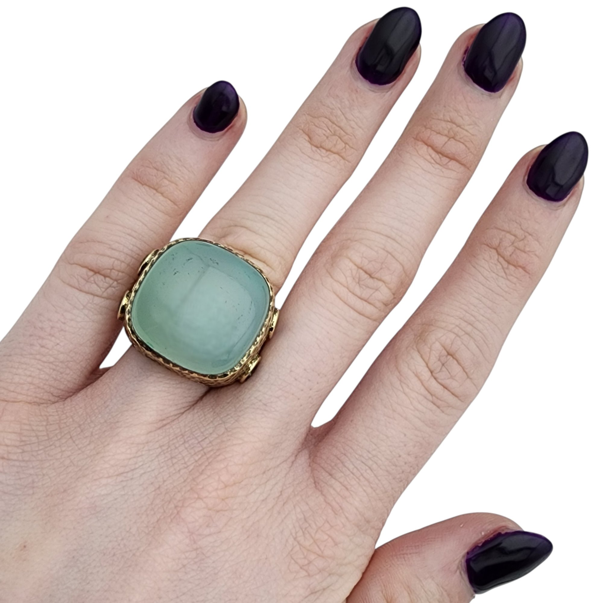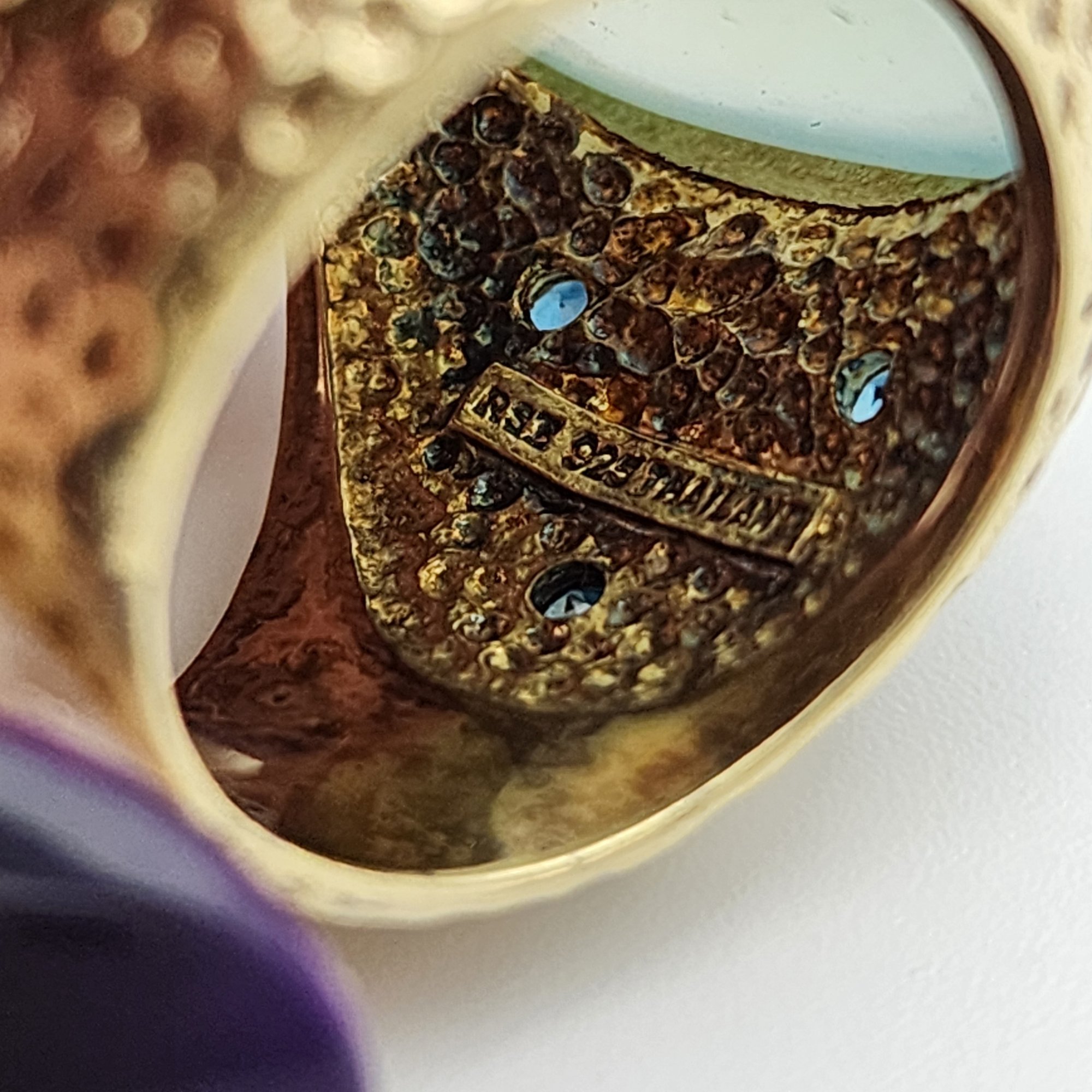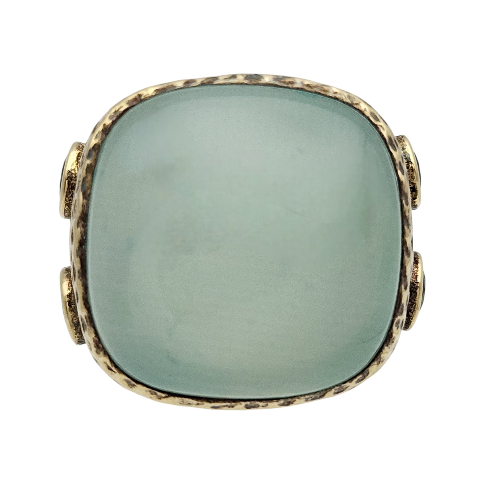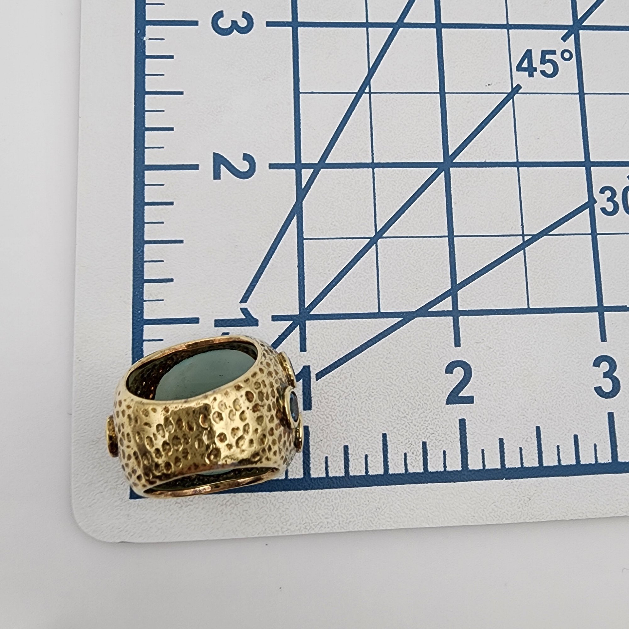 Signed RSZ Gold over Sterling Blue Chalcedony Topaz Ring Sz 6