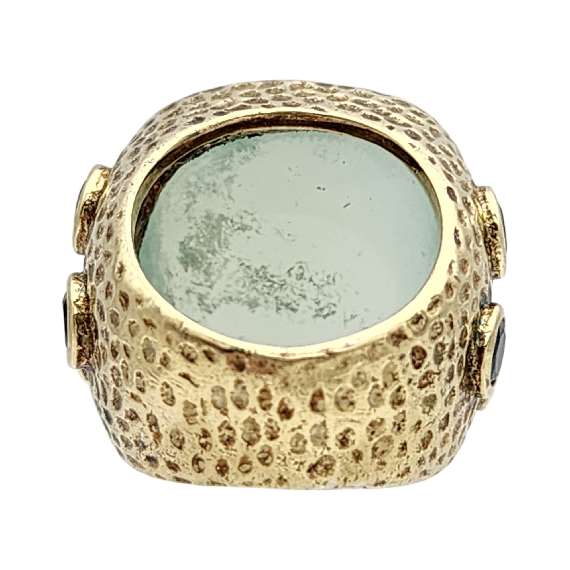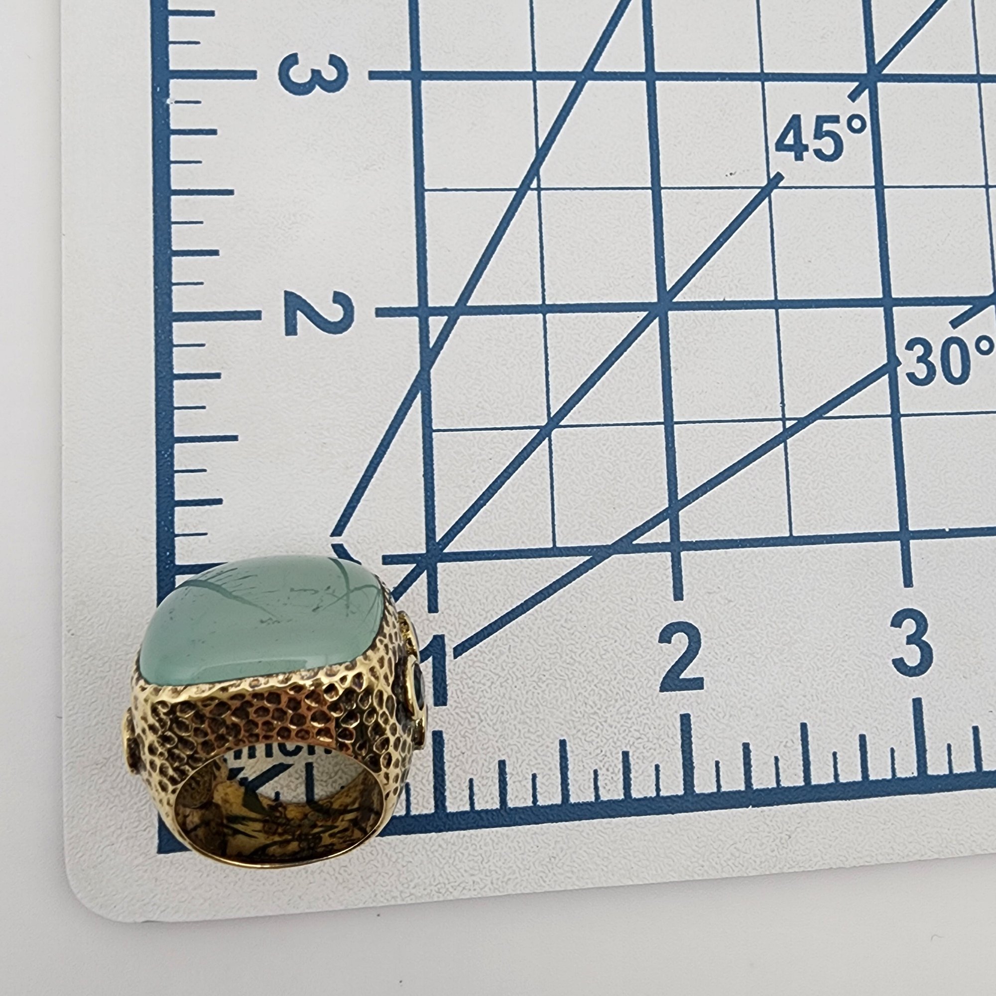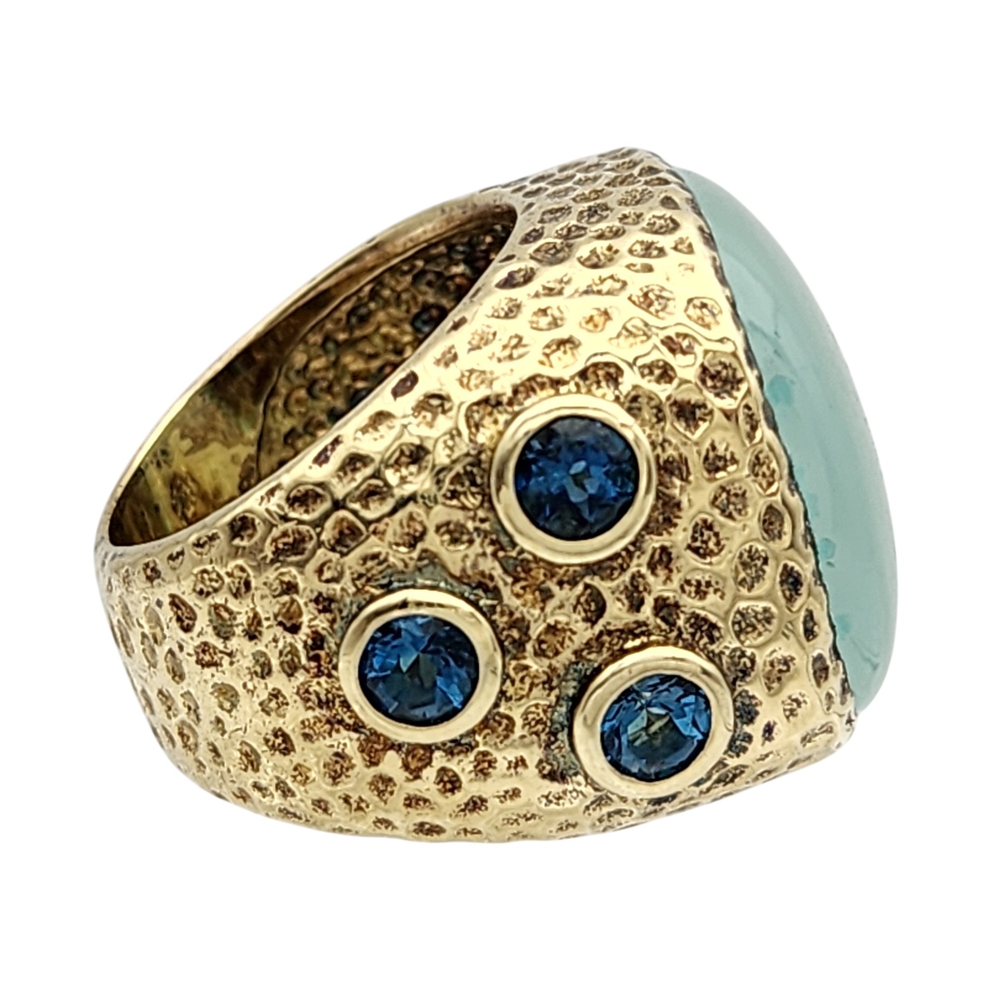 Signed RSZ Gold over Sterling Blue Chalcedony and Topaz Ring Sz 6 21.5g