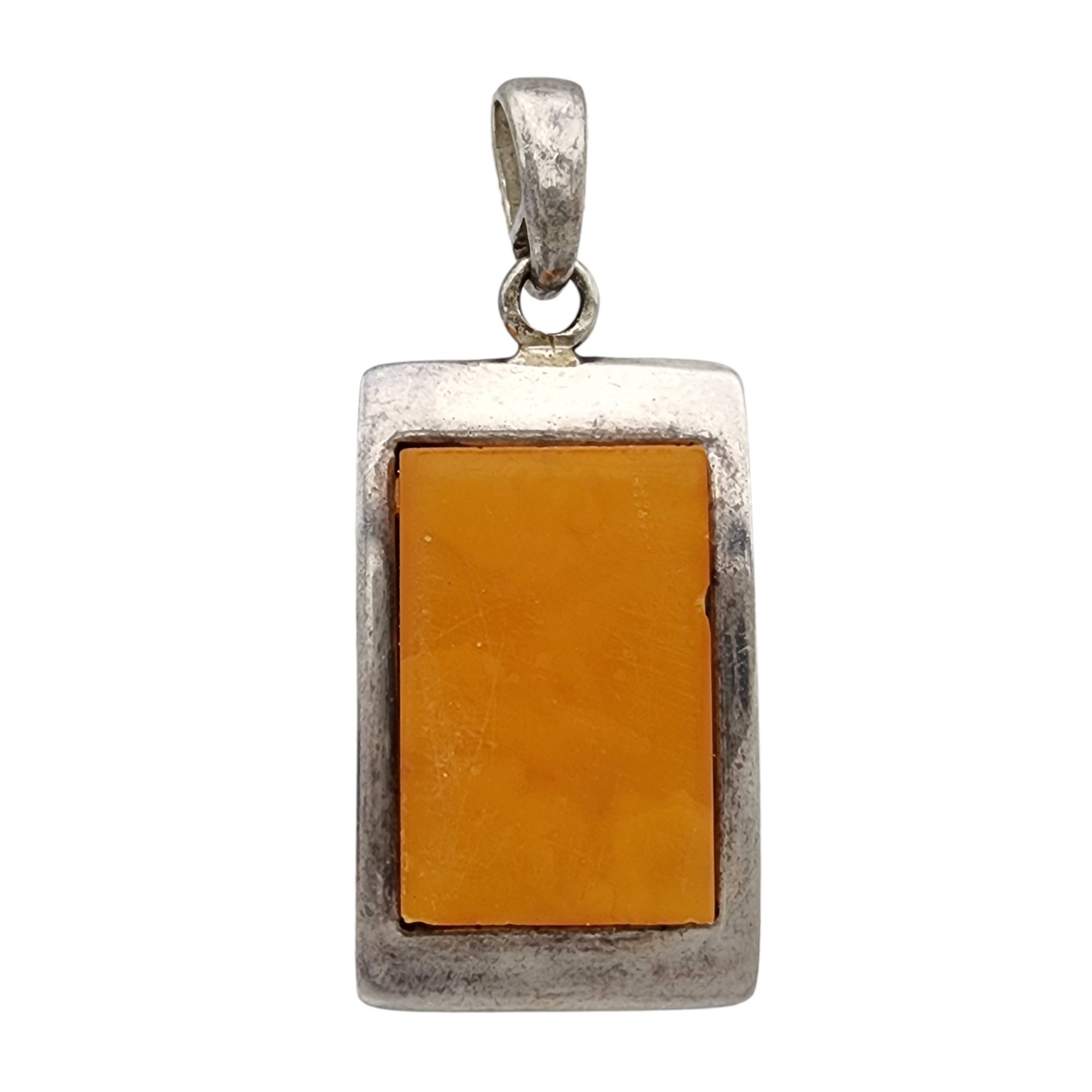 Vintage Poland Sterling Amber Pendant 6.7g