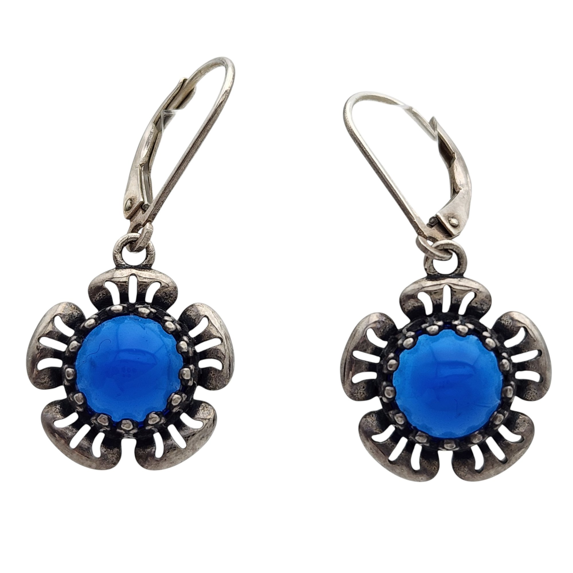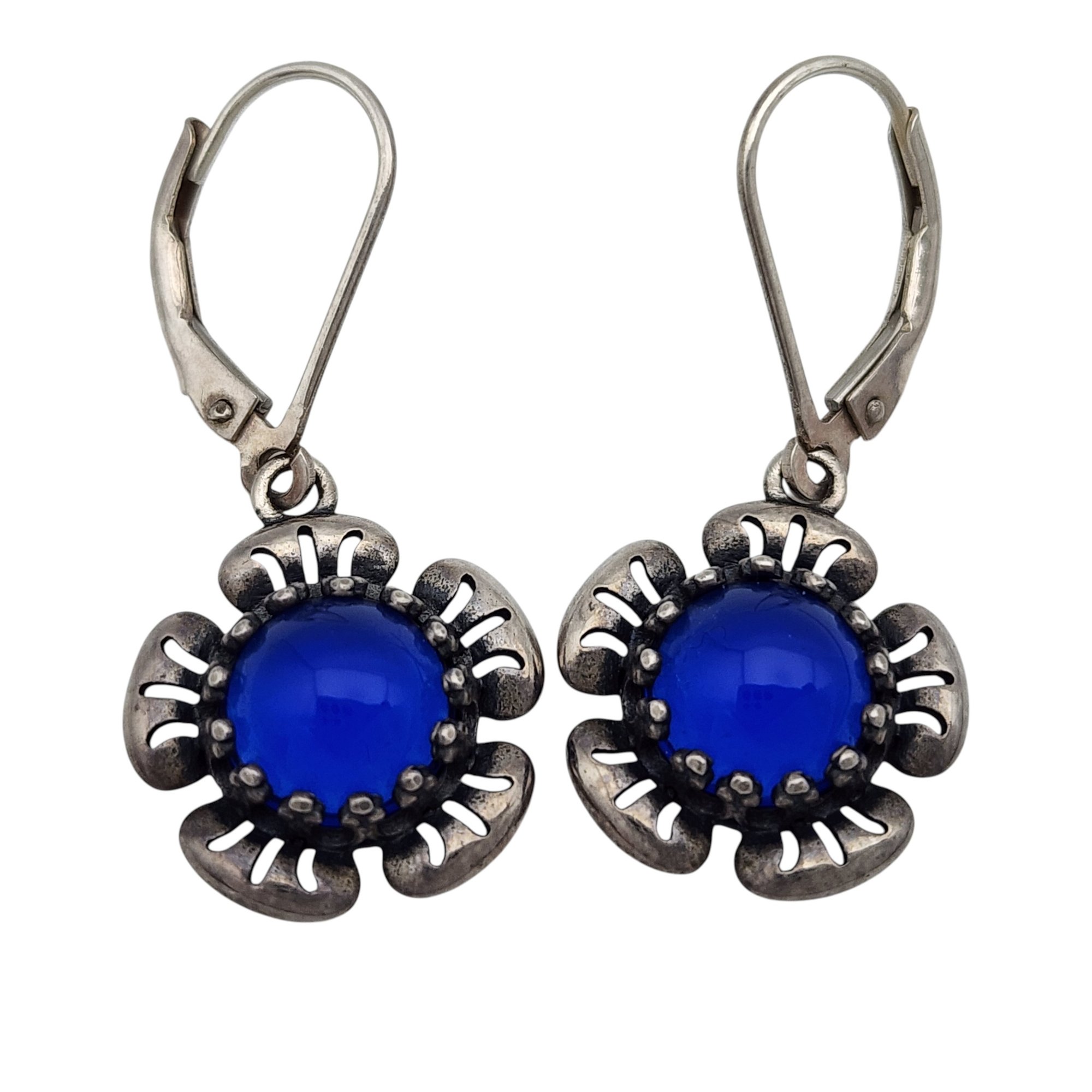 Signed Sterling Cobalt Blue Dangle Earrings 3.4g