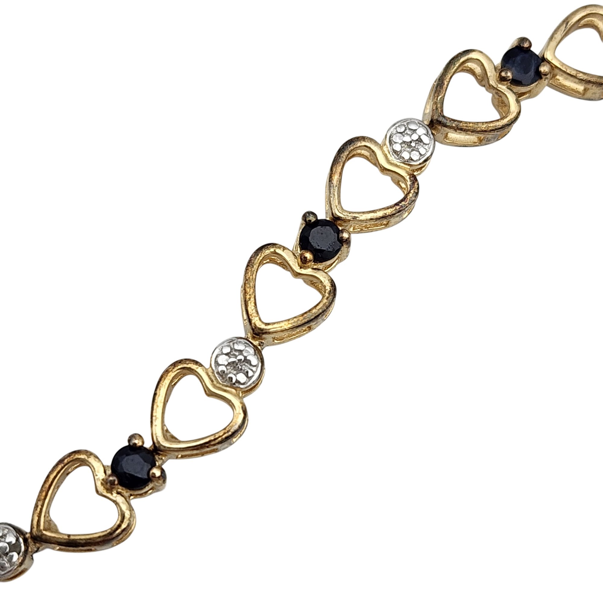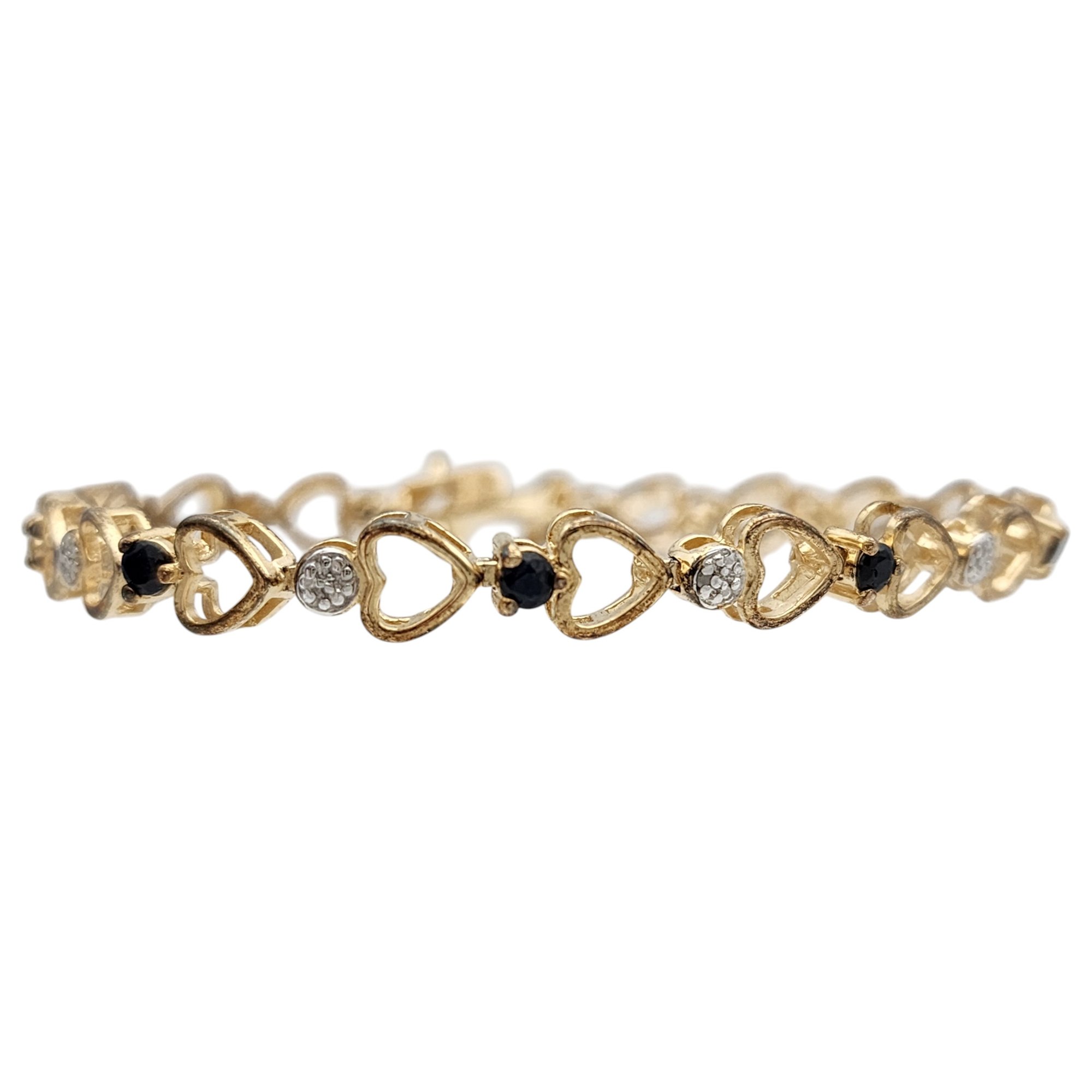 Ross Simons Gold over Sterling Sapphire and Diamond Heart Bracelet