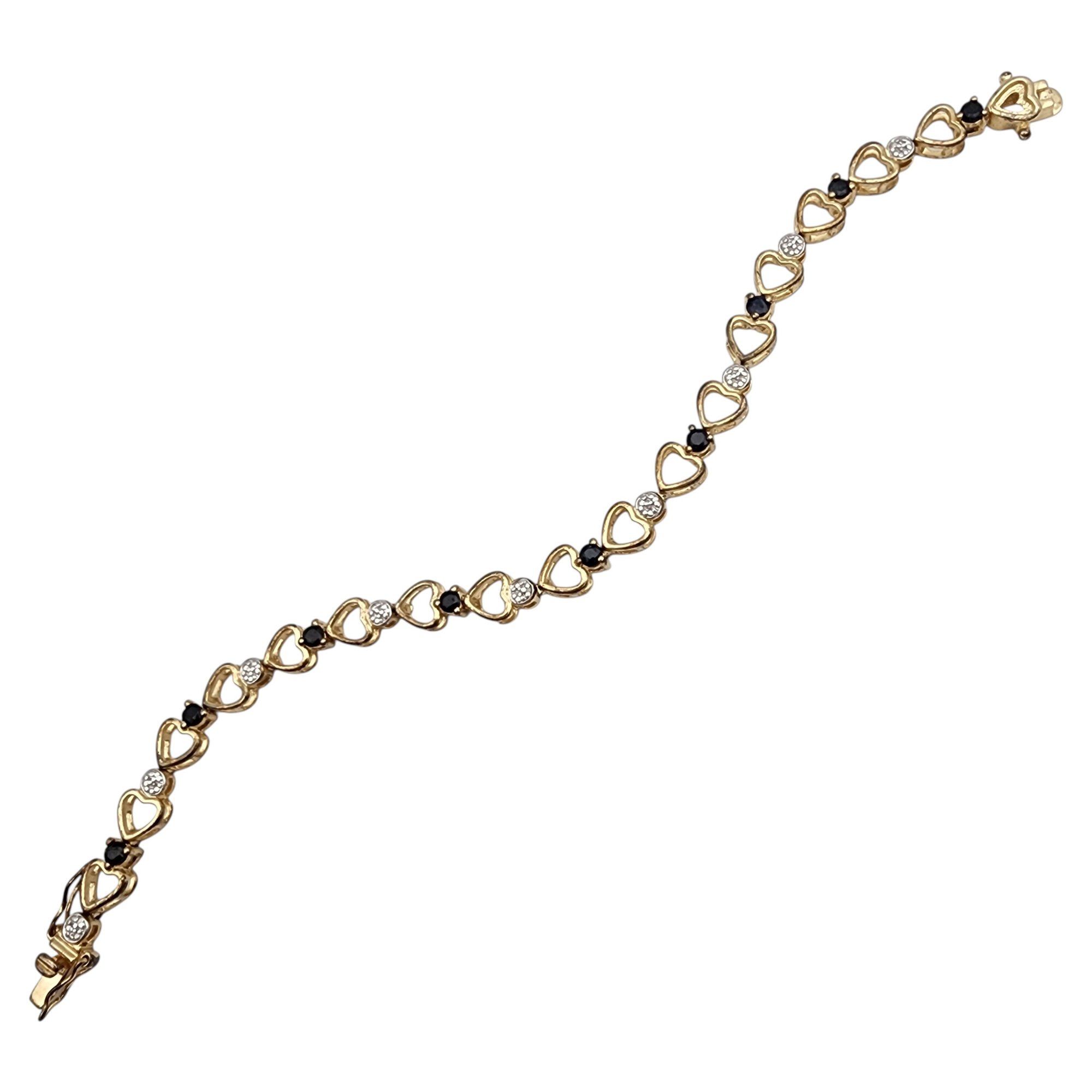 Ross Simons Gold over Sterling Sapphire and Diamond/Moissanite Heart Bracelet 11.3g