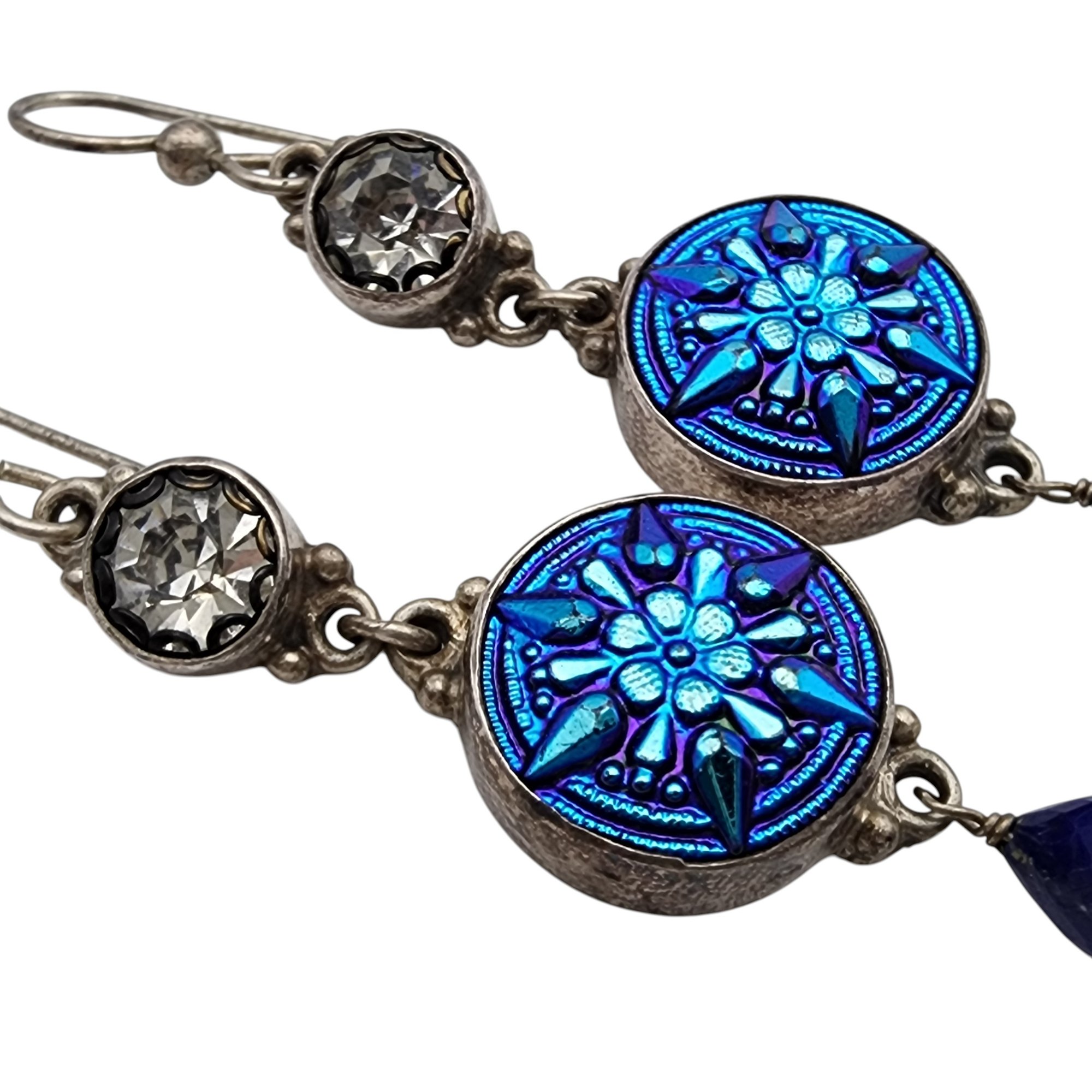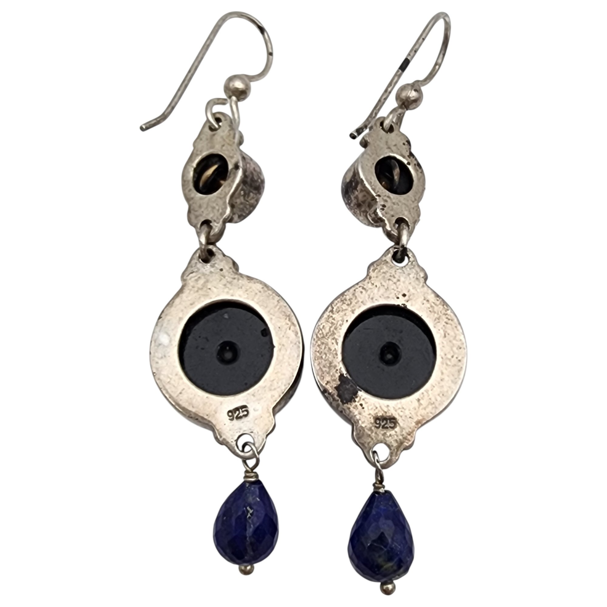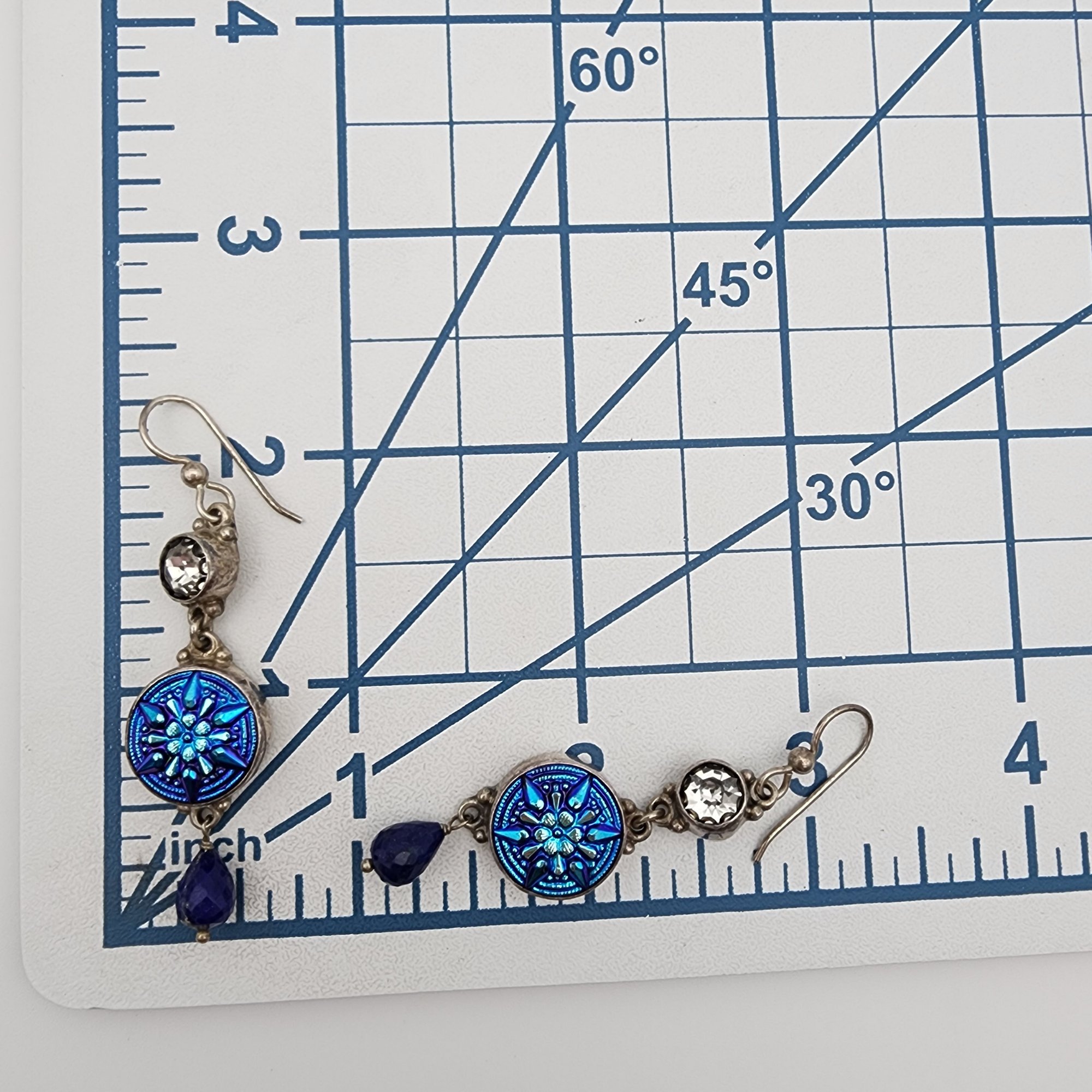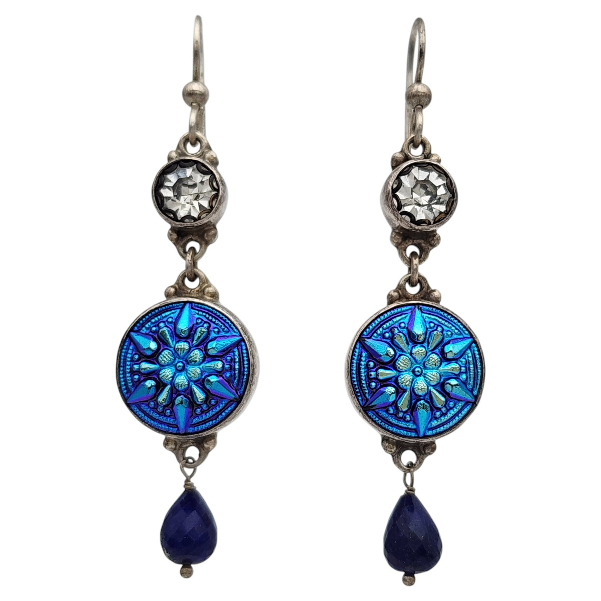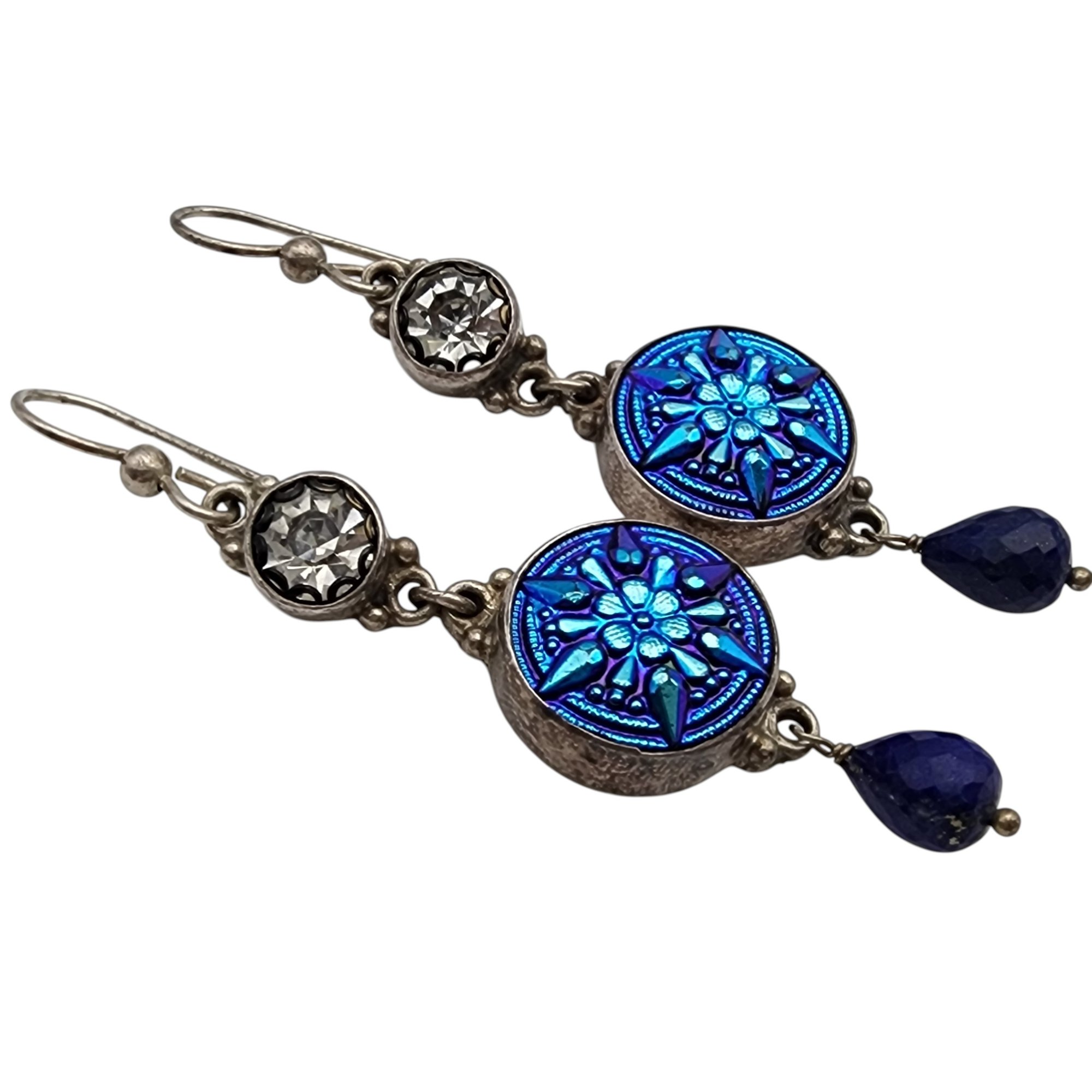 Sterling Czech Glass Lapis Lazuli Dangle Earrings 10.7g