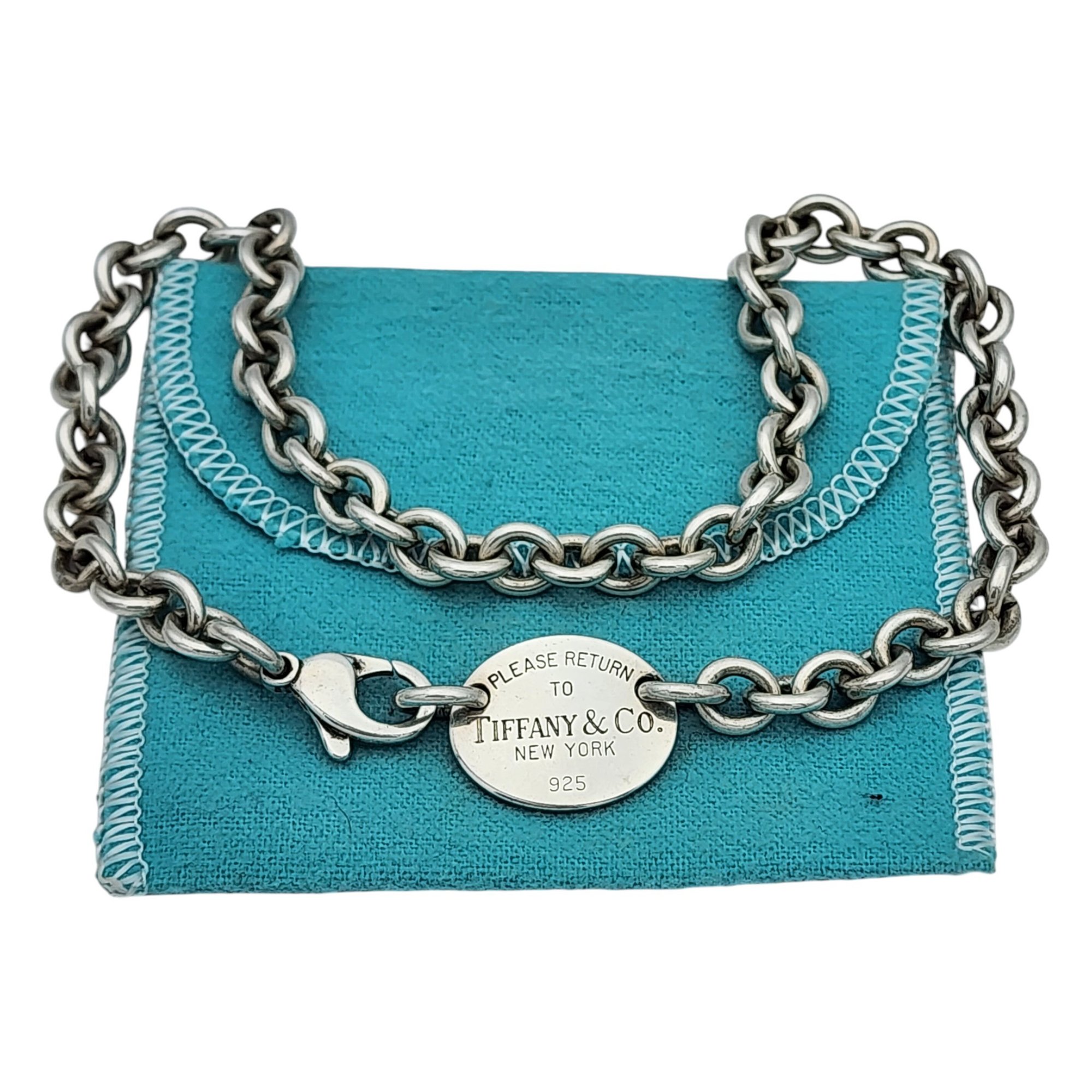 Tiffany & Co. Sterling Return to Tiffany Oval Tag Chain Necklace, 16″ – 53.1g, comes with Tiffany pouch as shown