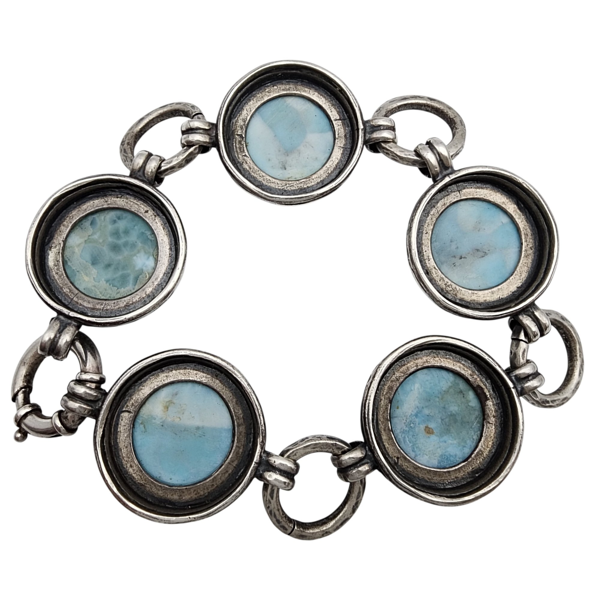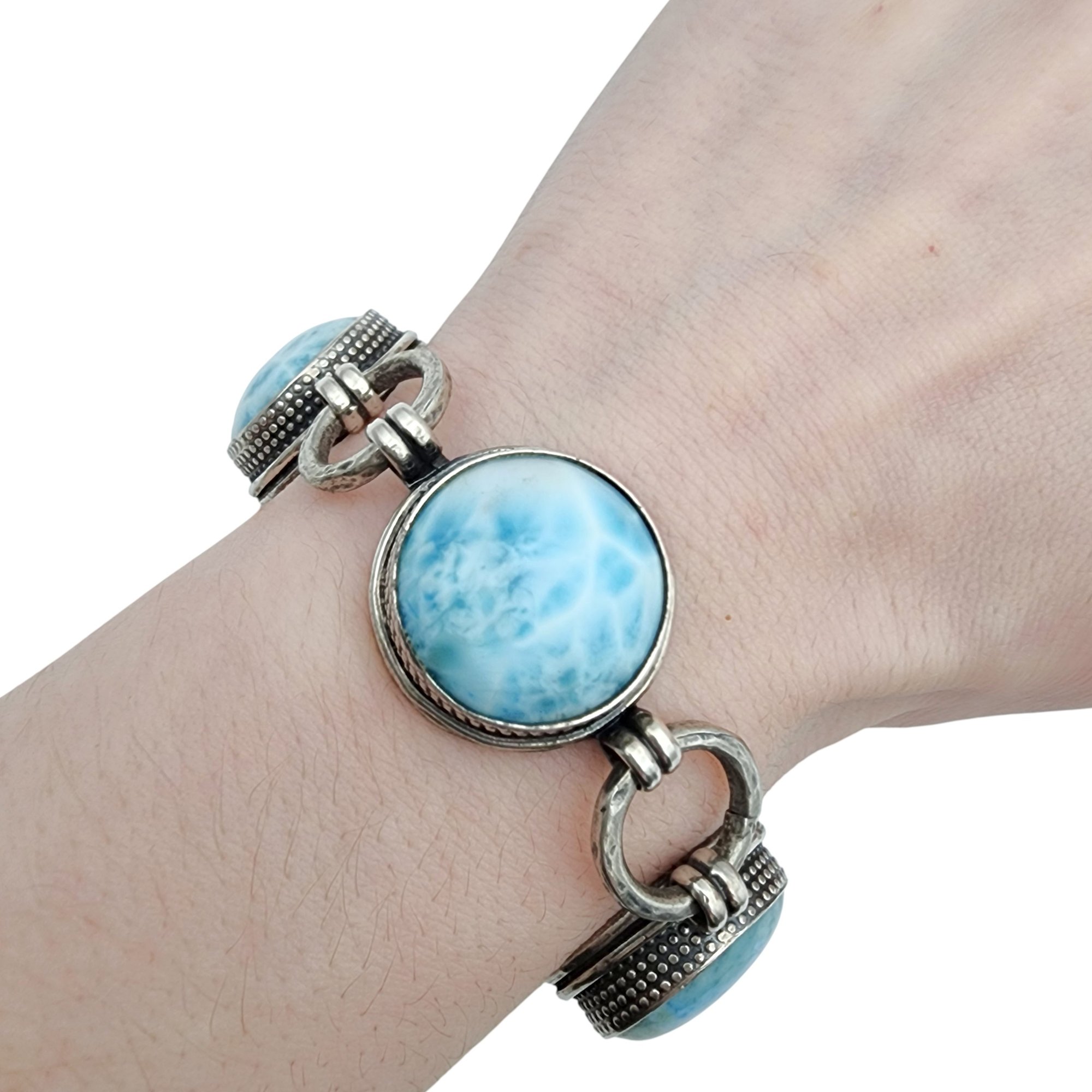 Heavy Sterling Larimar Link Bracelet 61.7g