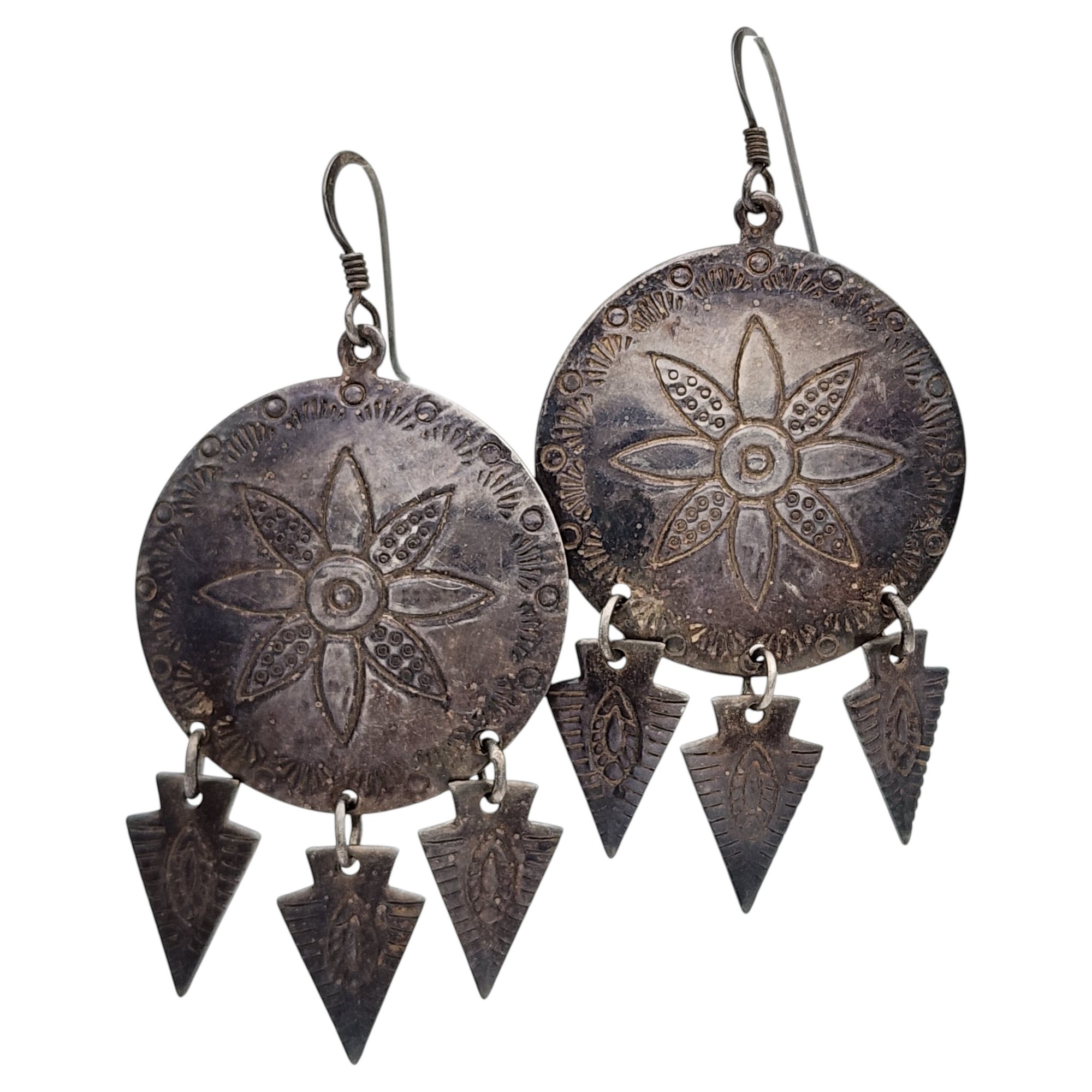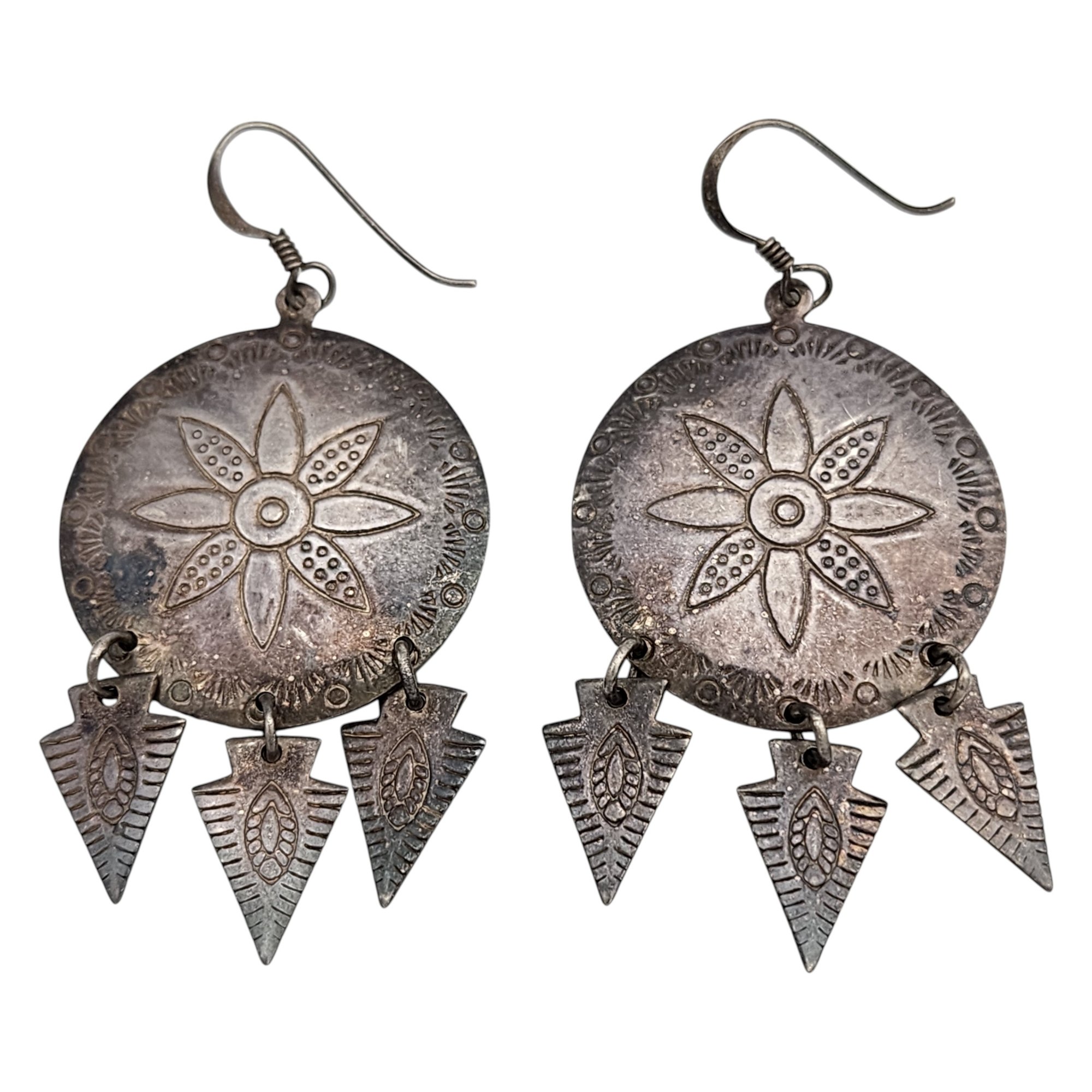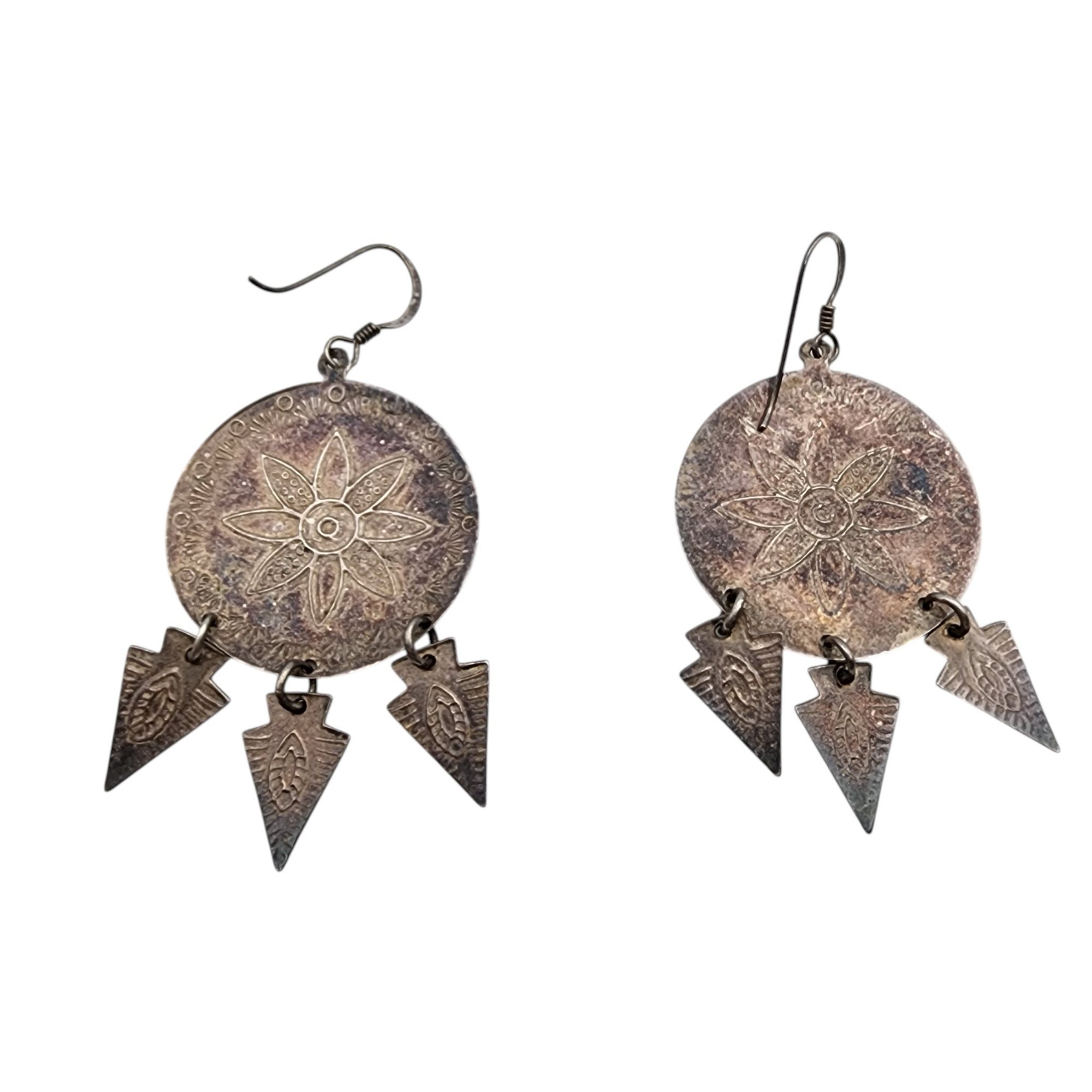 Sterling Southwestern Stamped Dangle Earrings 9.9g