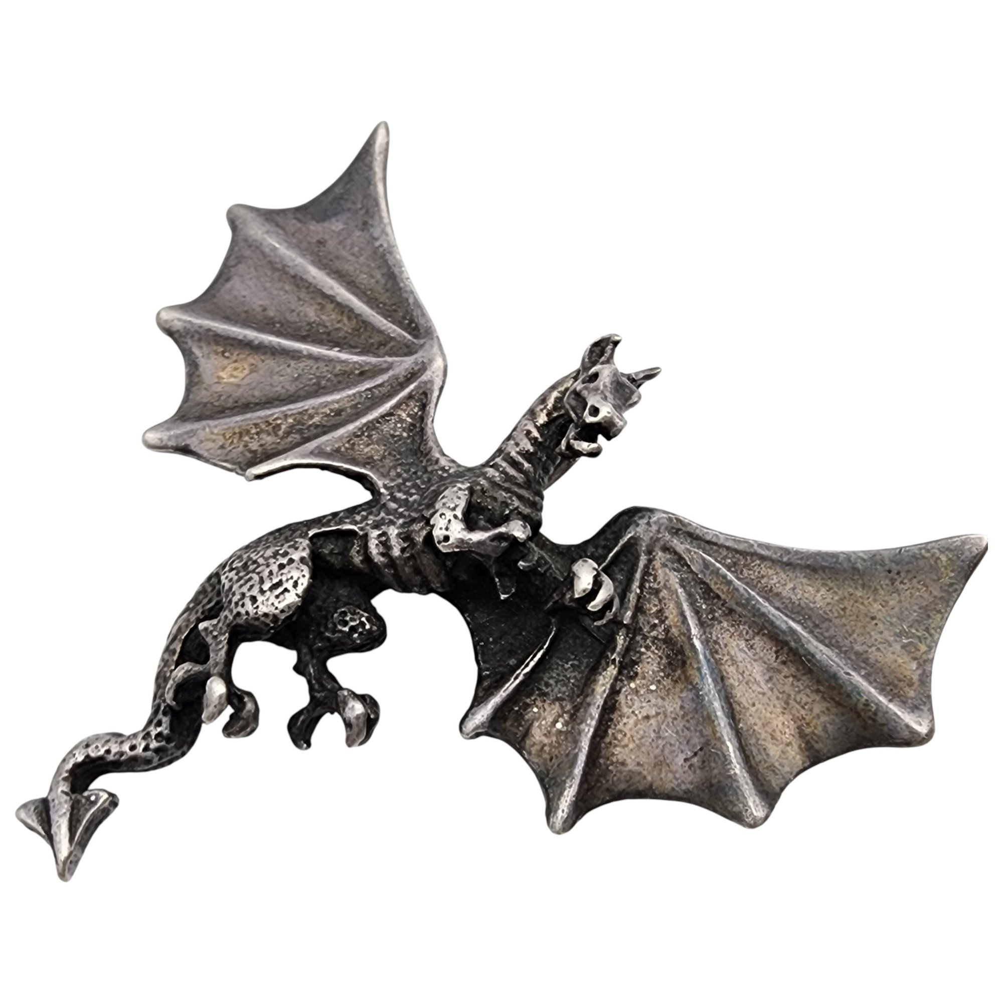Vintage Sterling Dragon Pendant Brooch 13.6g