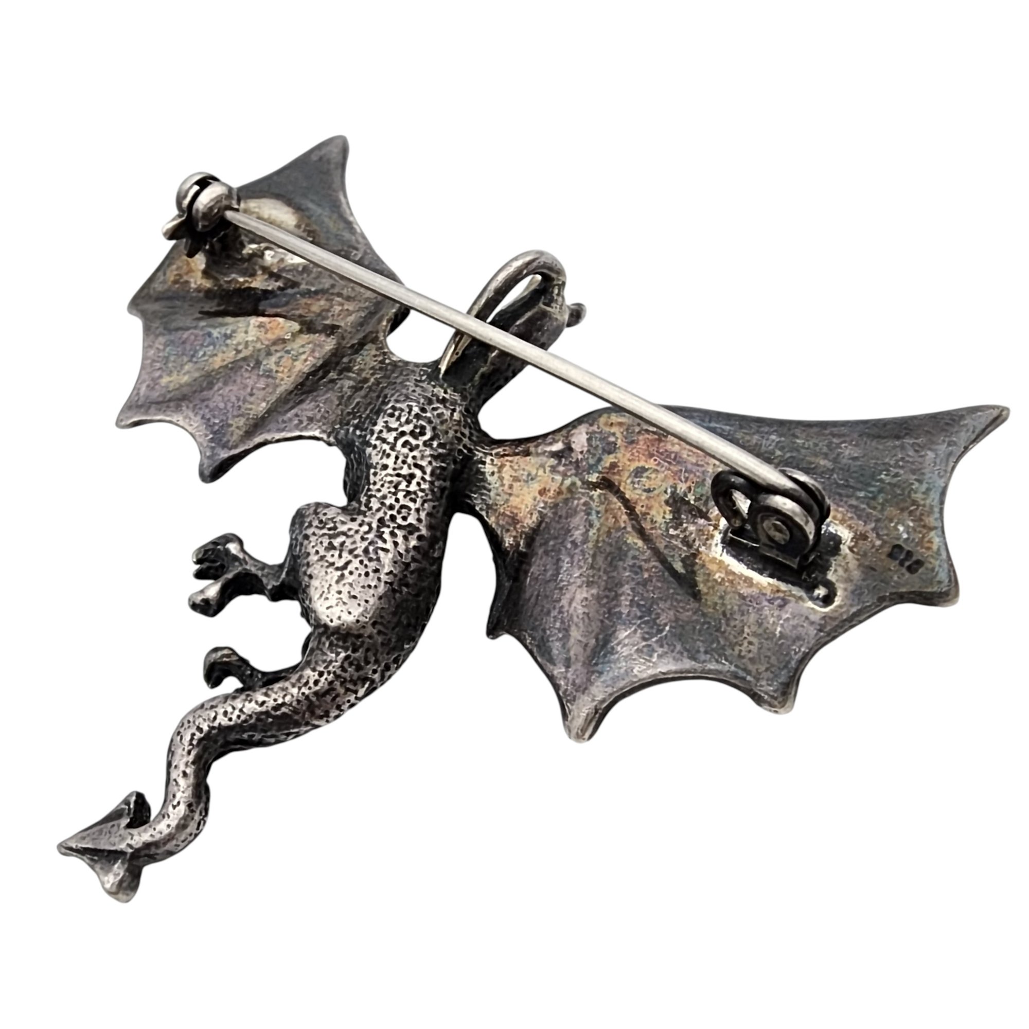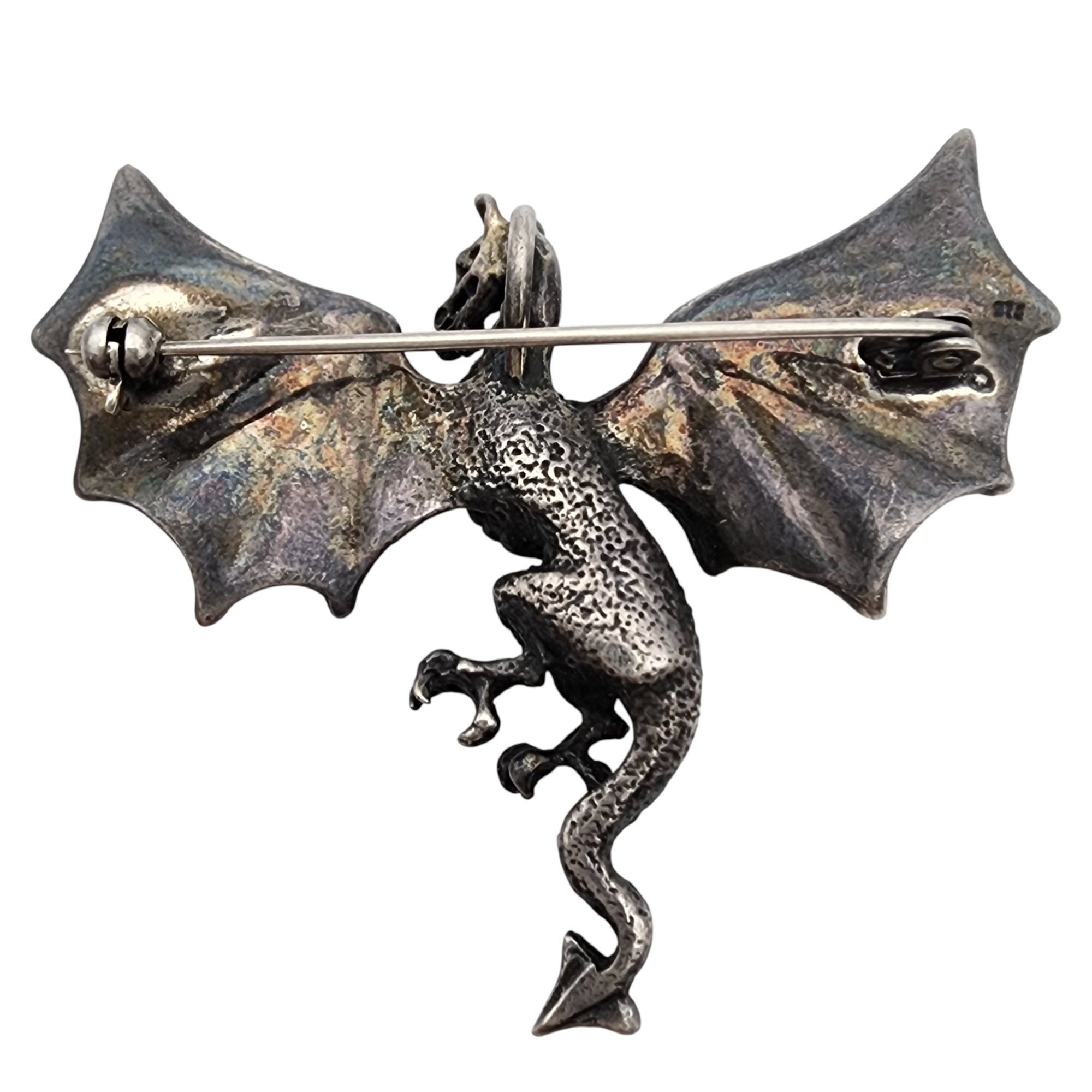 Vintage Sterling Dragon Pendant Brooch