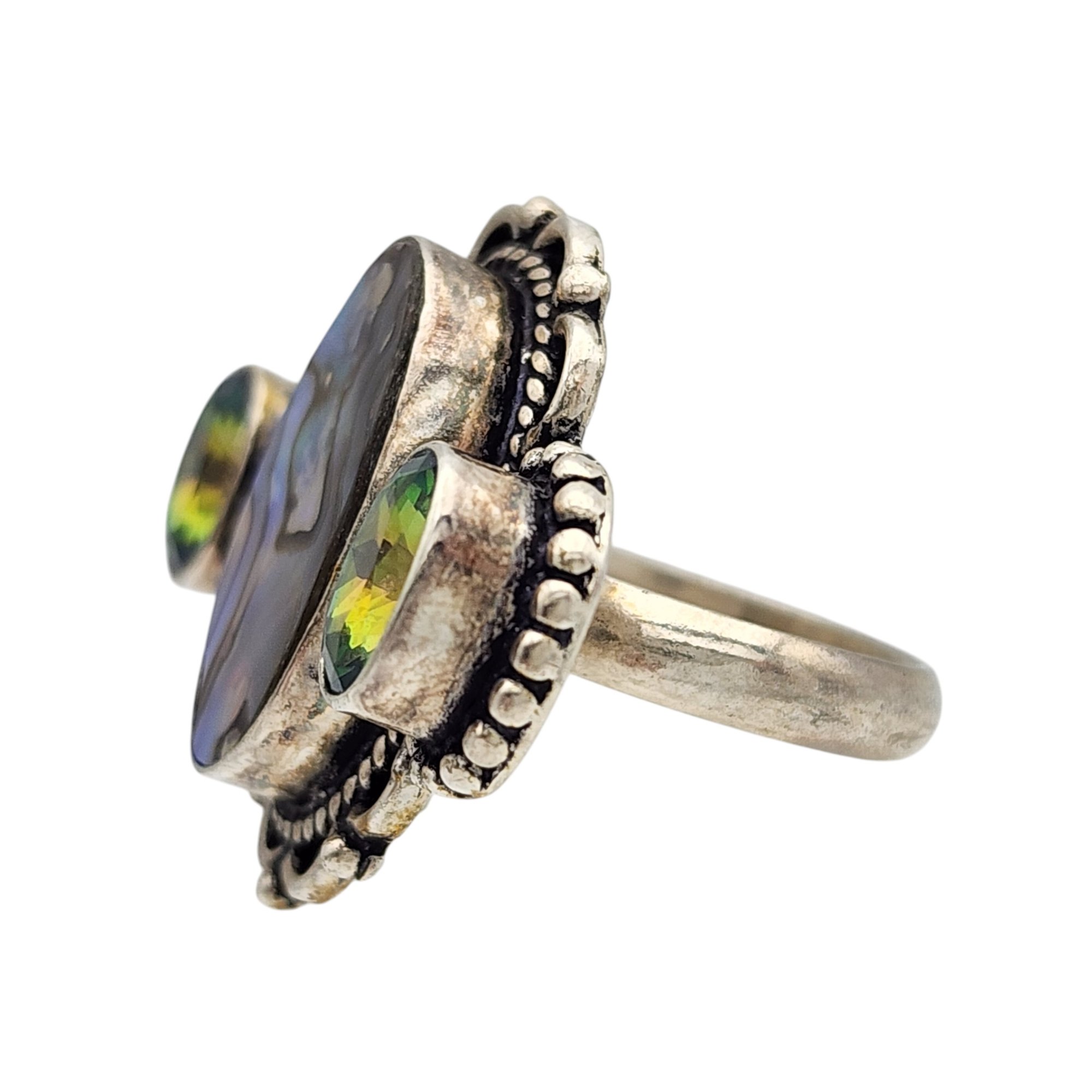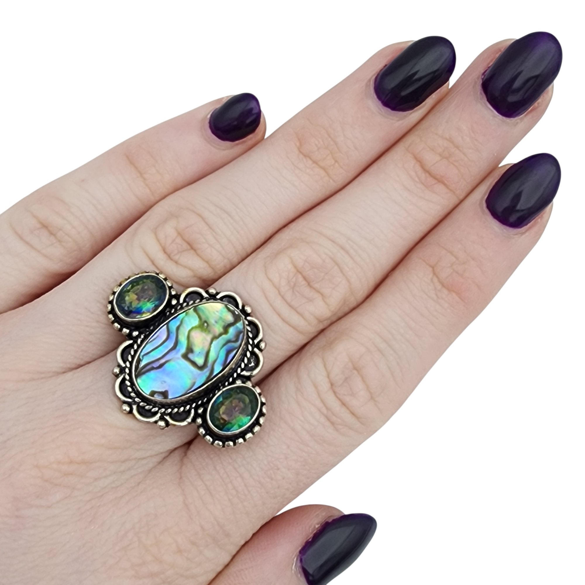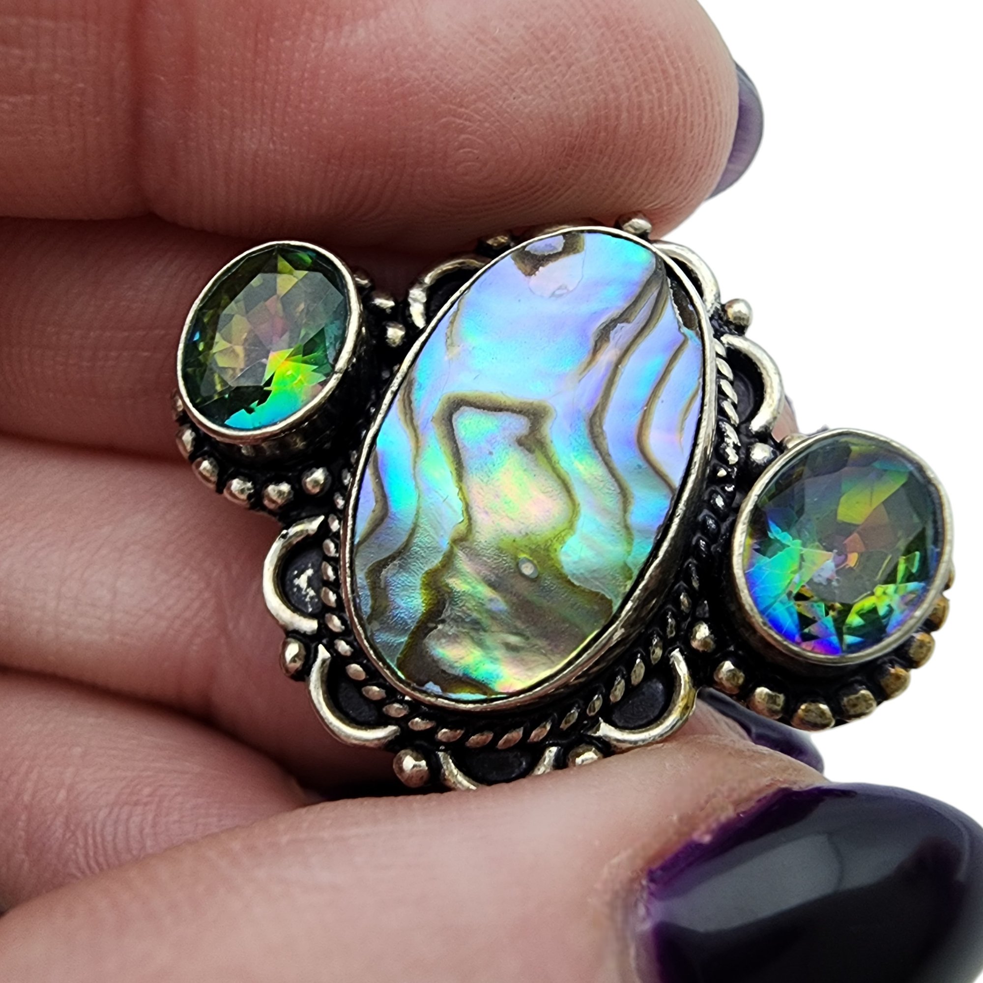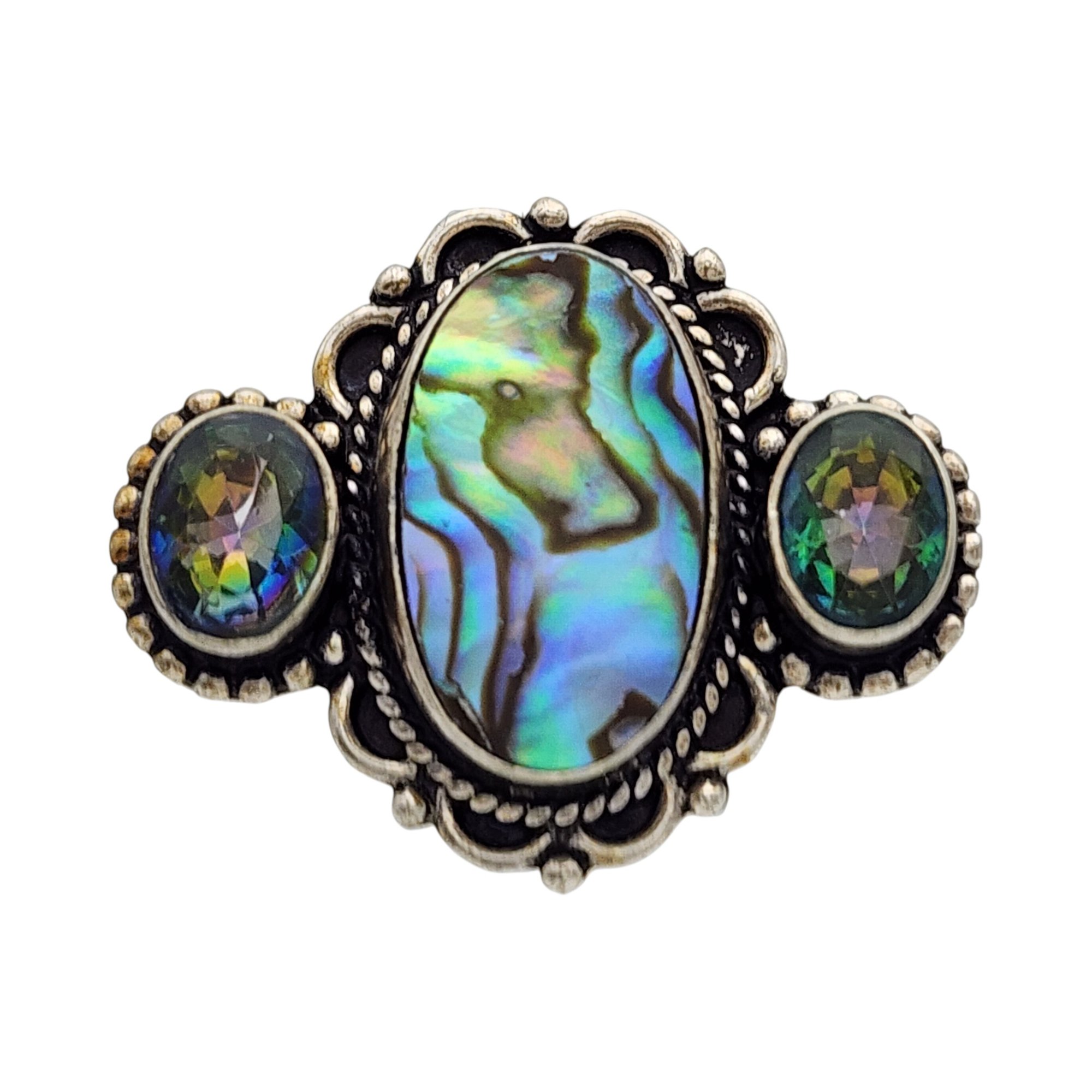 Sterling Mystic Topaz and Abalone Ring Sz 6.5 – 7.9g