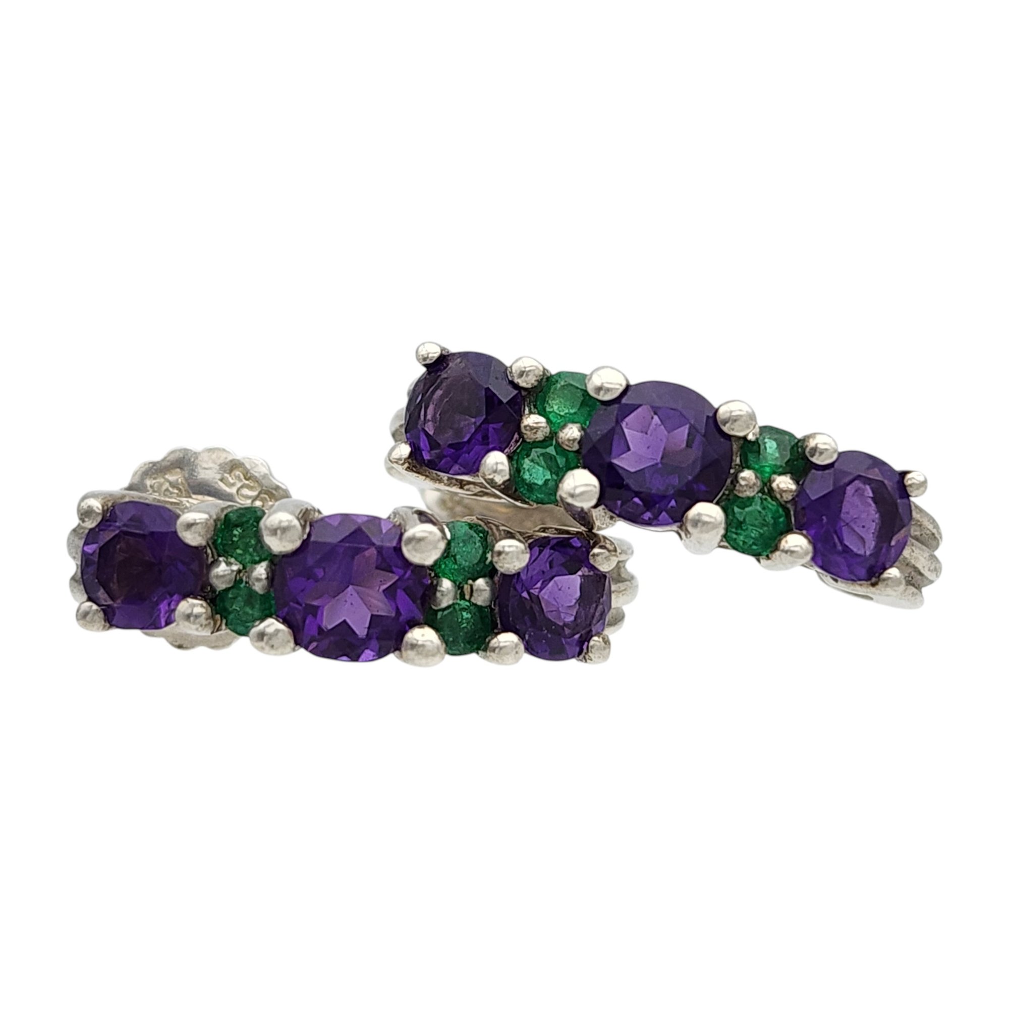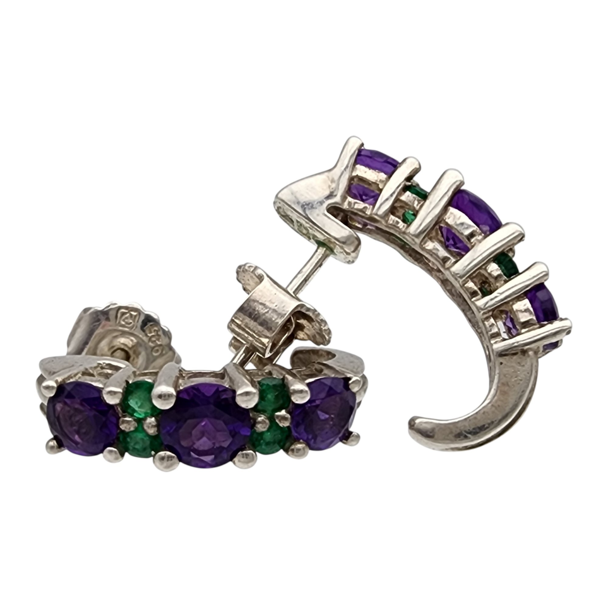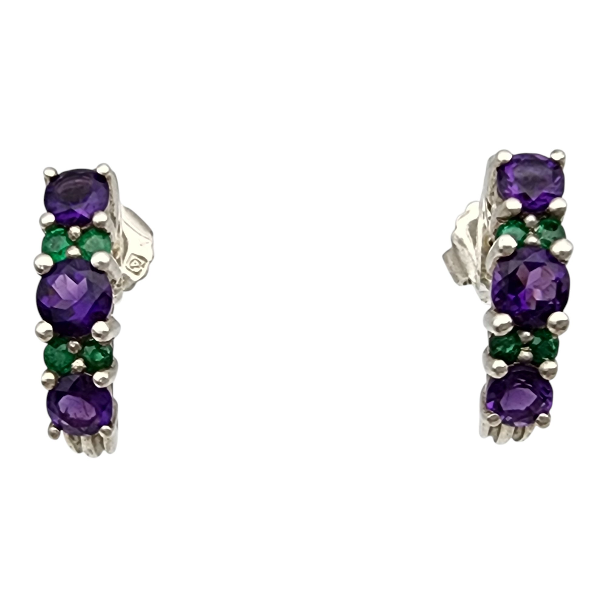 Sterling Amethyst and Emerald Earrings 3g