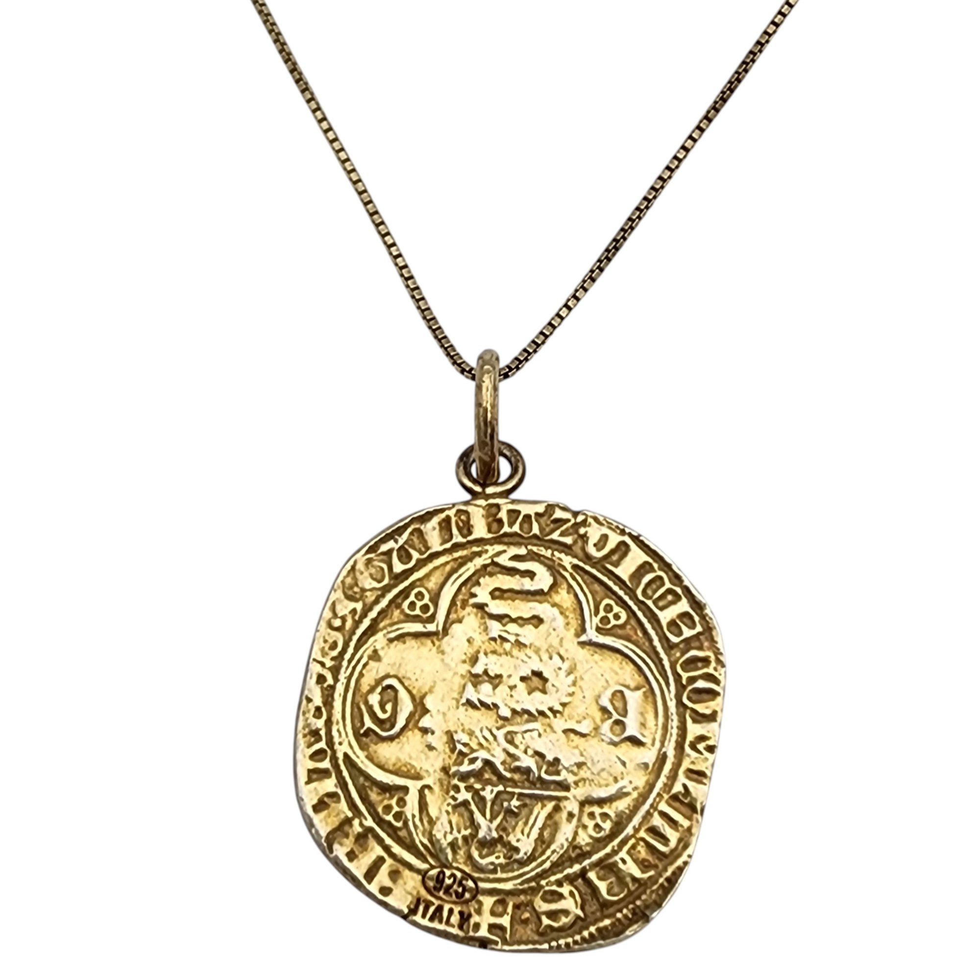 Italy Gold over Sterling Roman Coin Chain Necklace 5.4g