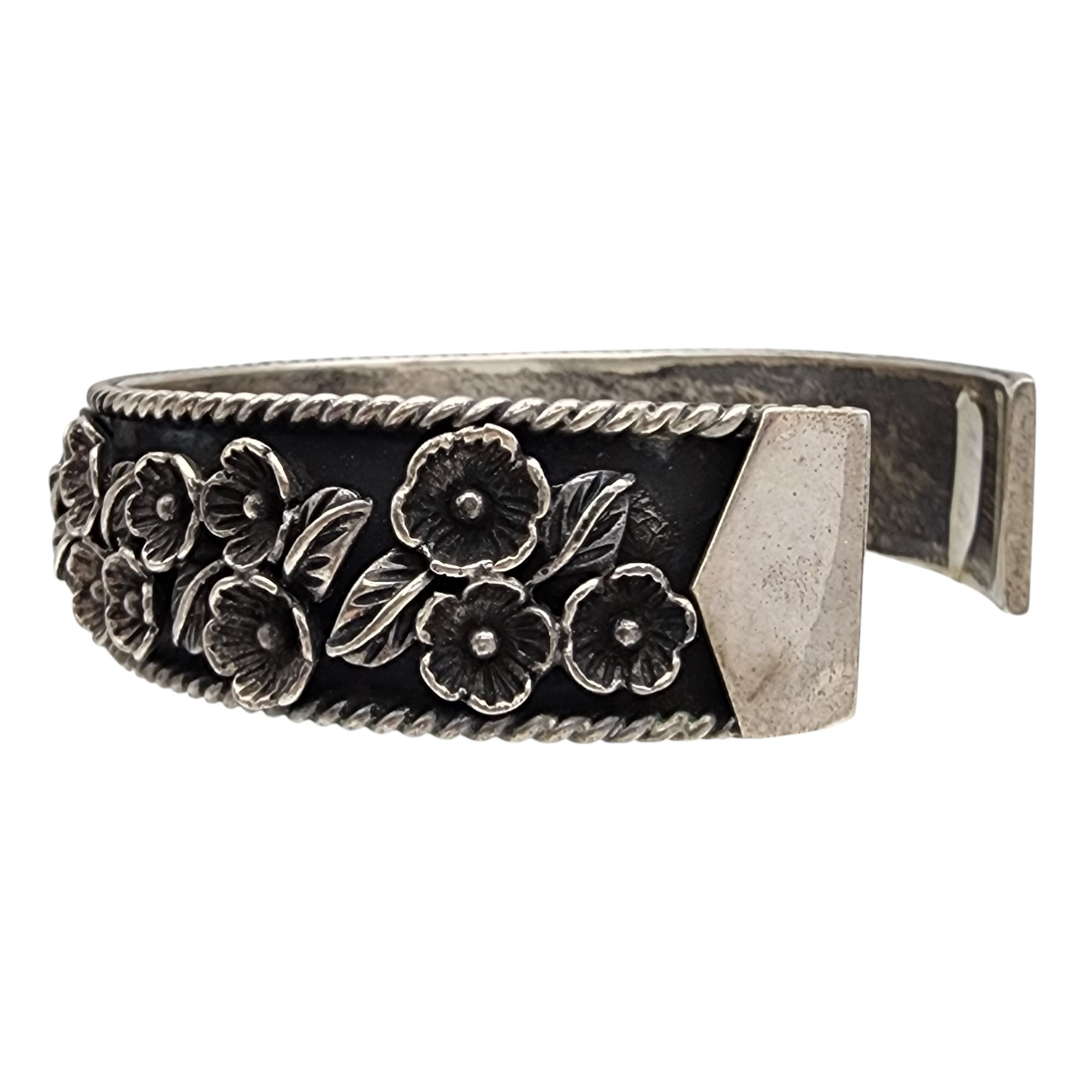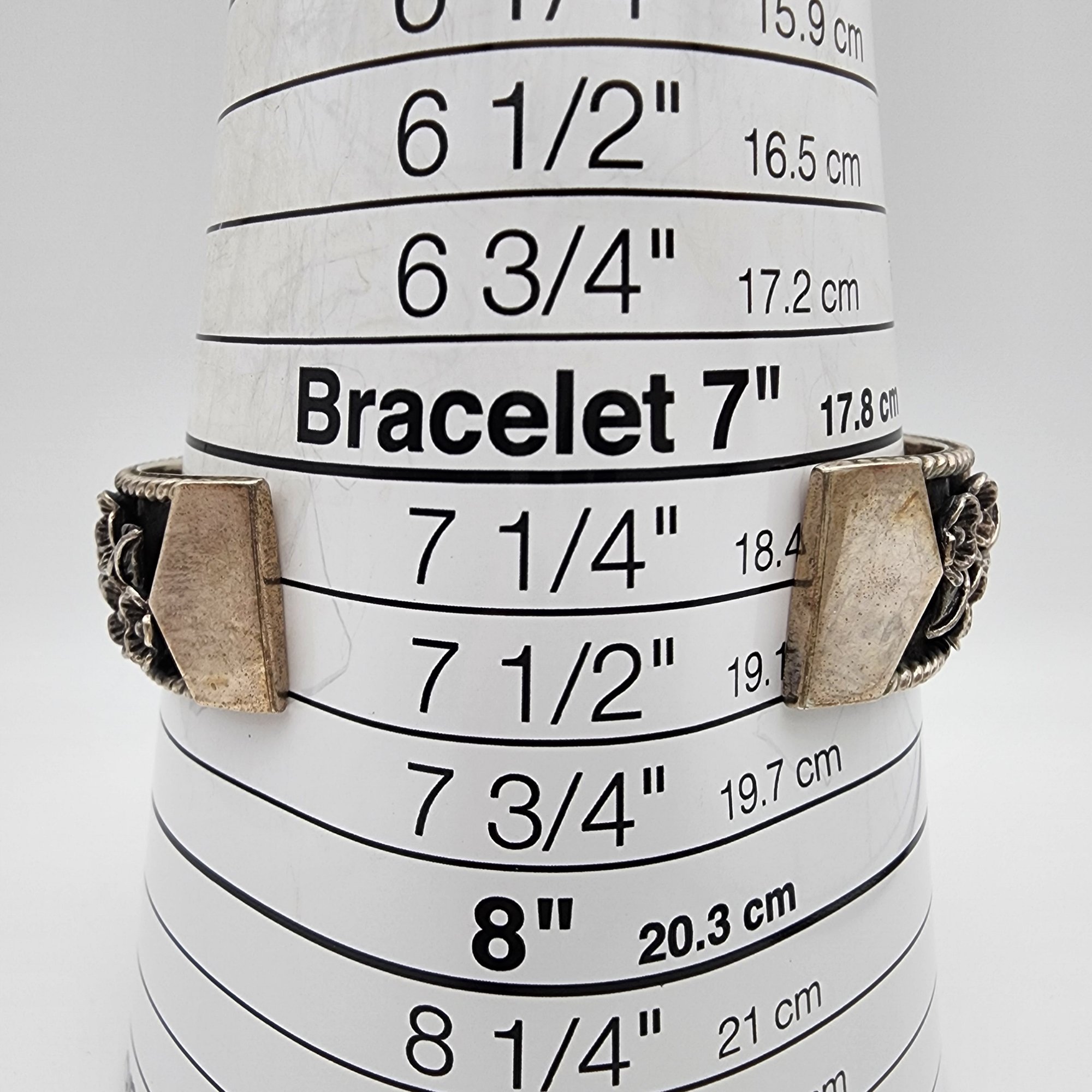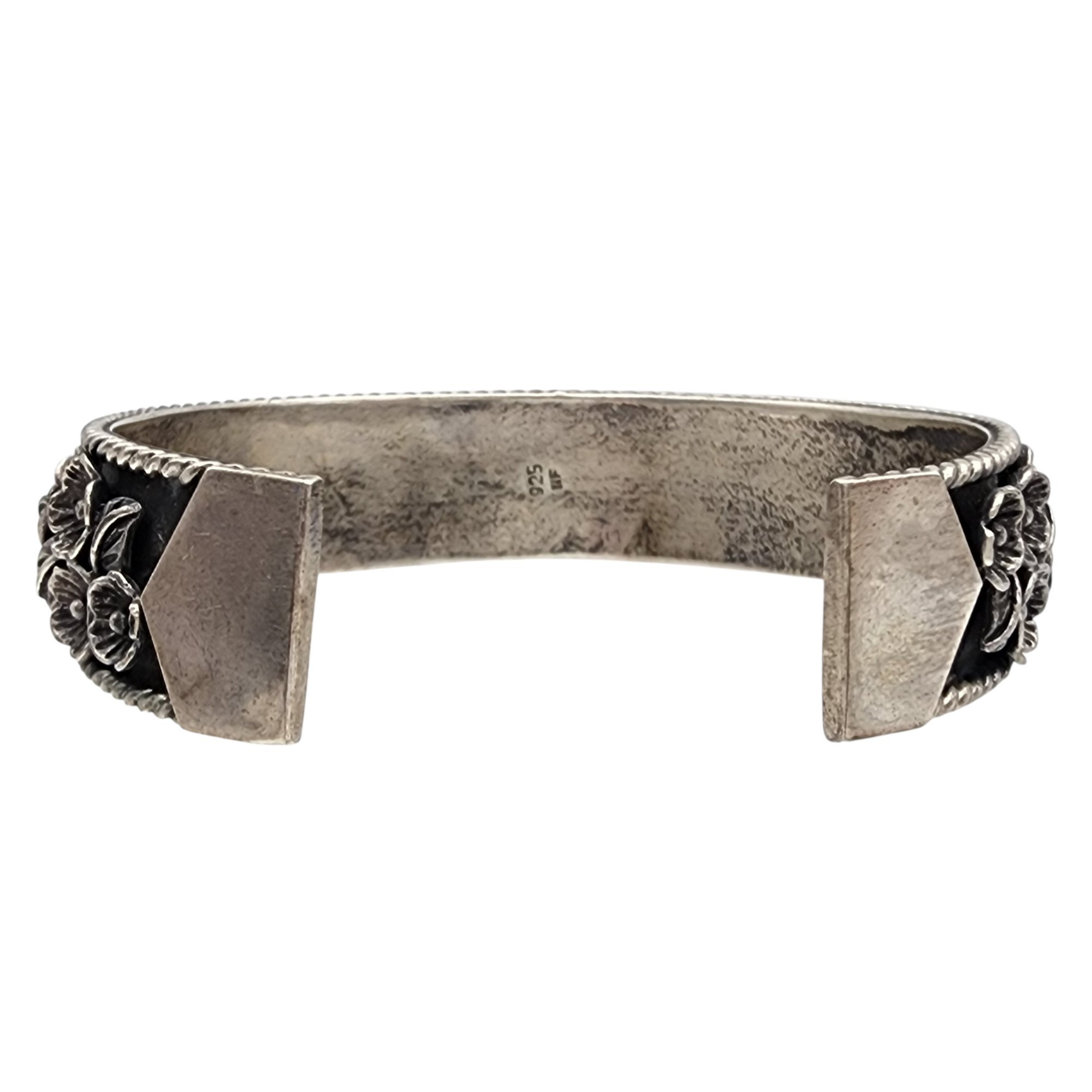 Signed Sterling Raised Flower Cuff Bracelet 32.8g