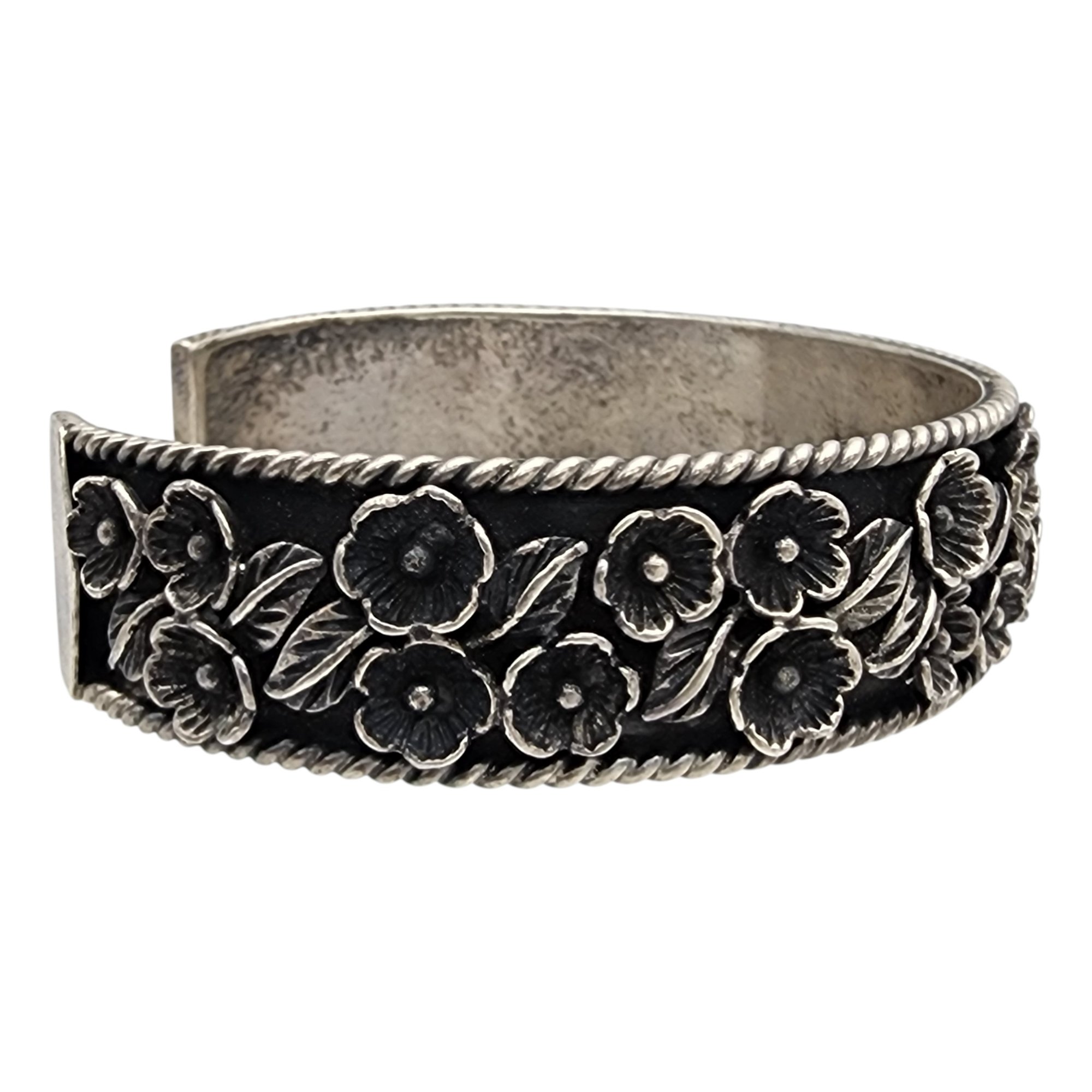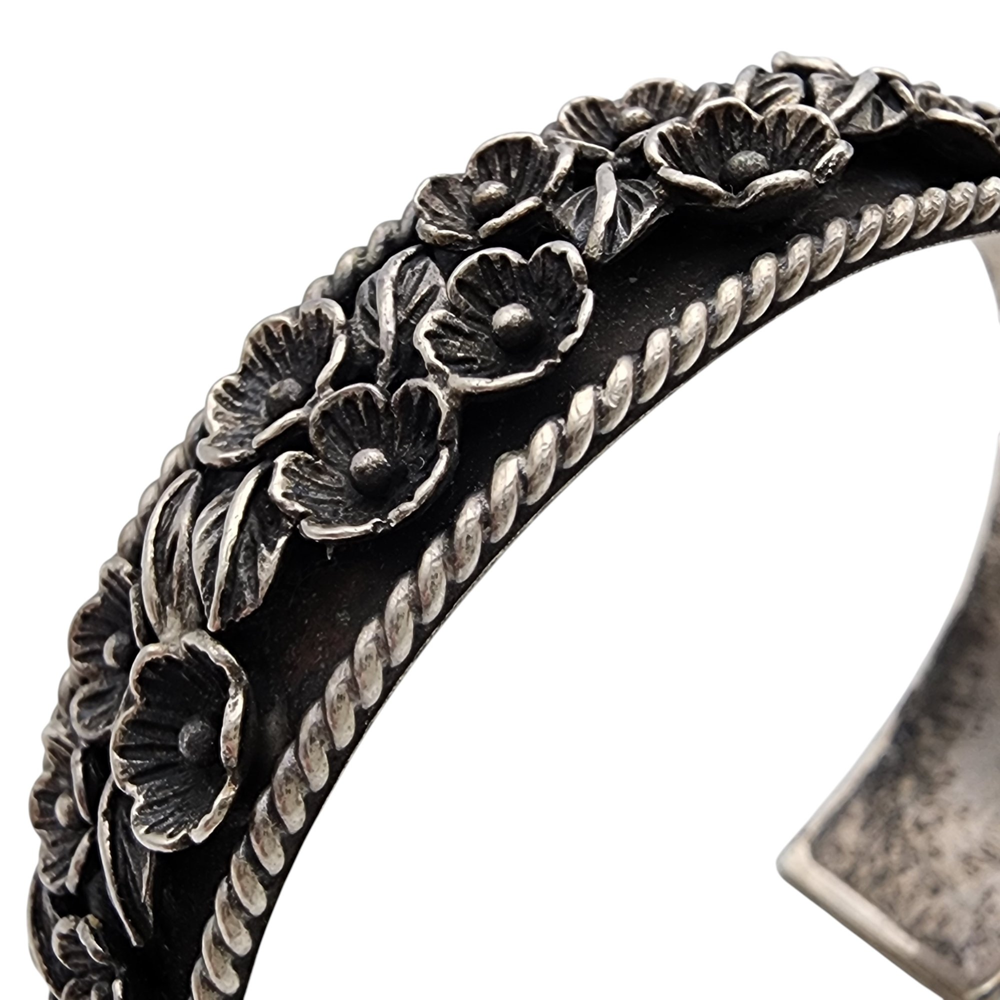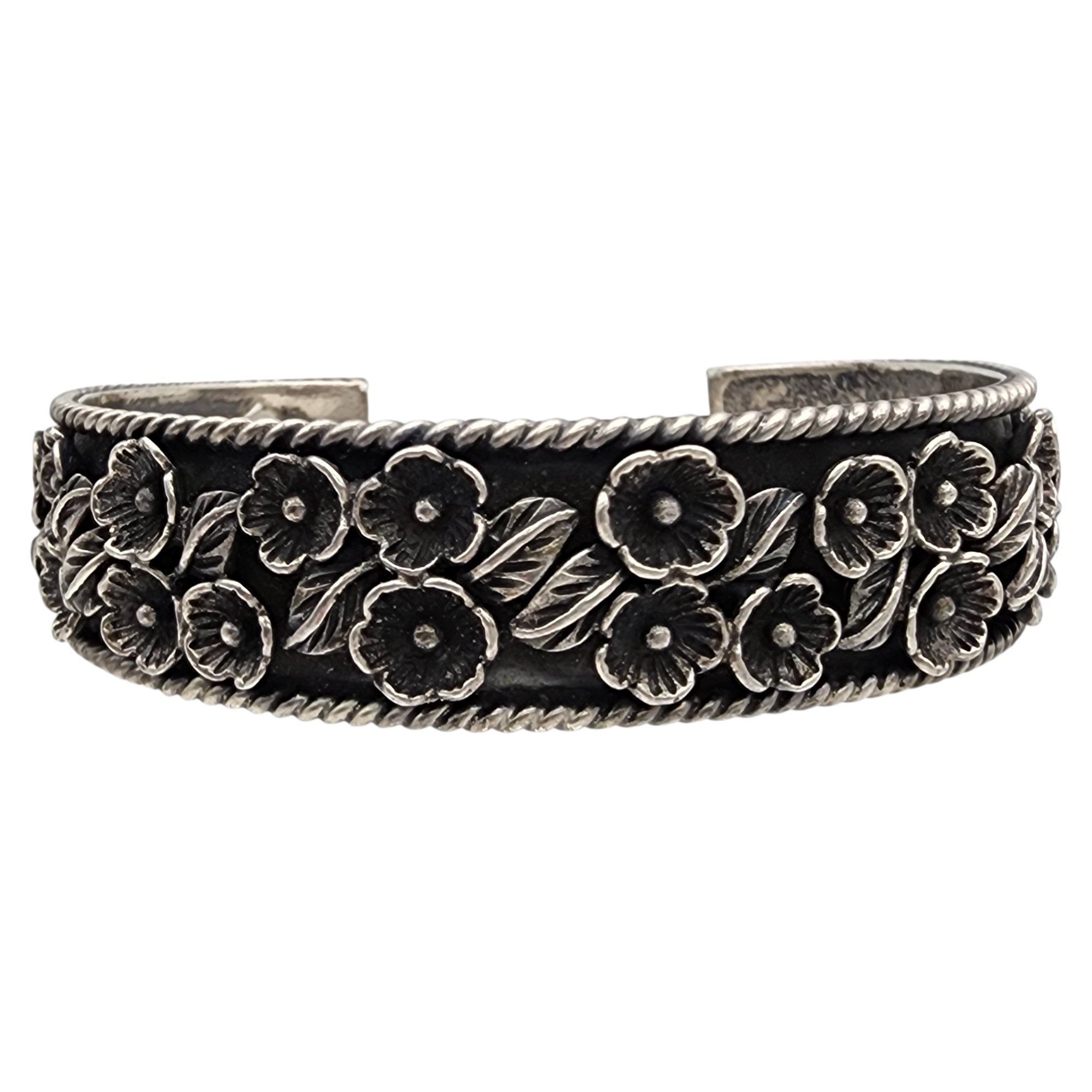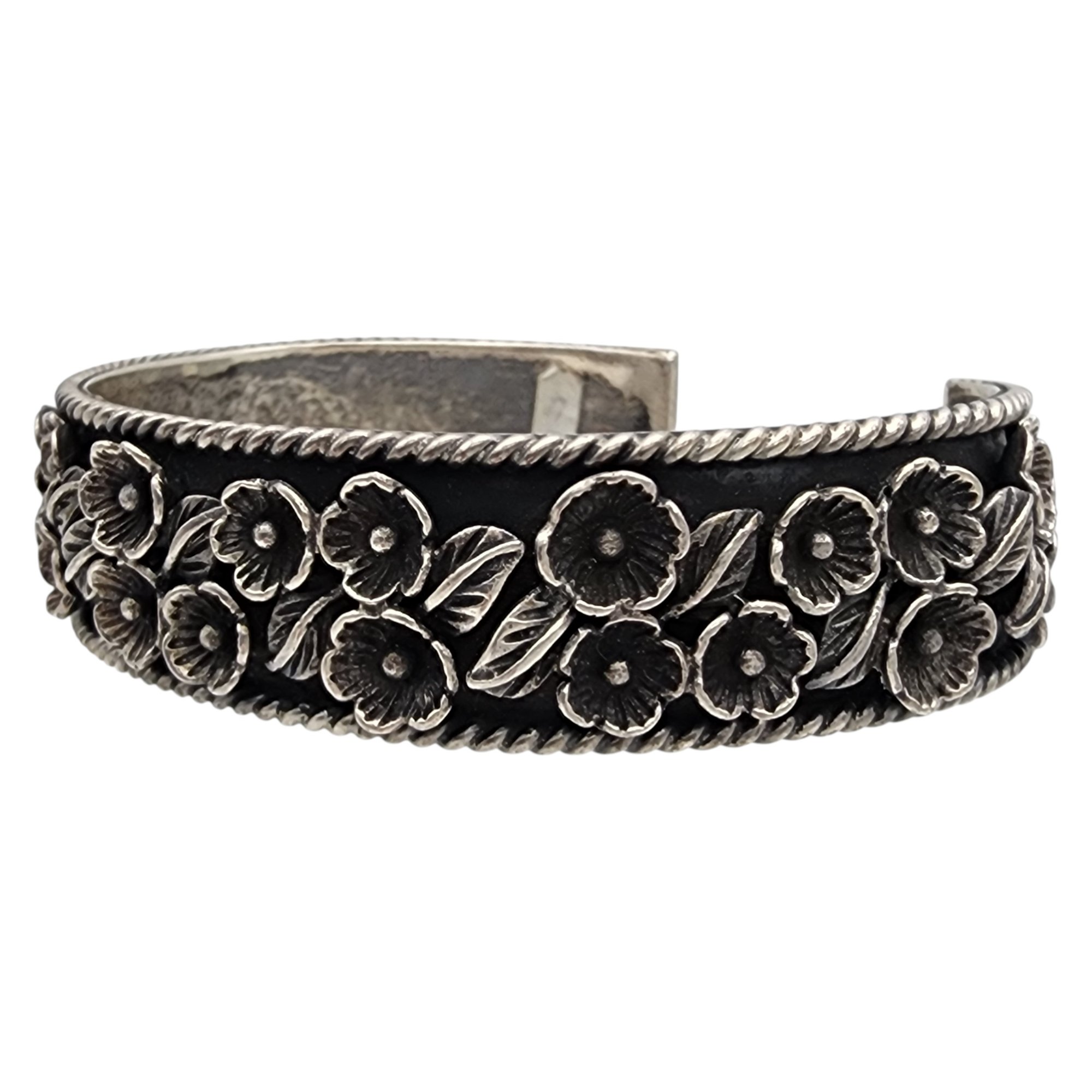Signed Sterling Raised Flower Cuff Bracelet 32.8g