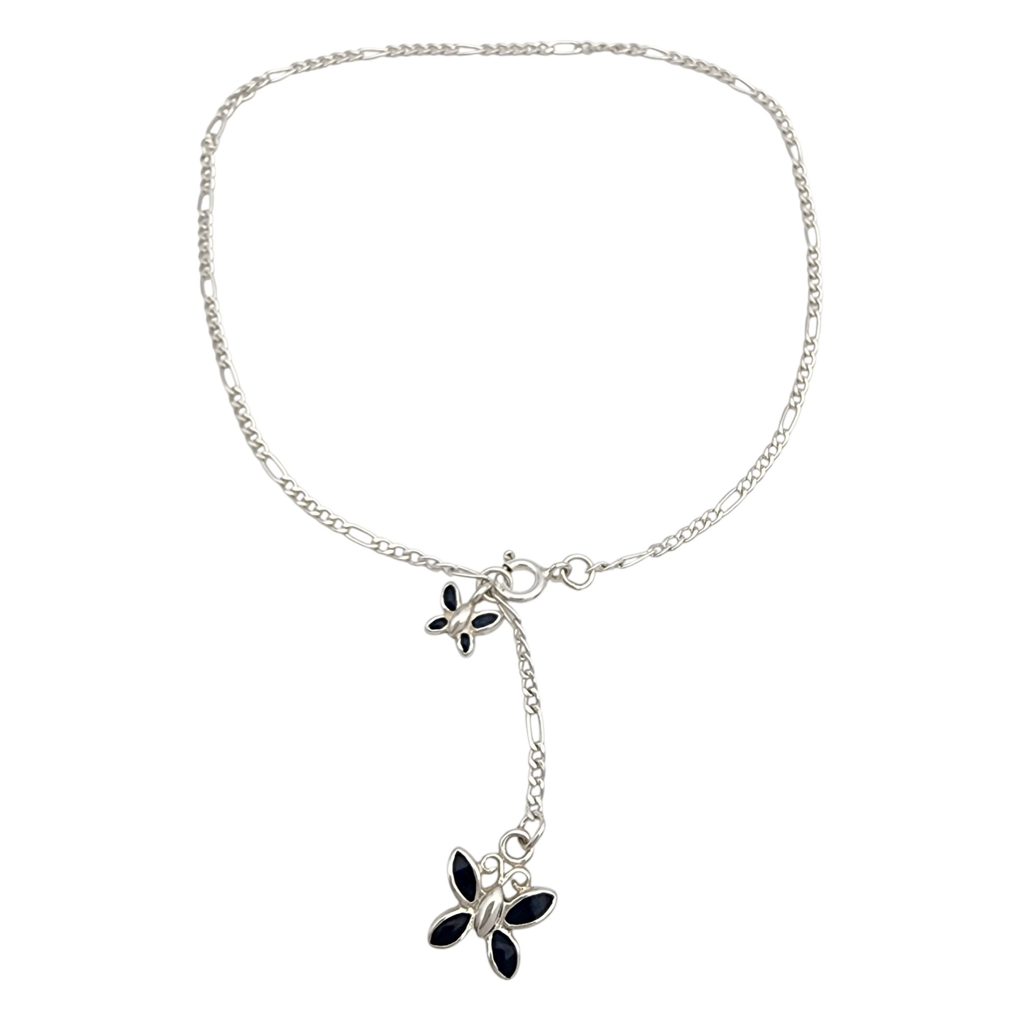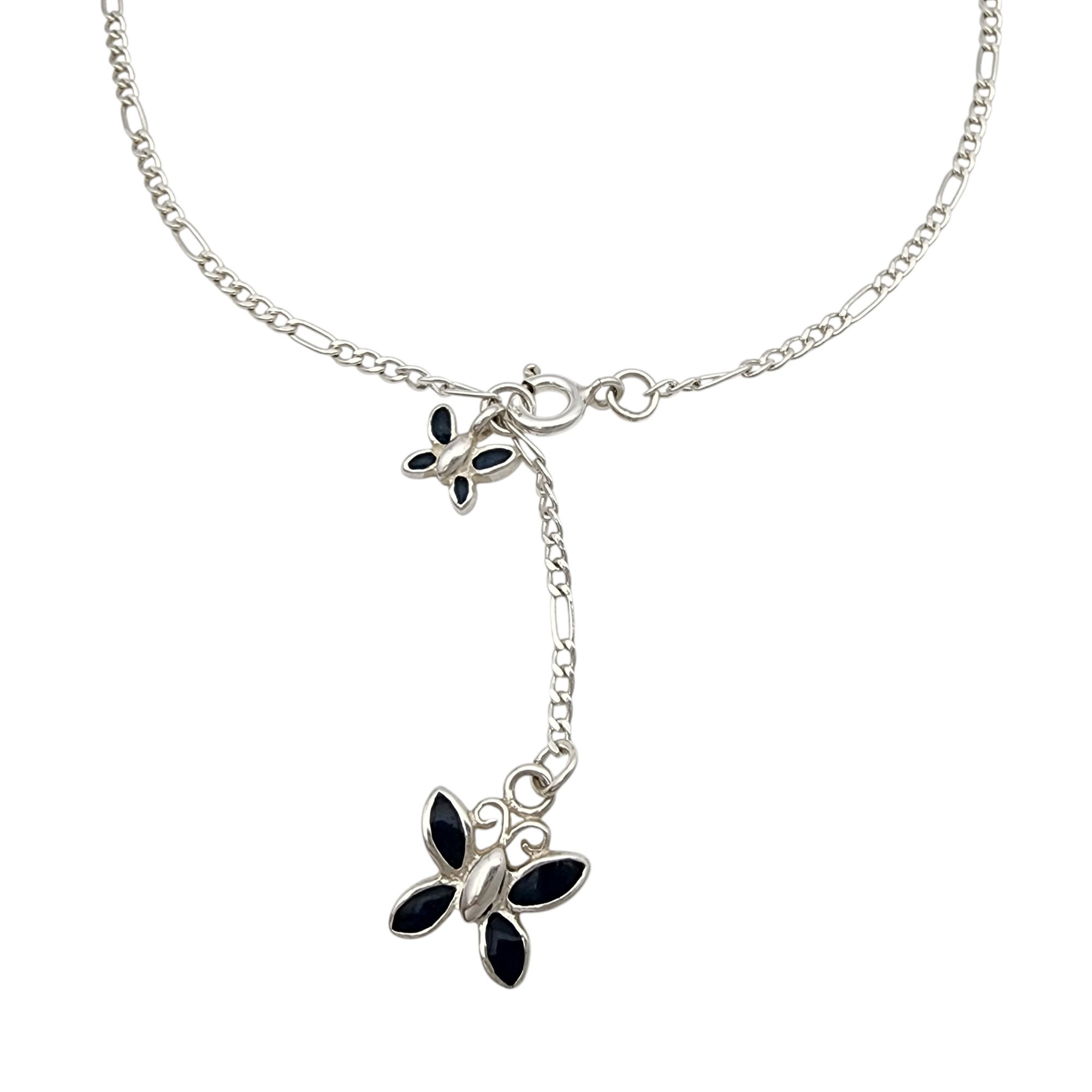 Sterling Enamel Butterfly Figaro Chain Bracelet/Anklet 3.3g