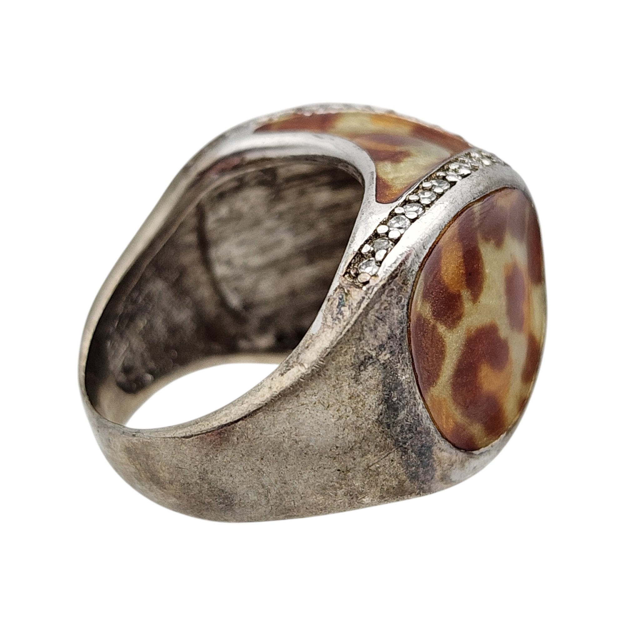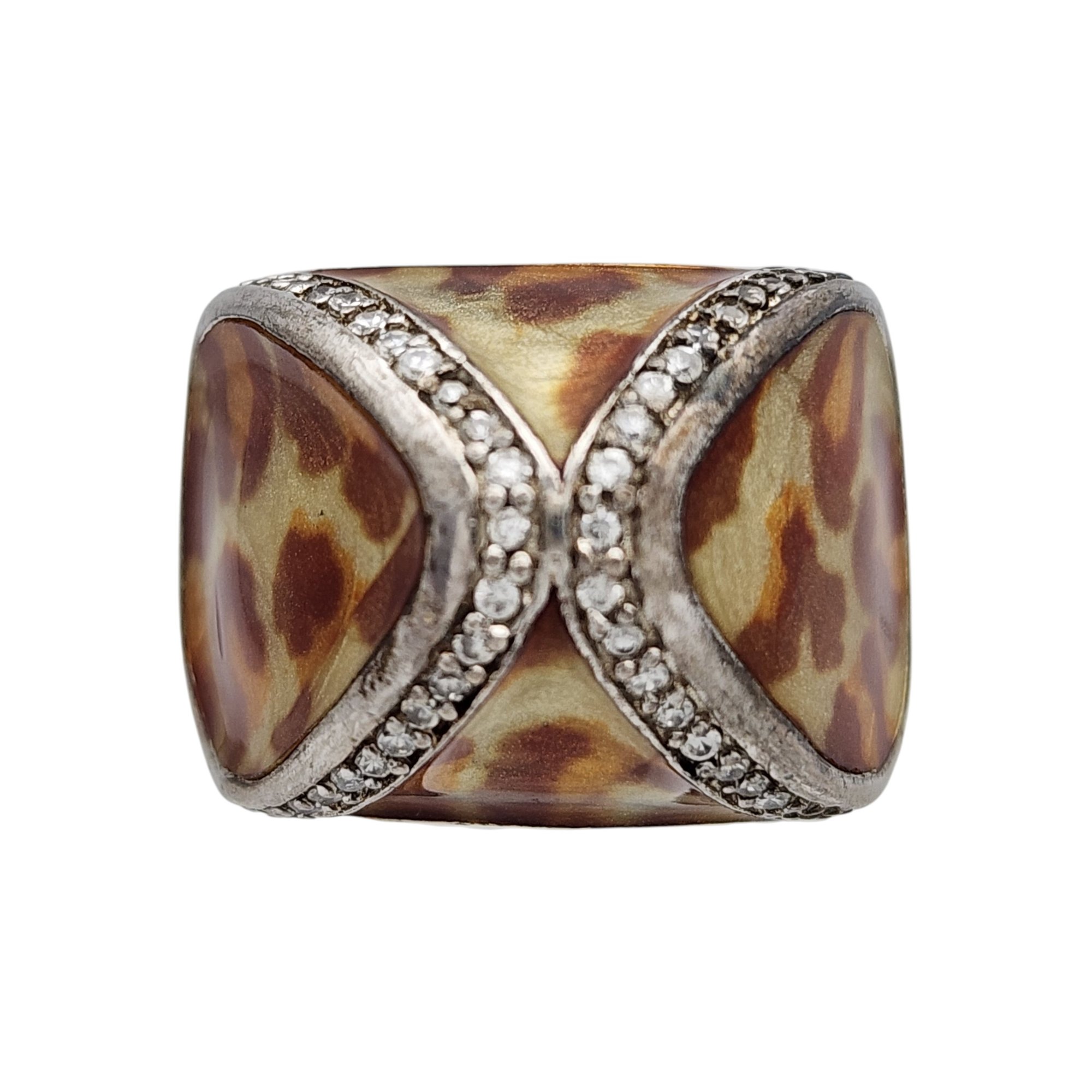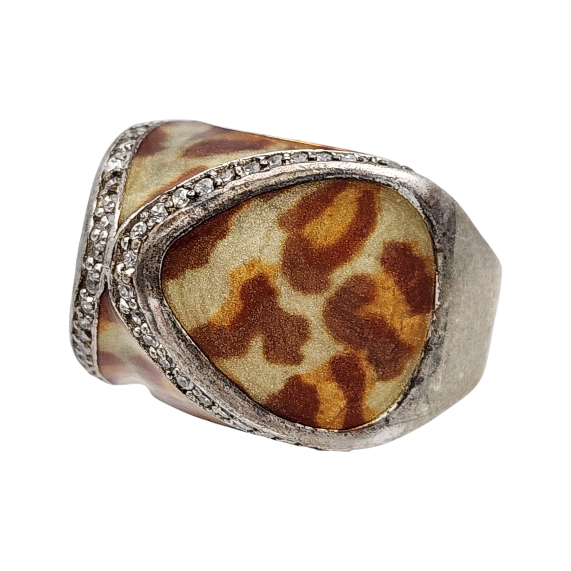 Sterling Enamel Leopard Print Ring Sz 6.5 10.7g