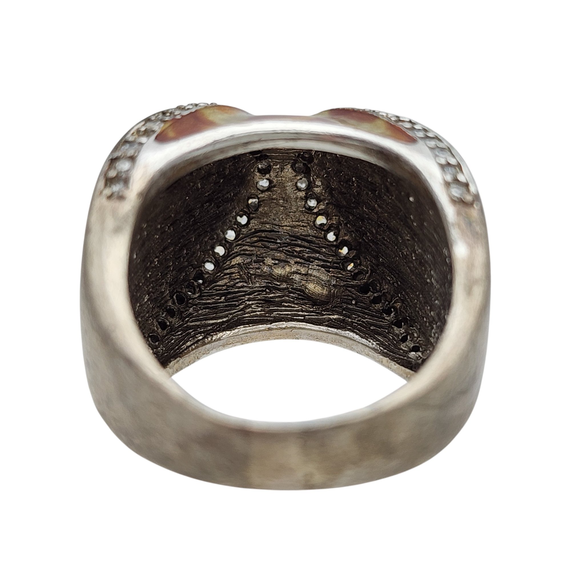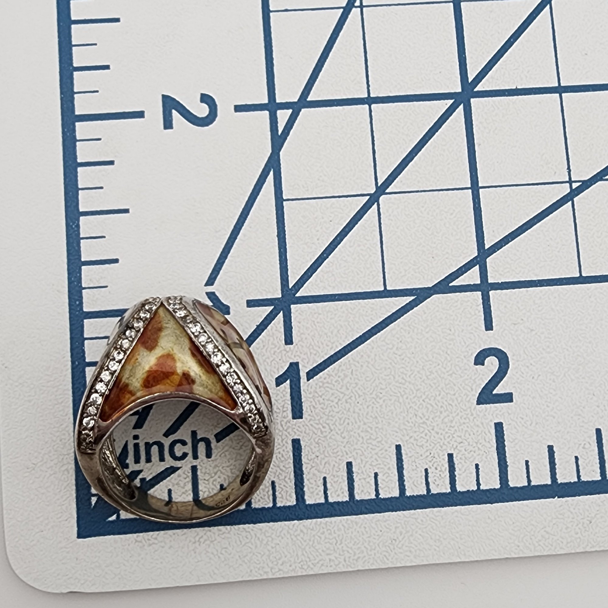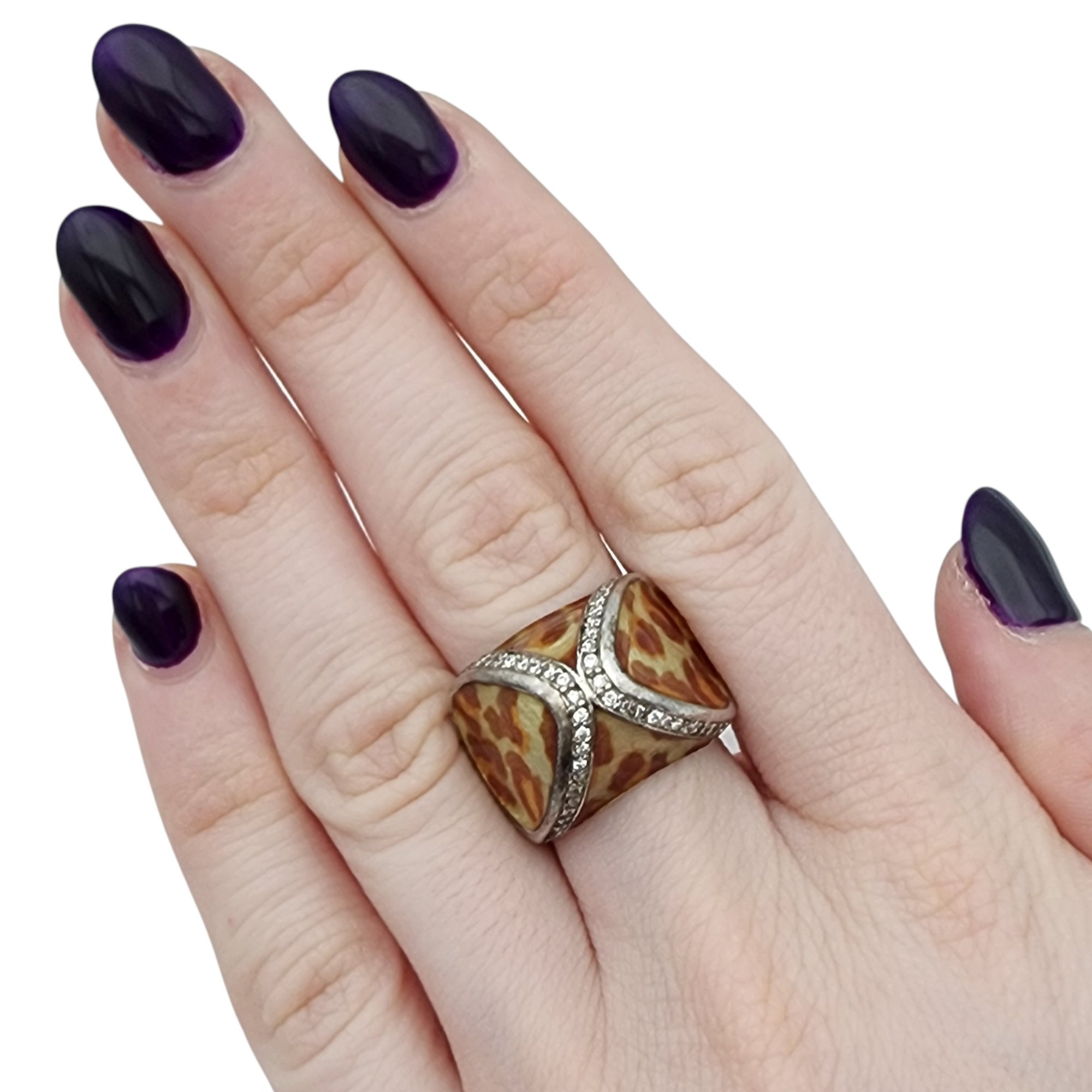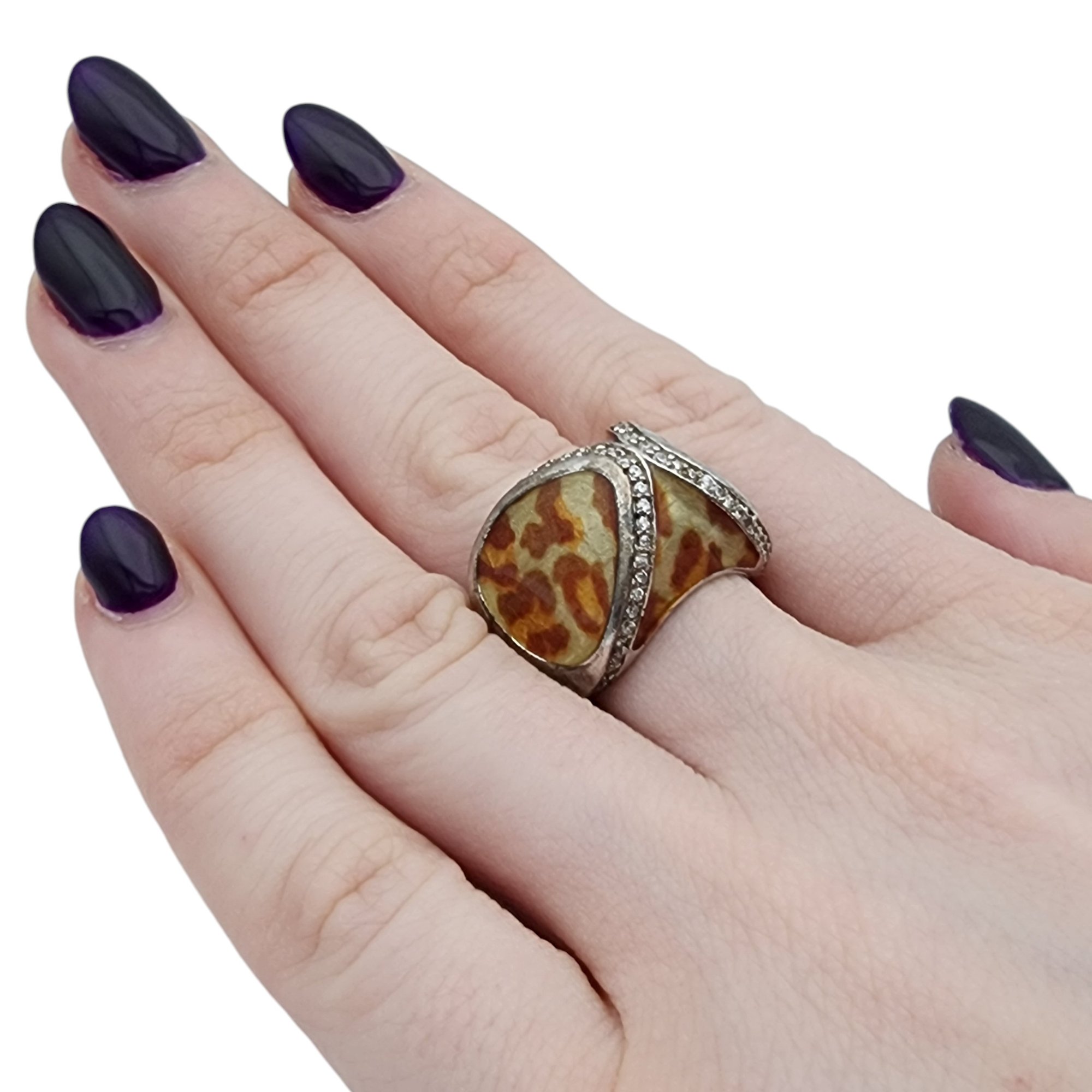 Sterling Enamel Leopard Print Ring Sz 6.5 10.7g