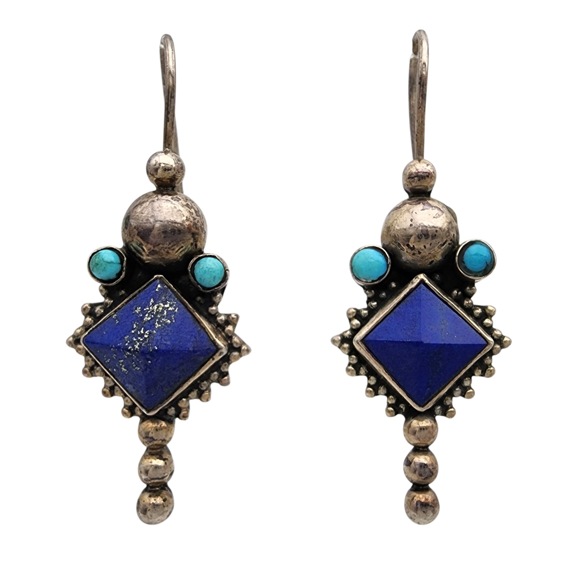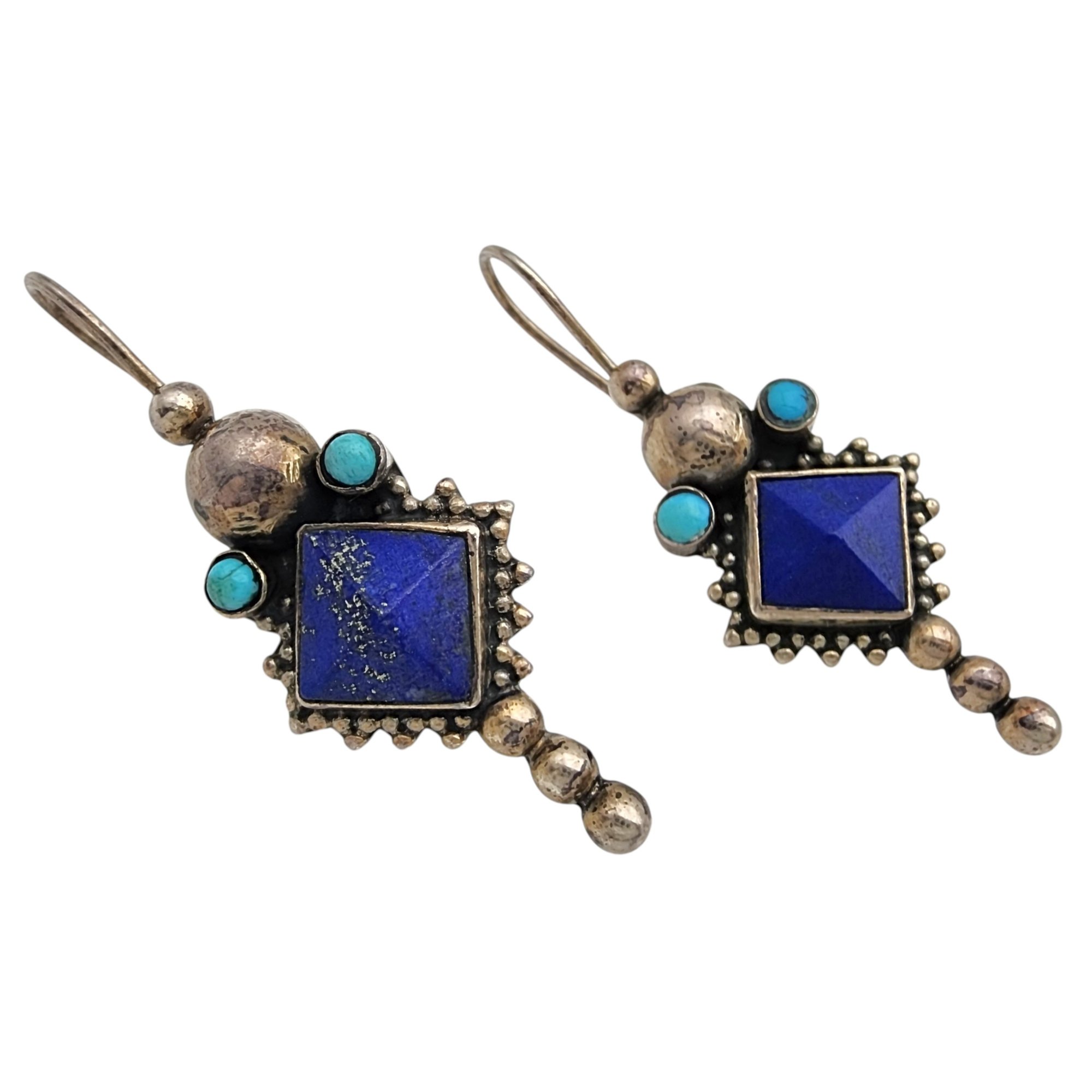 Sterling Lapis Lazuli and Turquoise Earrings 5.9g