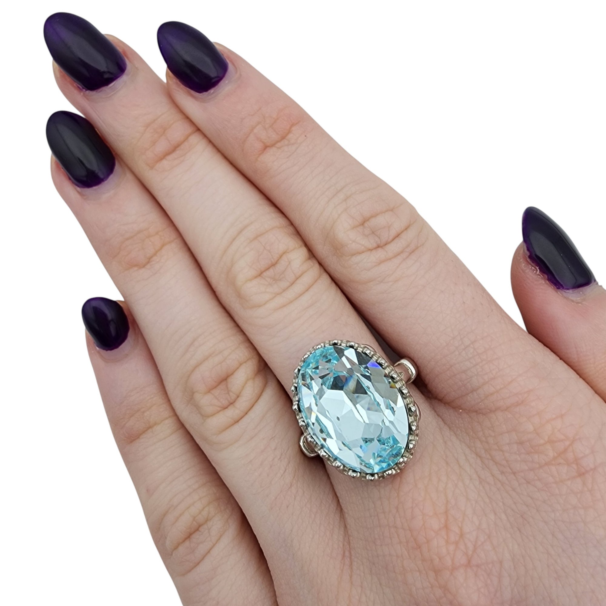 Sterling Blue Cubic Zirconia Ring Sz 8
